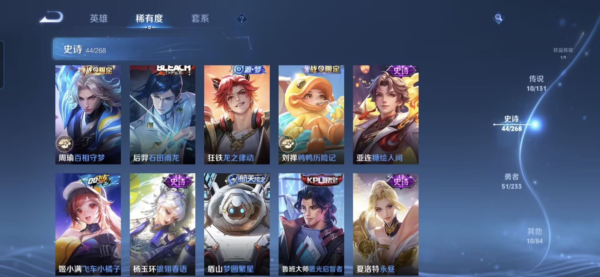 MWZ104667【V7 1珍品 2无双 10传说 无双大圣】安卓Q-118皮肤-123英雄 【无双皮肤】 无相 碎月剑心 【珍品传说】 黑崎一护 【传说皮肤】 诡秘之主 群星魔术团 神树通天 九山相柳 琥珀纪元 幻光神枪 愿照·九州拓 纵目迁山 山海·苍雷引 黄金狮子座 【史诗皮肤】 飞车小橘子 糖绘人间 银翎春语 布丁狗之约 谧流熔炉 涂山容容 鸭鸭历险记 龙之律动 线条小狗 九幽镇关 百相守梦 踏浪烽翎 聚星闪耀 织梦人 巫礼祀神 光弋星穹 万灵启世 傩神司 石田雨龙 魅语 幽灵船长 女仆