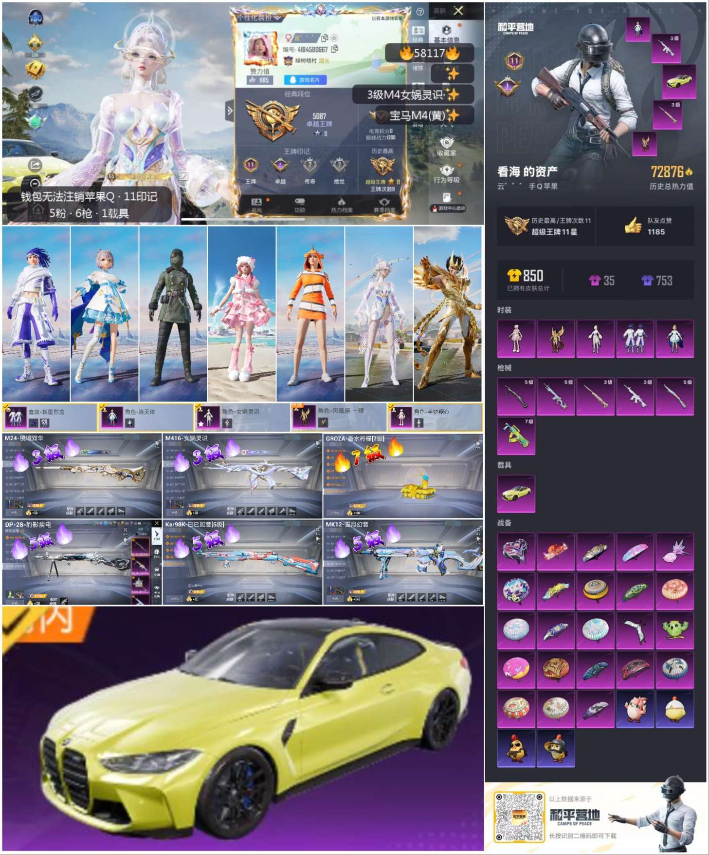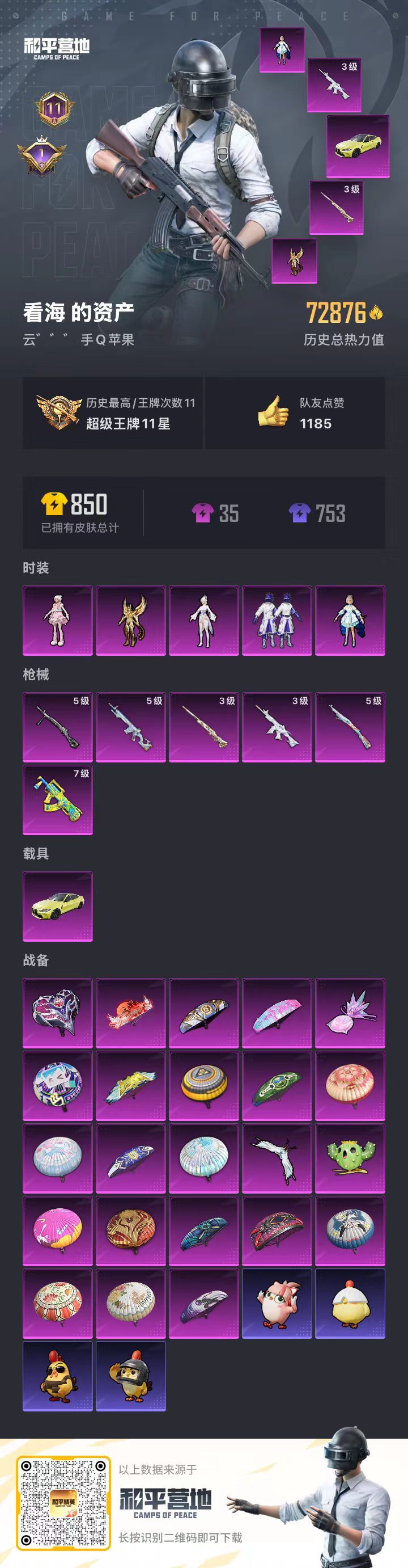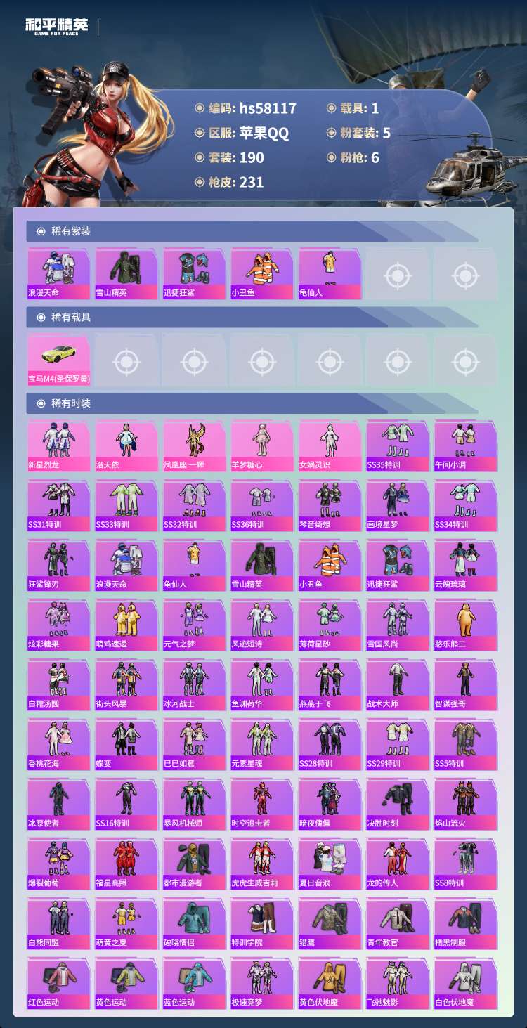 hs58117 苹果手Q-11王牌印记-5粉装-6特效枪-1载具-72876热力值-190套装-23