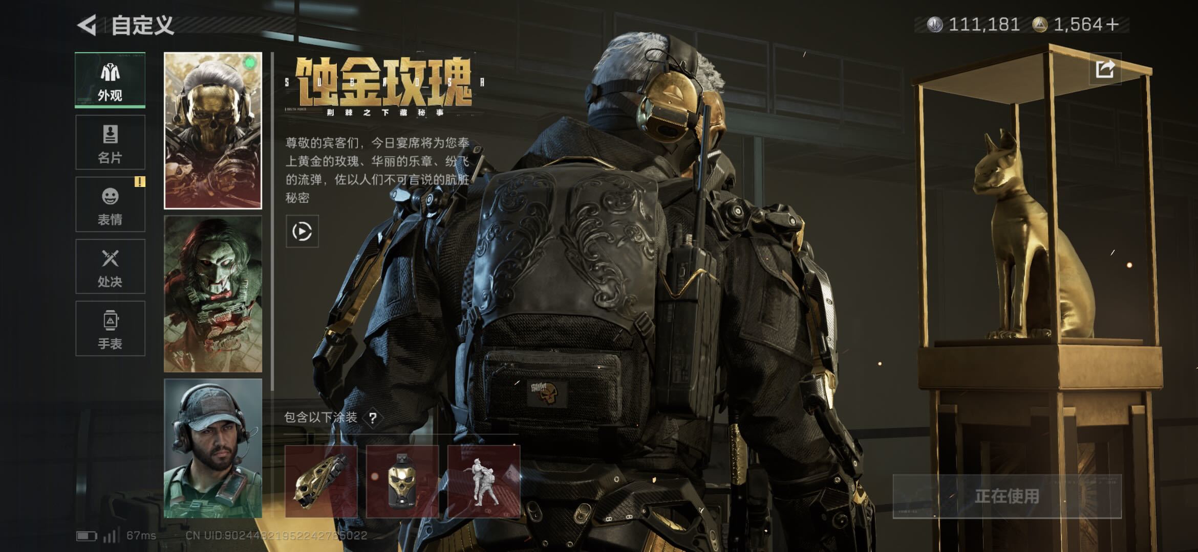 总资产142.13M,哈夫币 111.18K,战场等级:50 上等兵,行动等级: