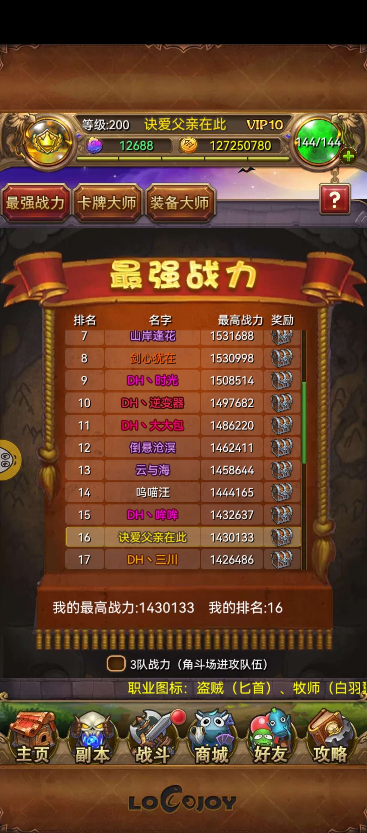 角色等级: