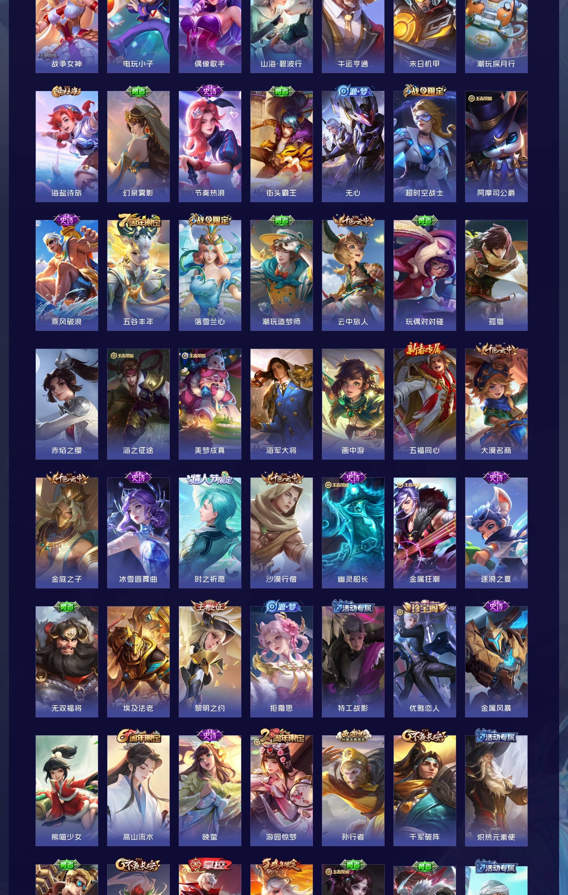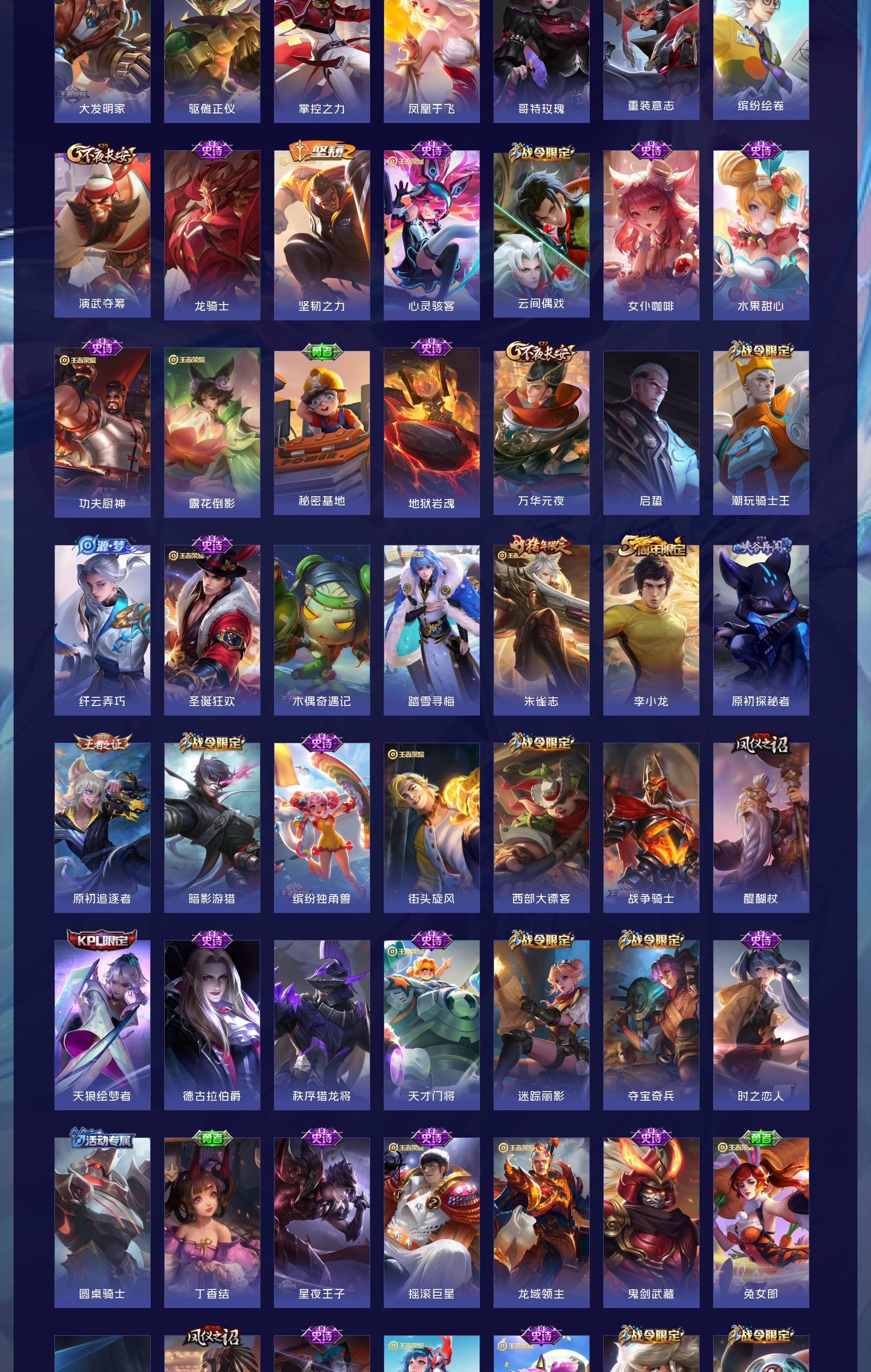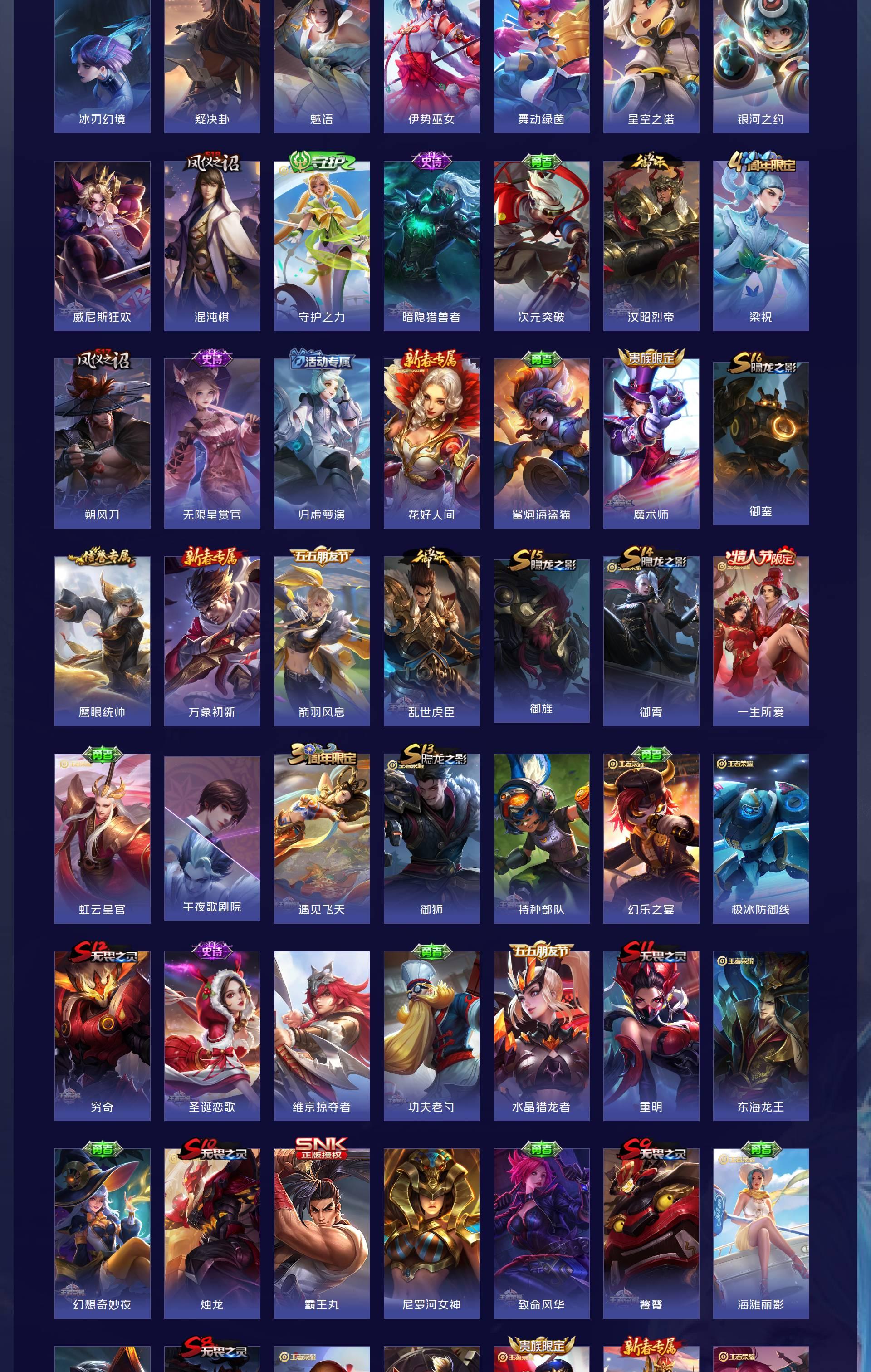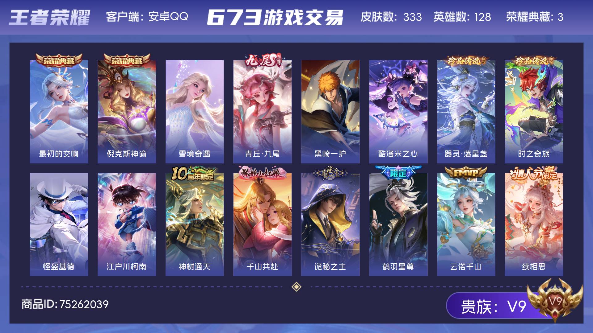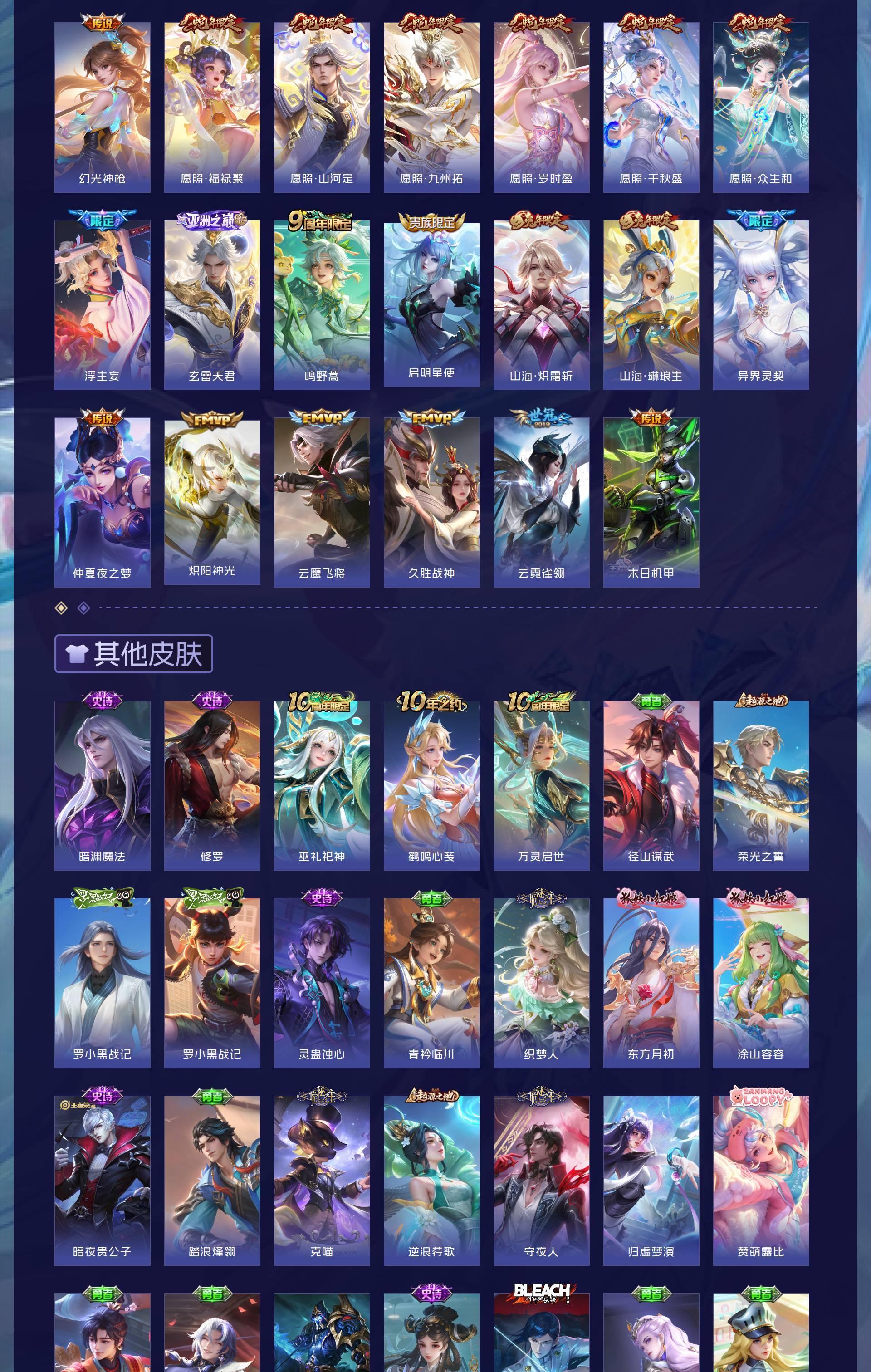 V9 皮肤333 英雄128 非凡王者 荣耀典藏3 无双皮肤2 珍品传说6 传说27 其他皮肤302