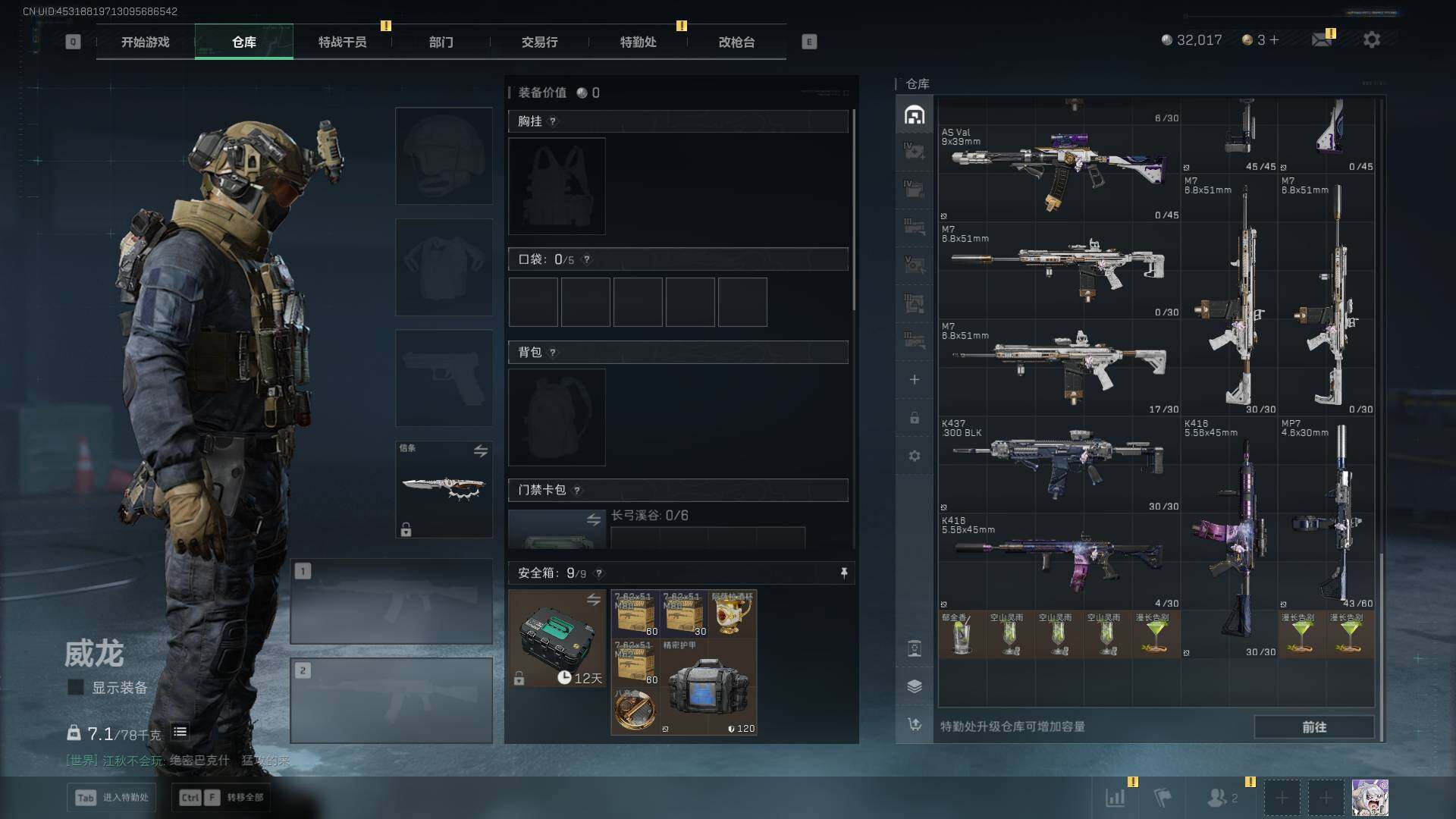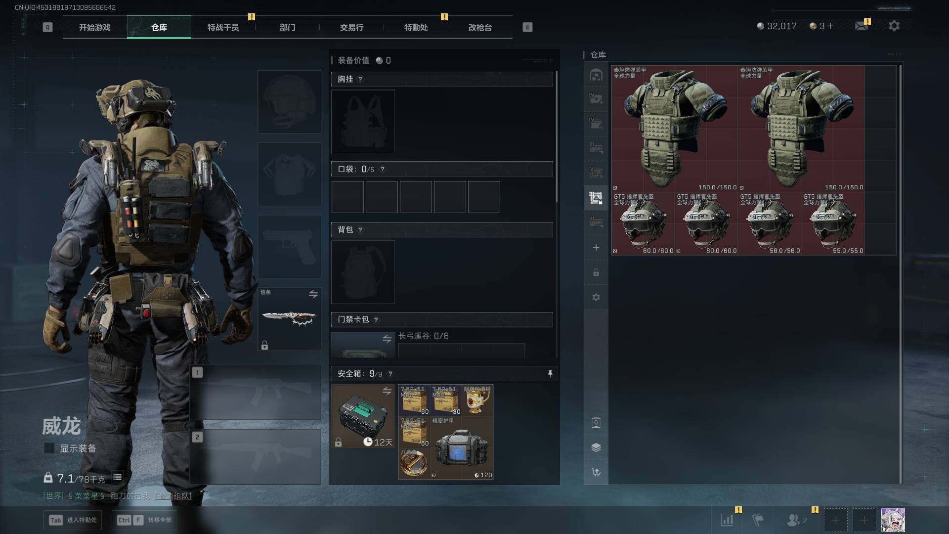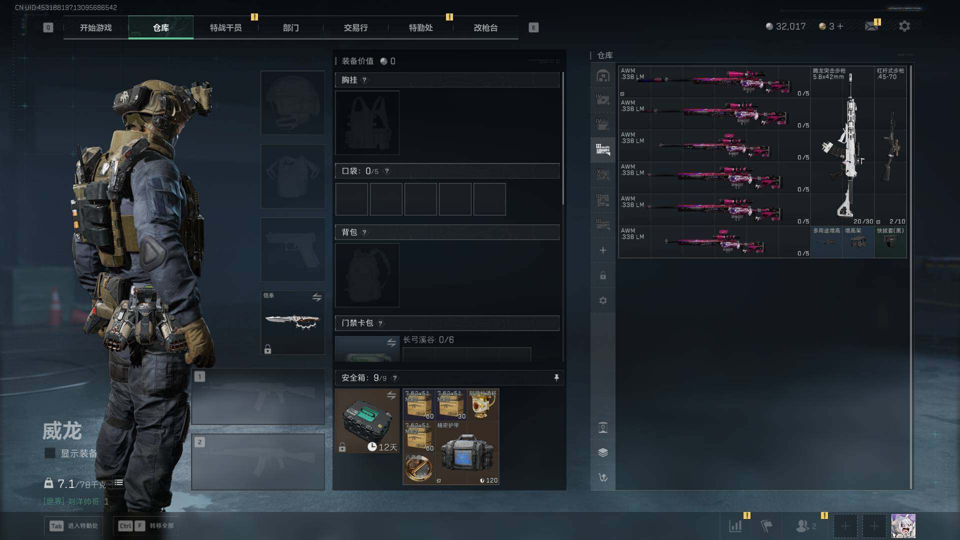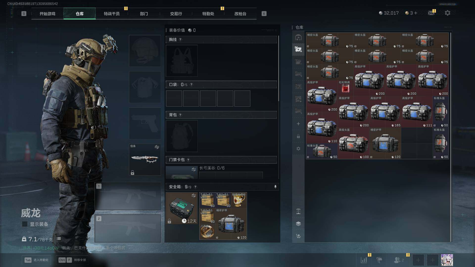 总资产(M):210M/哈夫币(K):32K/哈夫币(K):32K/传说枪皮数:20/全面战场等级: