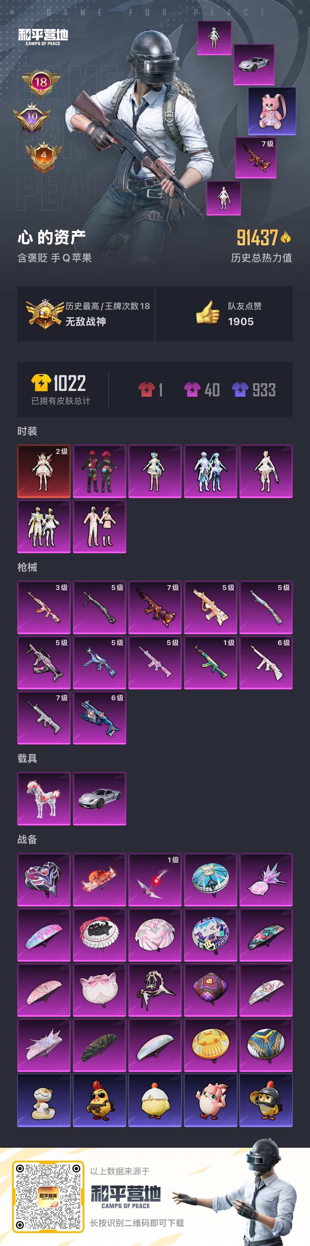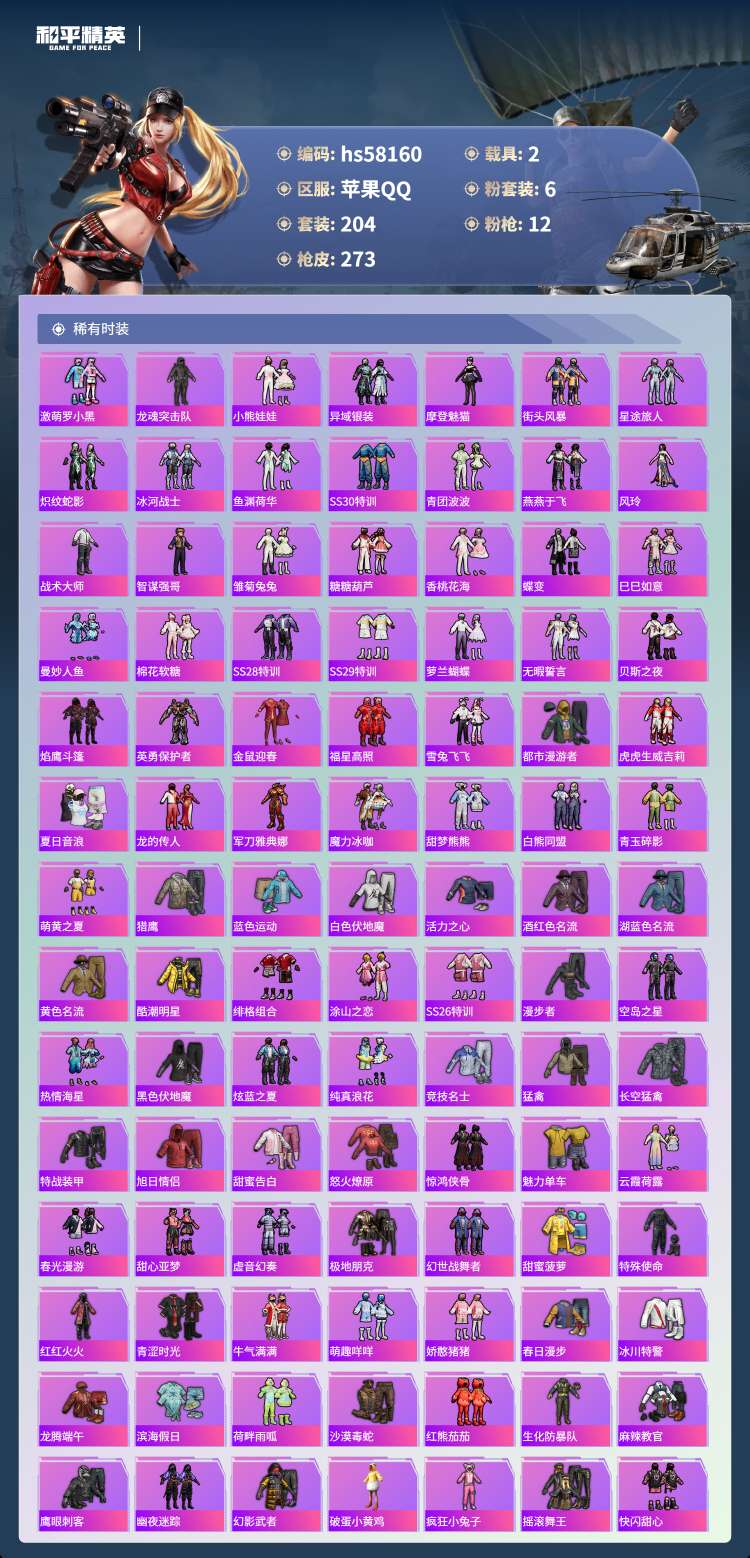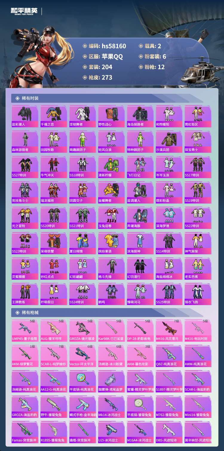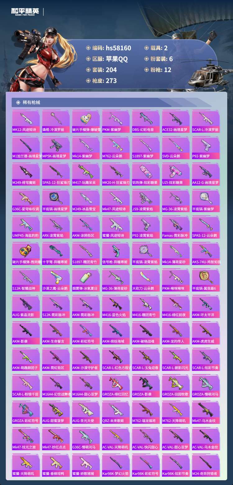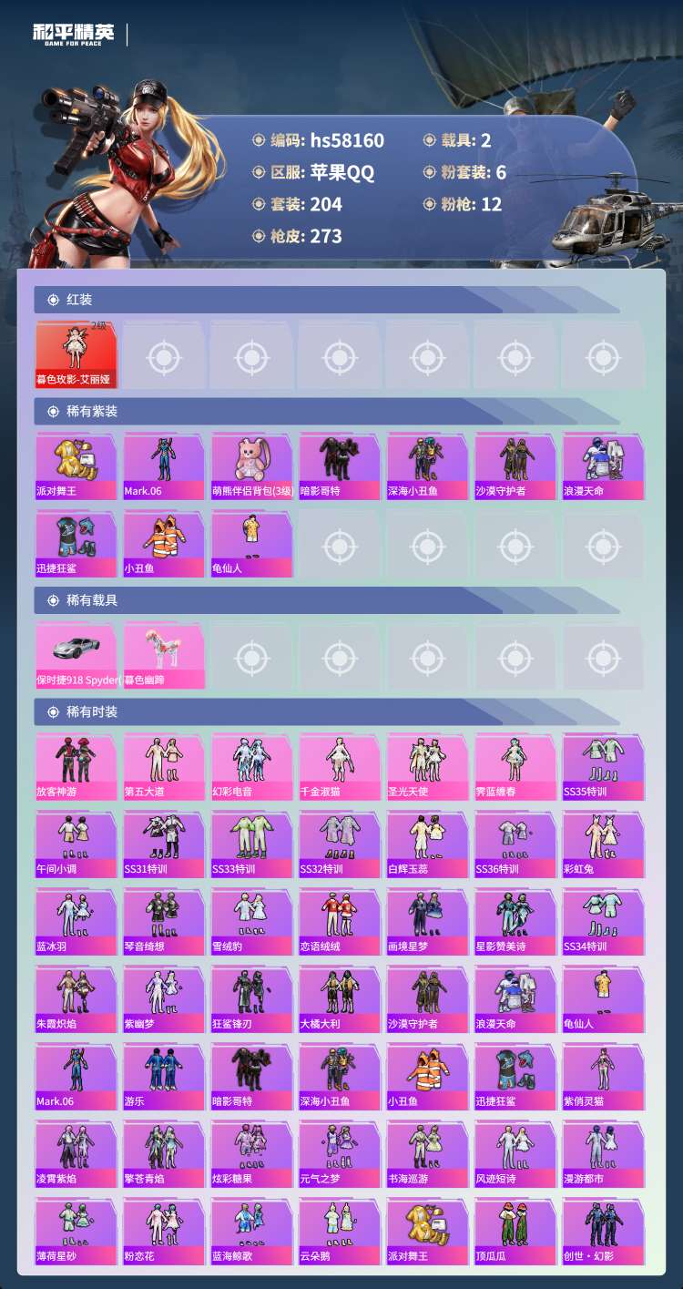hs58160 苹果手Q-18王牌印记-有战神框-1红装-6粉装-12特效枪-2载具-91437热力
