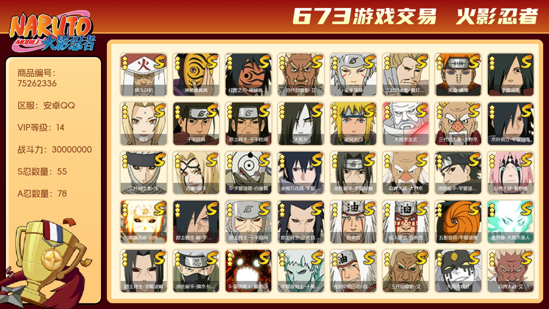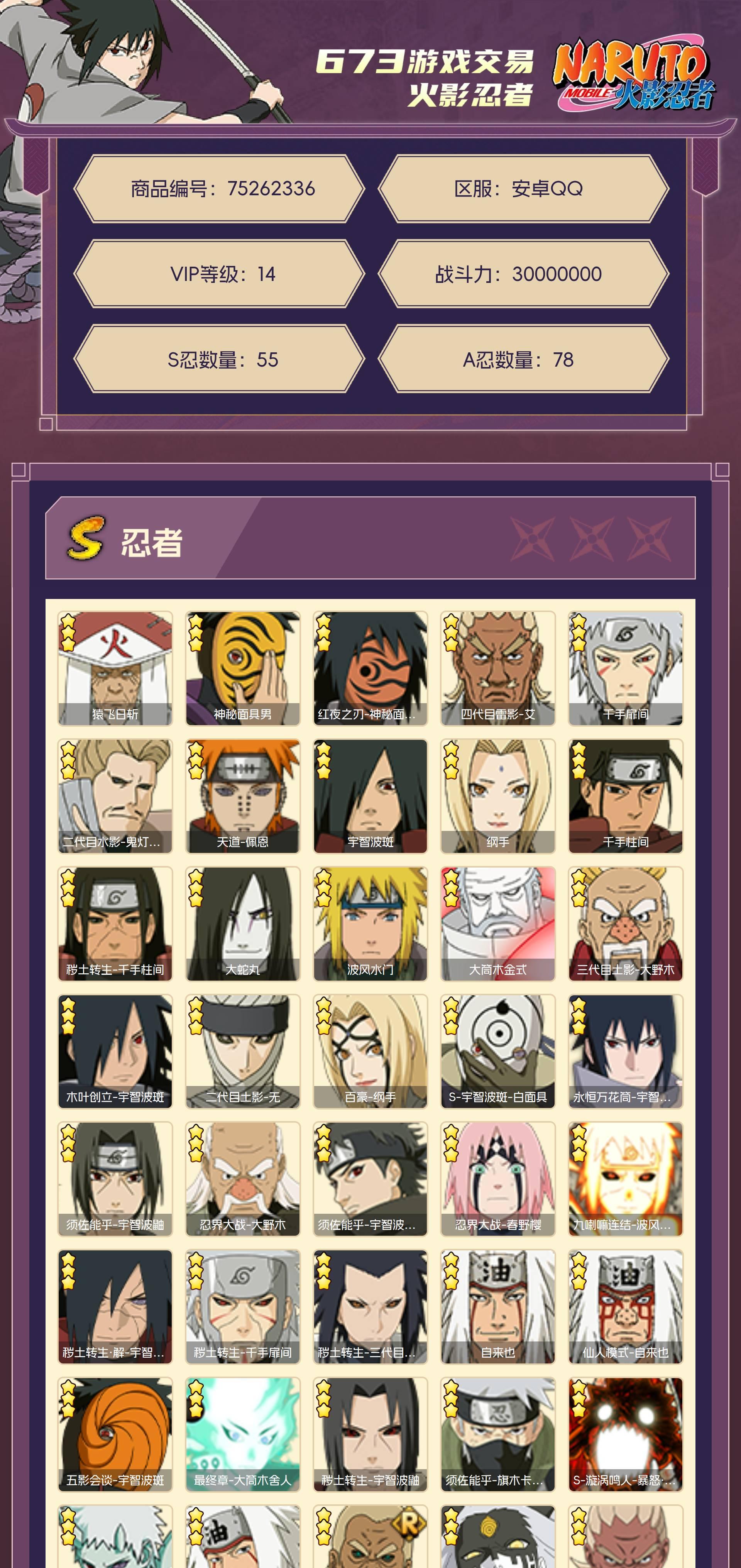 角色等级167 金币15000 战斗力30000000 S忍55 A忍78 5星S忍者4 14 段位超影