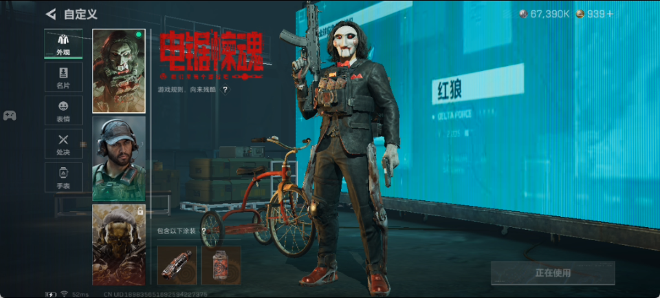 【三角卷:939】总资产:123.7M;哈夫币:67.390K 【极品猛攻号】【干员皮肤】:露娜-黑·天际线,红狼-电锯惊魂 【近战皮肤】:电锯-电锯惊魂【传说枪皮】:SR-25射手步枪-水墨云图,AK-12突击步枪-特斯拉线圈,SR-3M紧凑突击步枪-特斯拉线圈,UZI冲锋枪-特斯拉线圈,近战-电锯惊魂,SCAR-H战斗步枪-启航,KC17突击步枪-电锯