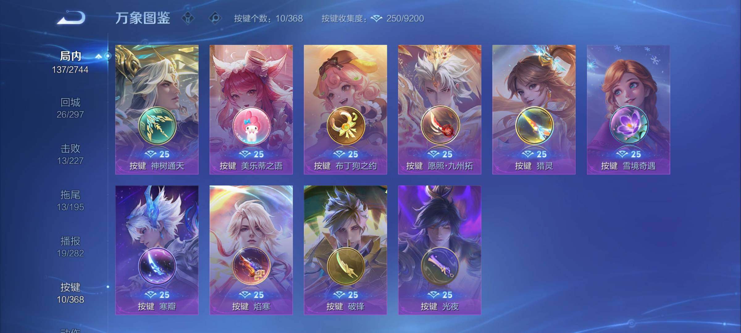 可换绑【金标万战李信1.2万 金标赵云 韩信典藏 暃珍品 多传说限定号】1星传说 1天幕 10按键 7王者印记 五级铭文80 可二次EE0281 安卓Q-V7-191皮肤-1典藏皮肤-1珍品传说-13传说-51史诗【英雄全皮】:李信全皮,空空儿全皮,影全皮【荣耀典藏】:韩信弑枪猎影【珍品传说】:暃朽木白哉【星元皮肤】:宫本武藏幽冥之眼【天幕】:凤鸣九霄天幕【传说皮