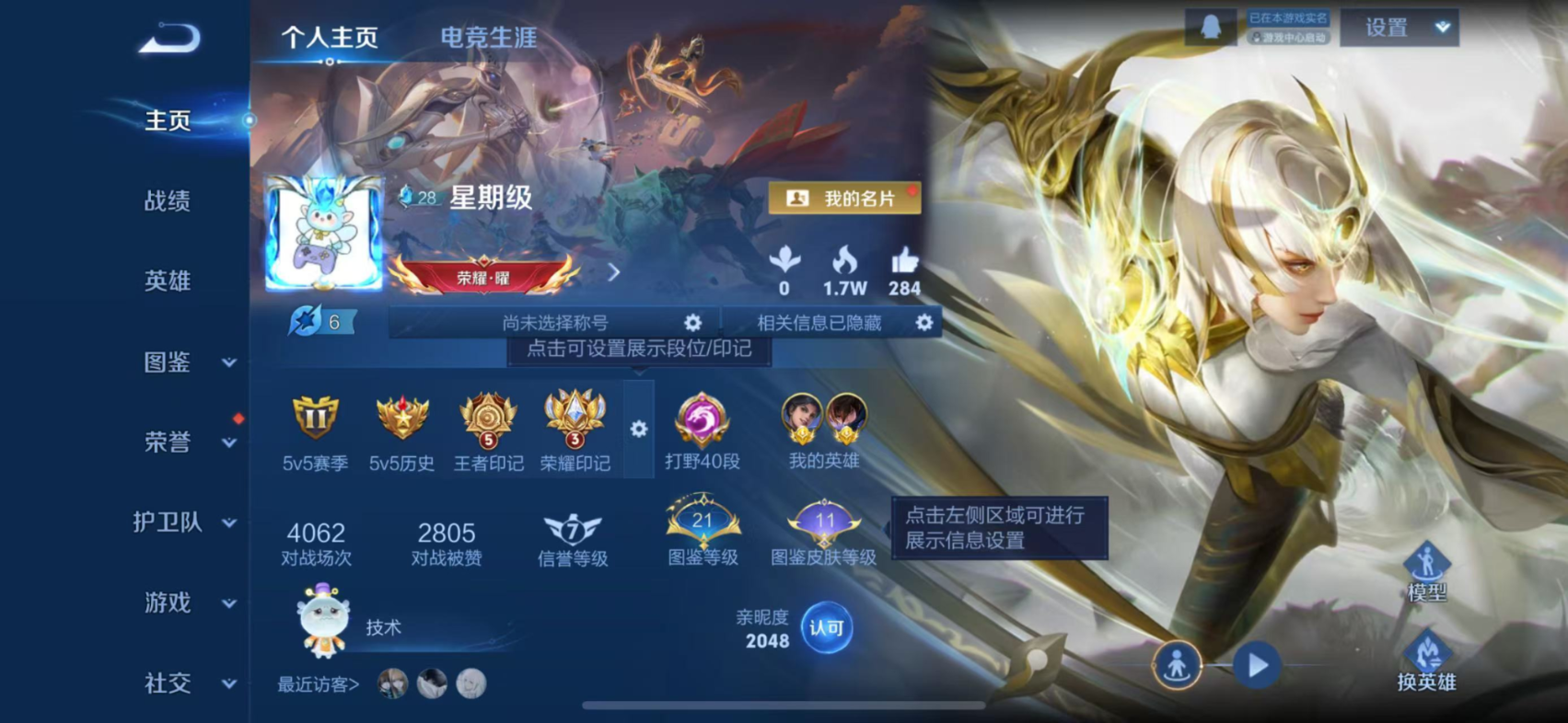 安卓QQ/至尊星耀/87皮肤/111英雄/0典藏/0珍品无双/0无双/0珍品传说/7传说/18史诗/5稀有英雄