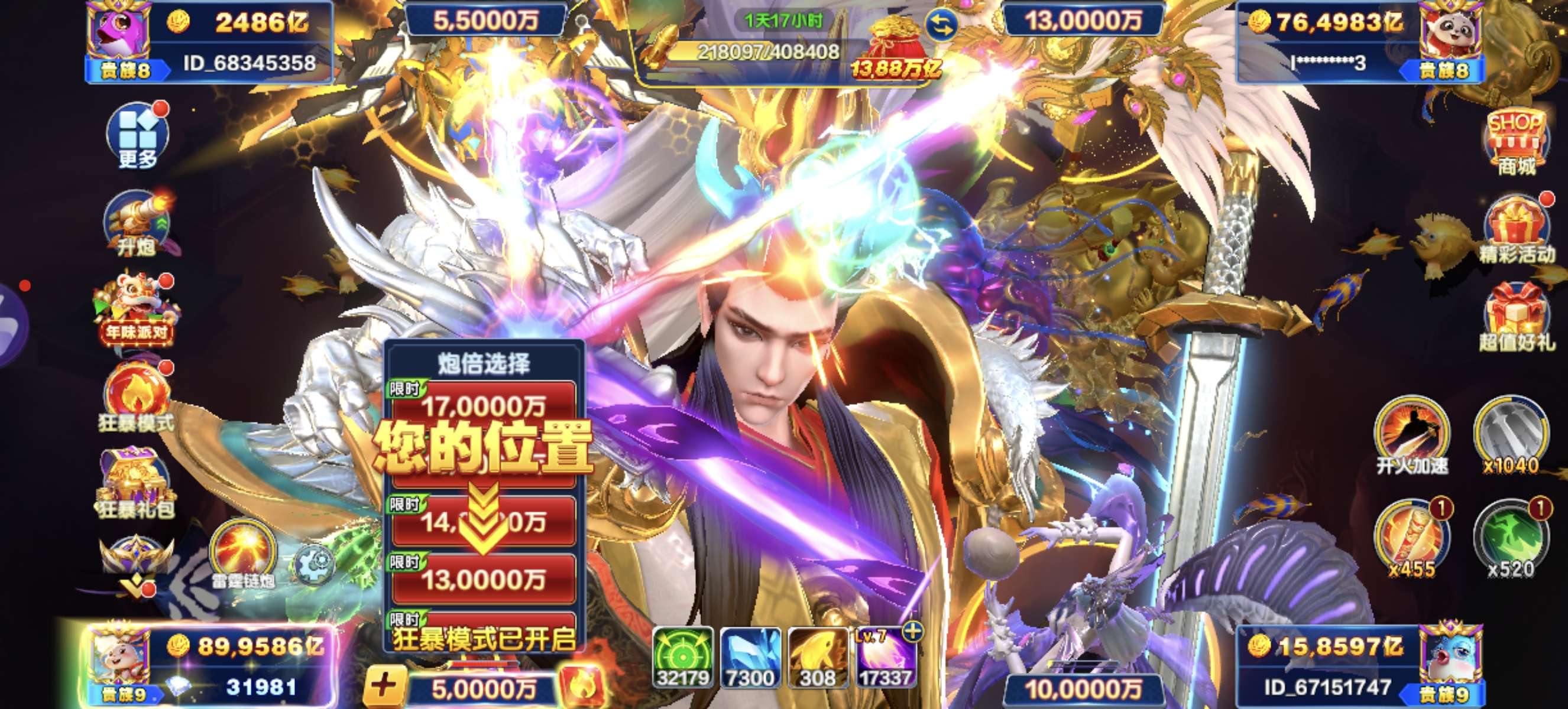 准V10永久天神90多万亿狂暴,虚炮20看图,最近爆率太高了,哪位拿去体验,不玩了可卖回一百