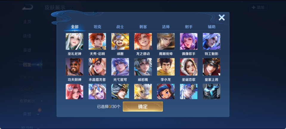 【15792382】[15792382]【精品号手慢无】113皮肤 1典藏 5传说 1星传说 弑枪猎影 地狱之眼,超时空战士-狄仁杰,惊梅引,神树通天 电玩小子,偶像歌手,冰冠公主,白龙吟,节奏热浪,女仆咖啡,摇滚巨星,水果甜心,心灵骇客,功夫厨神,暗隐猎兽者,鬼剑武藏,天秀·启明,缤纷独角兽,乘风破浪,水晶猎龙者,圣诞狂欢,圣诞恋歌,鹰眼统帅,特工魅影,魅力维加