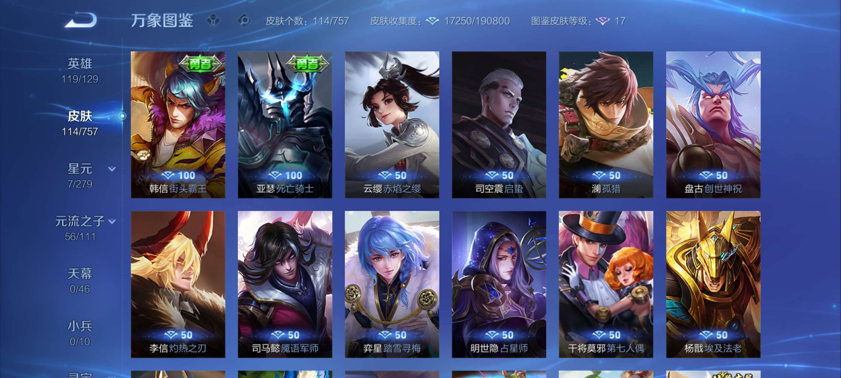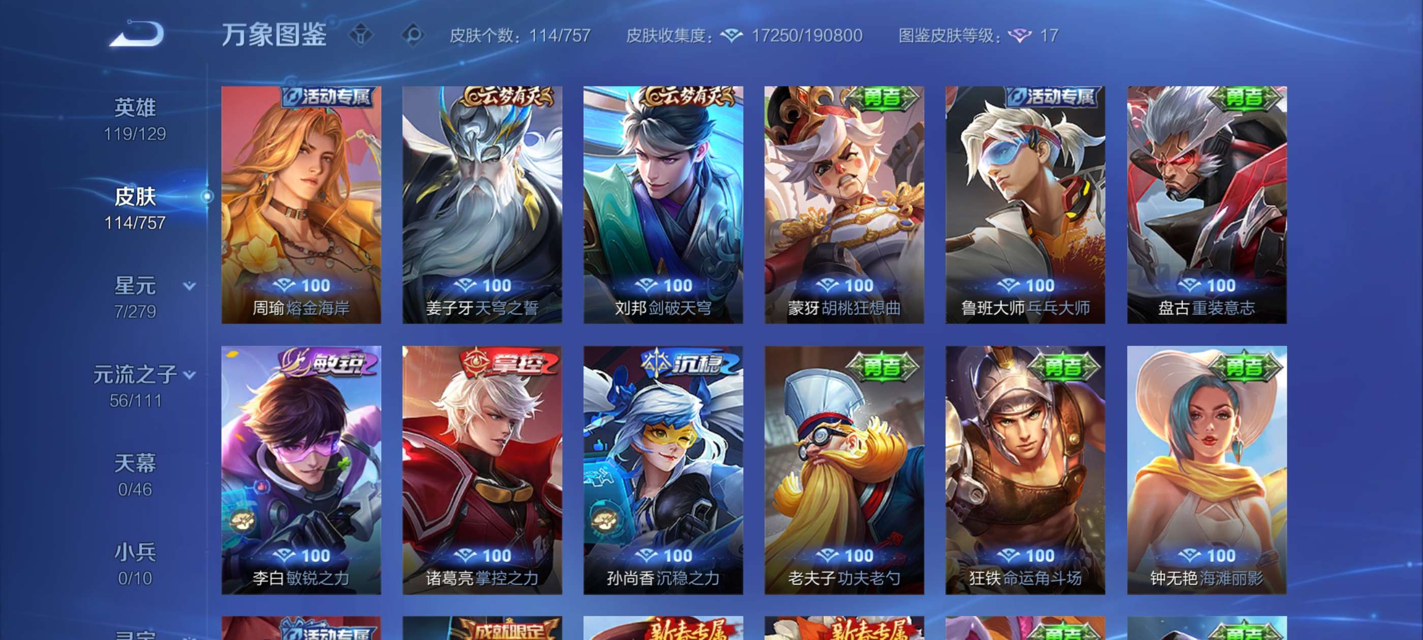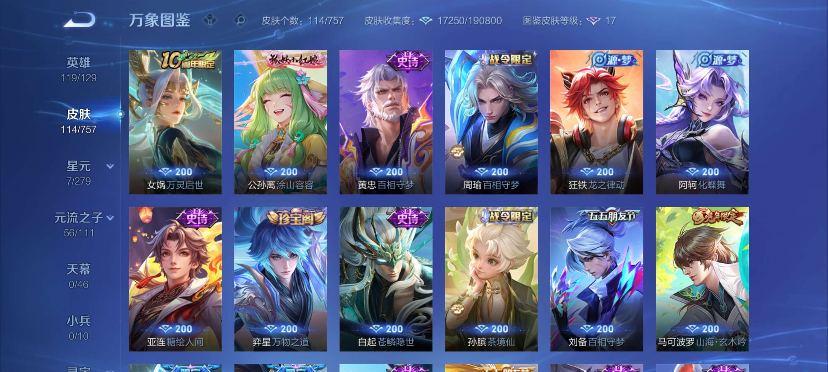 实价不刀超值10多个传说皮肤,荣耀水晶240多快出了,有盘古冰皮,账号贵族七