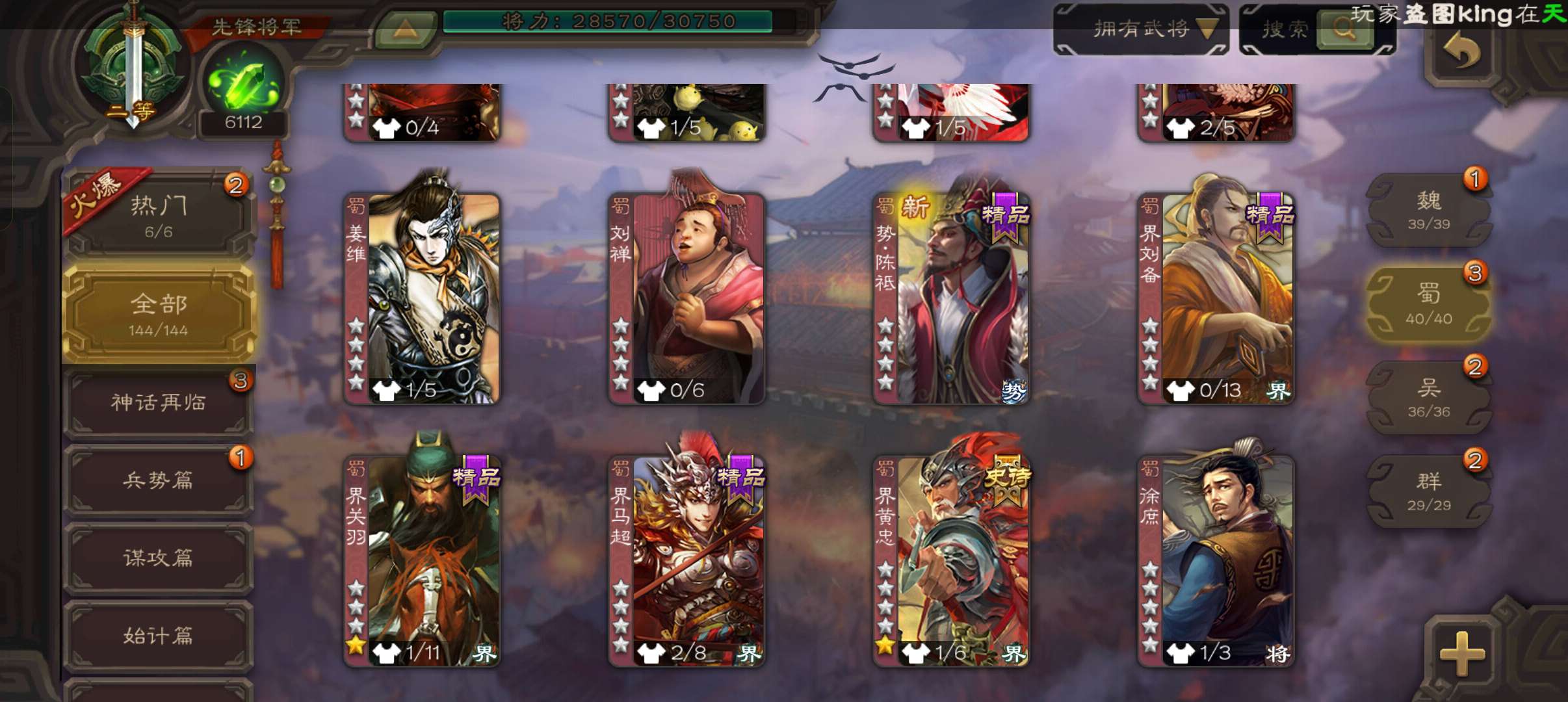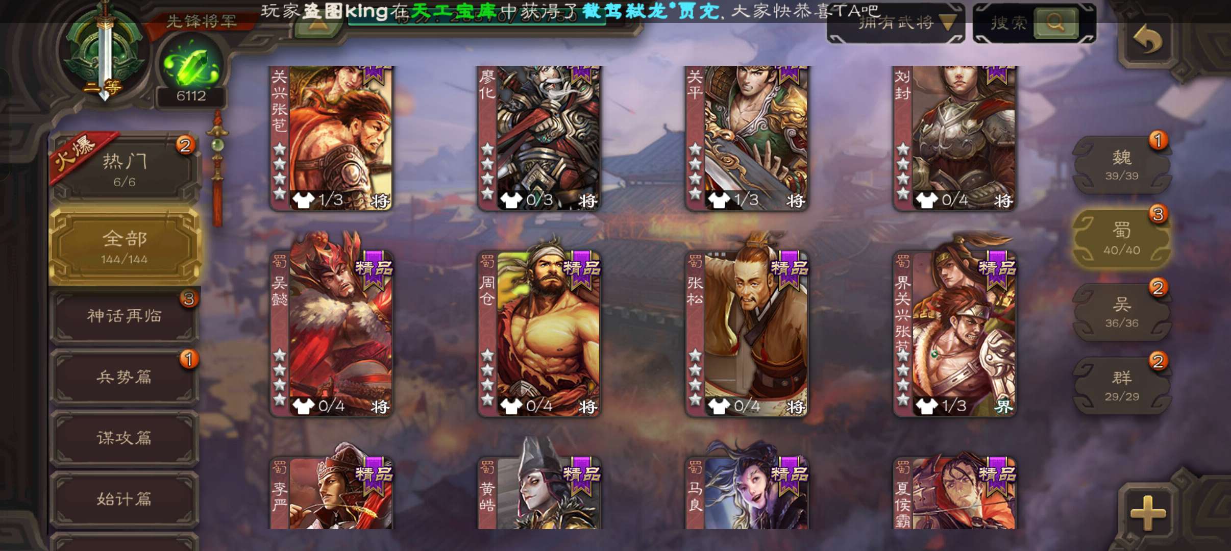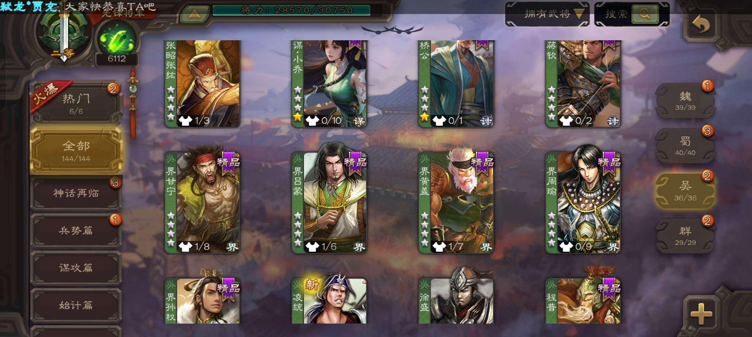 5史诗先锋,6100魂,傅佥回廊动白马回廊神吕布谯周界黄忠,天工杨奉,回廊曹昂甘夫人144将