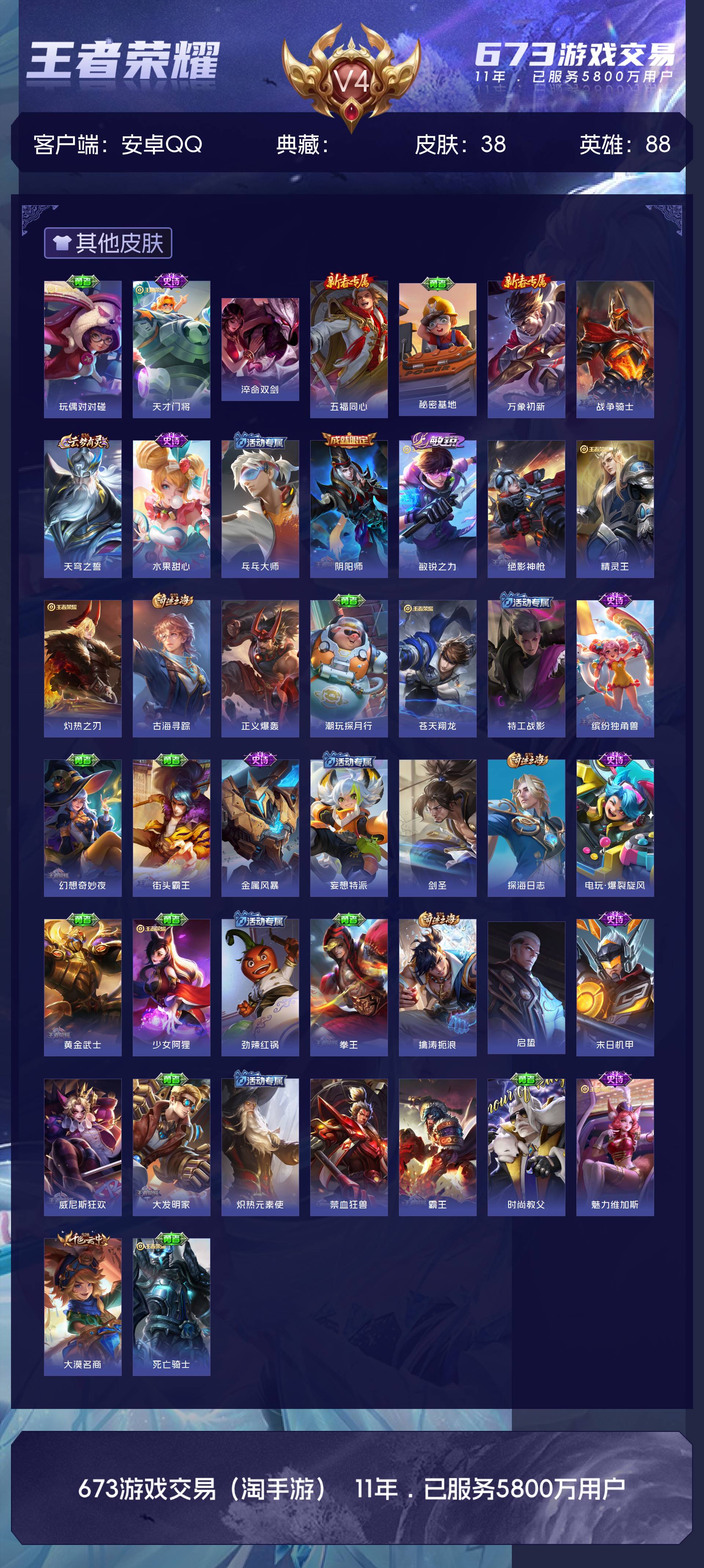V4 皮肤38 英雄88 永恒钻石 其他皮肤44
