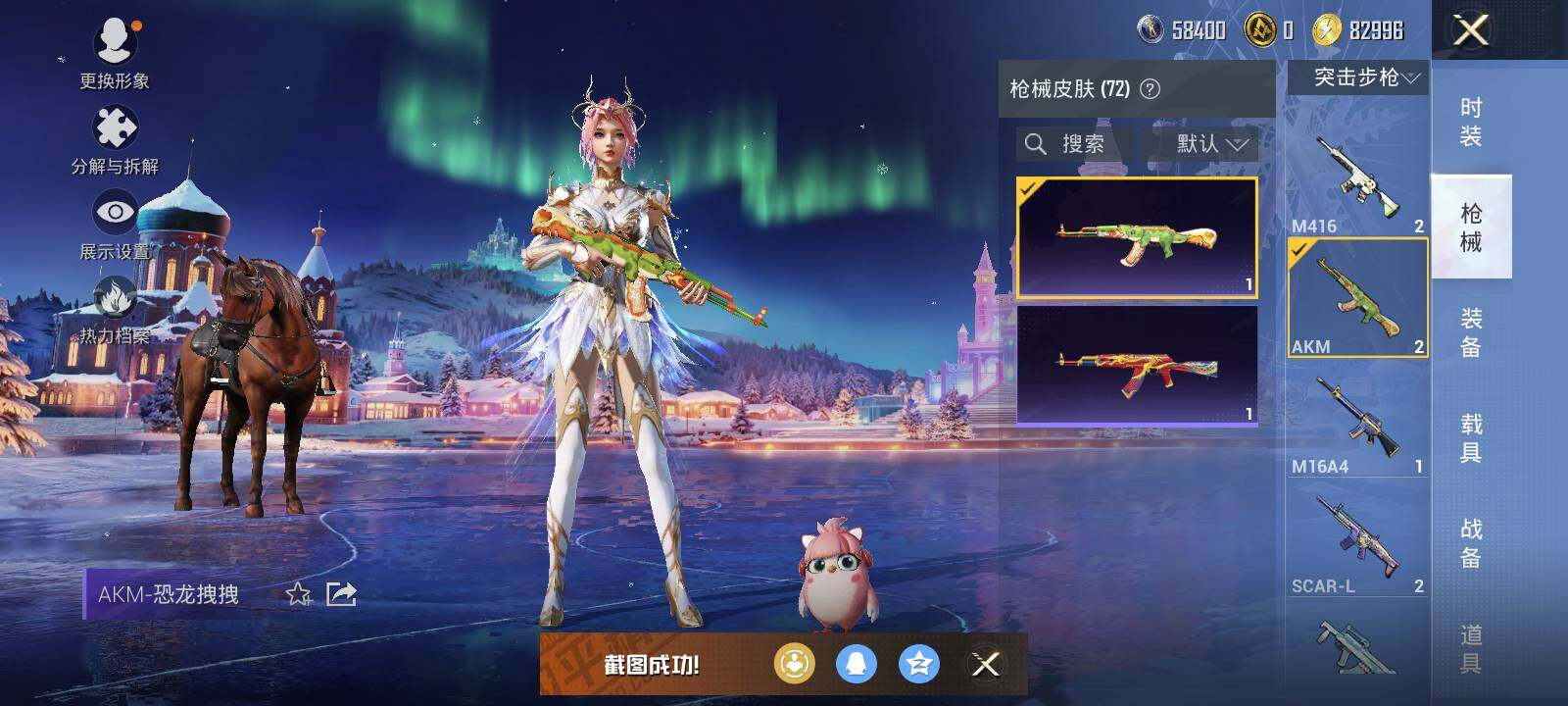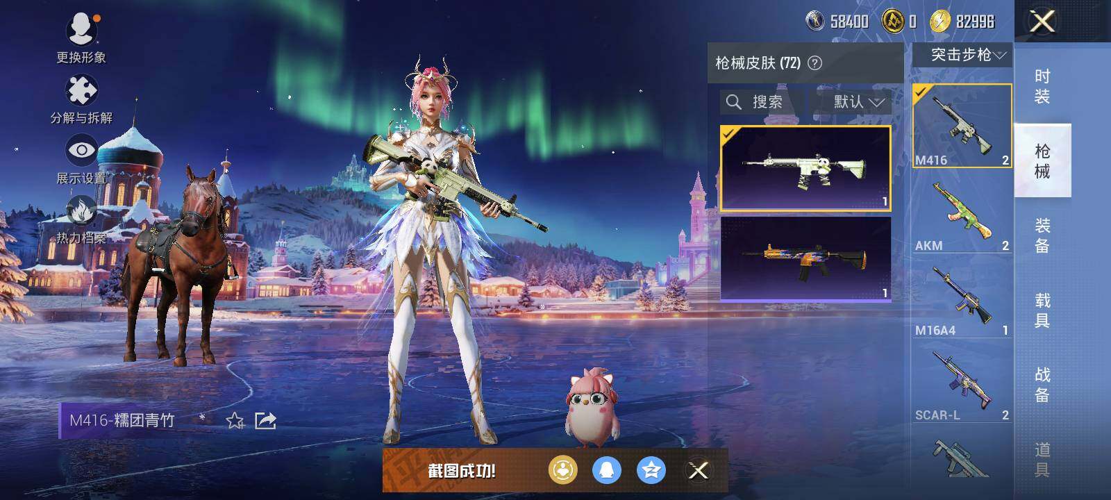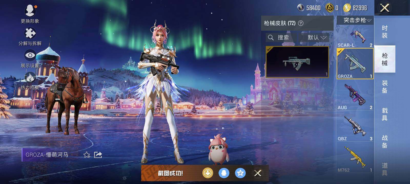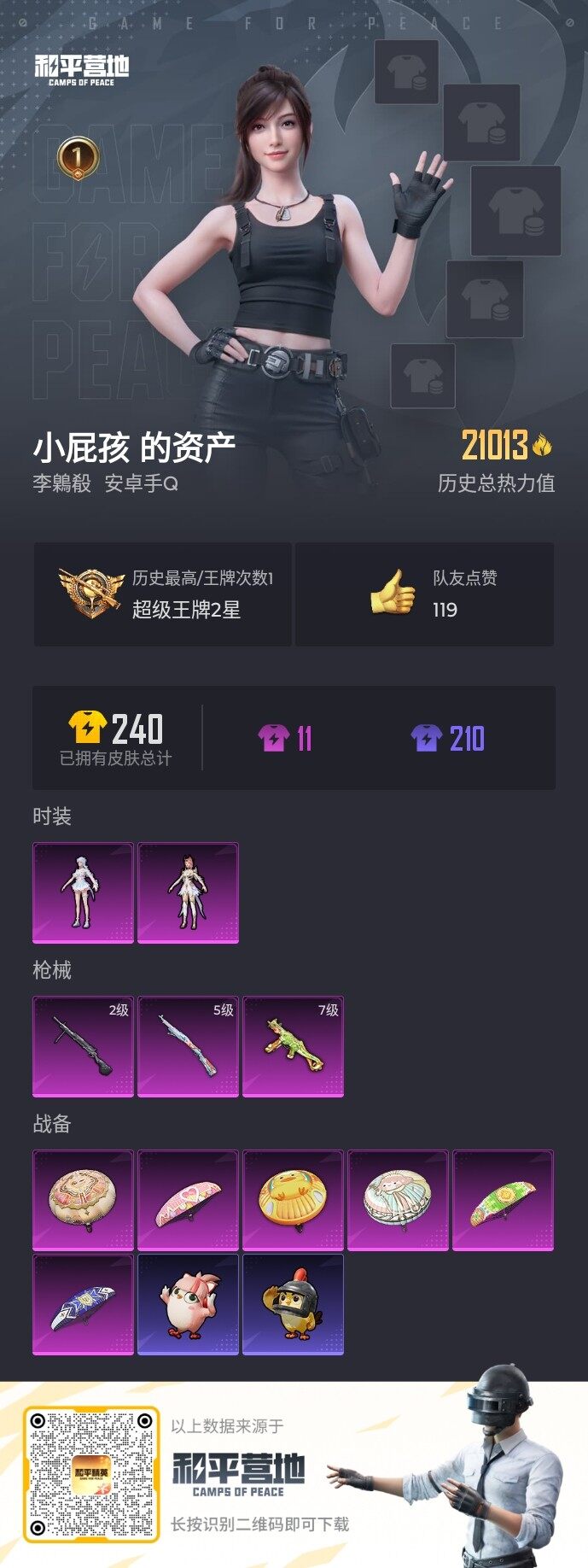 安卓,手Q-2粉装-3特效枪-0载具-0粉色飞行器-21013热力值-1王牌印记-47套装-72枪皮