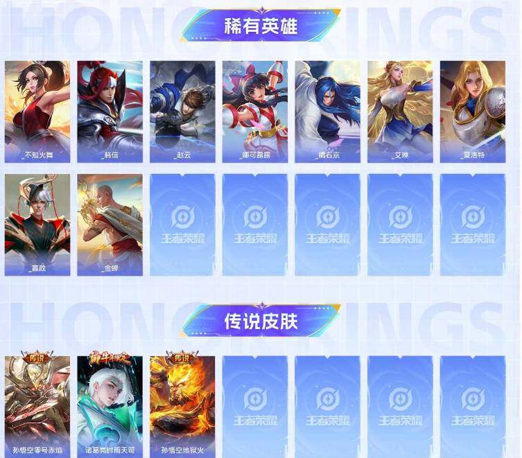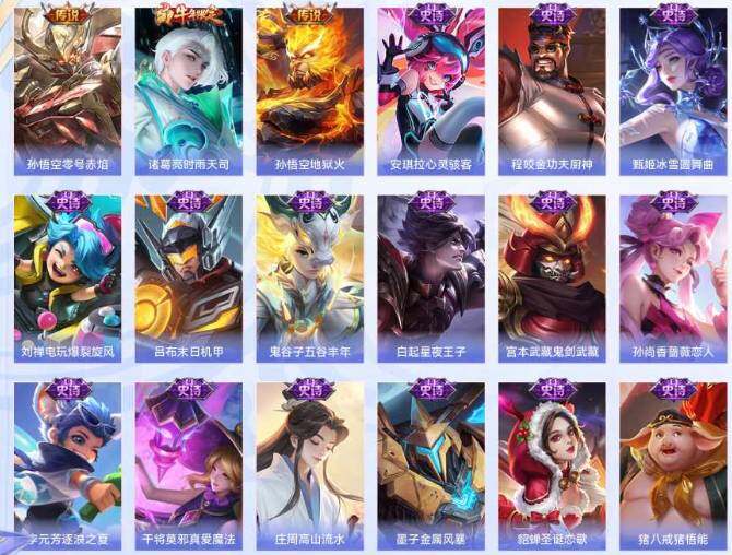 【传说皮肤】:诸葛亮时雨天司,孙悟空零号赤焰,孙悟空地狱火