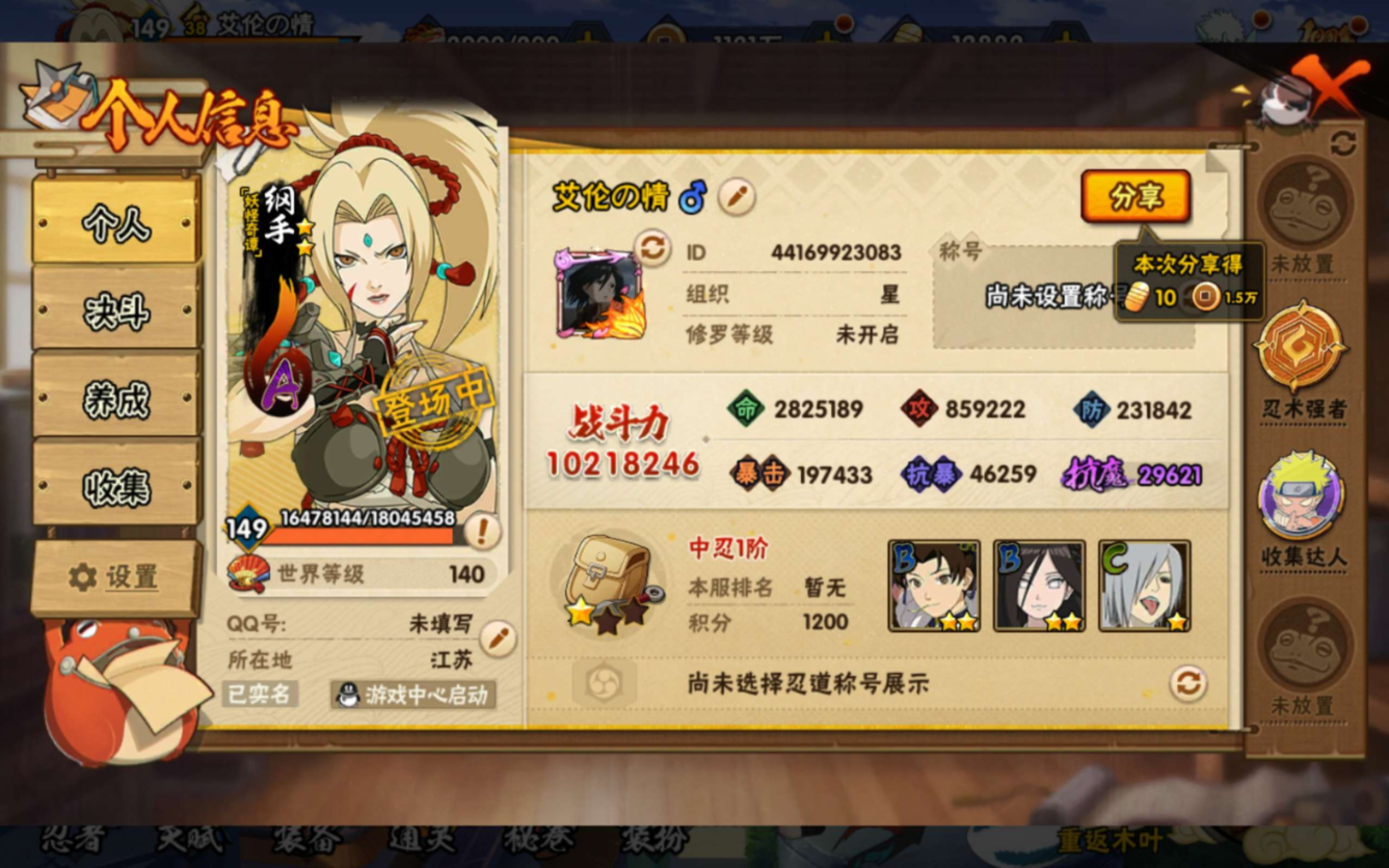 安卓QQ-v10一千万战力-熊猫-S忍者数:19- A忍者