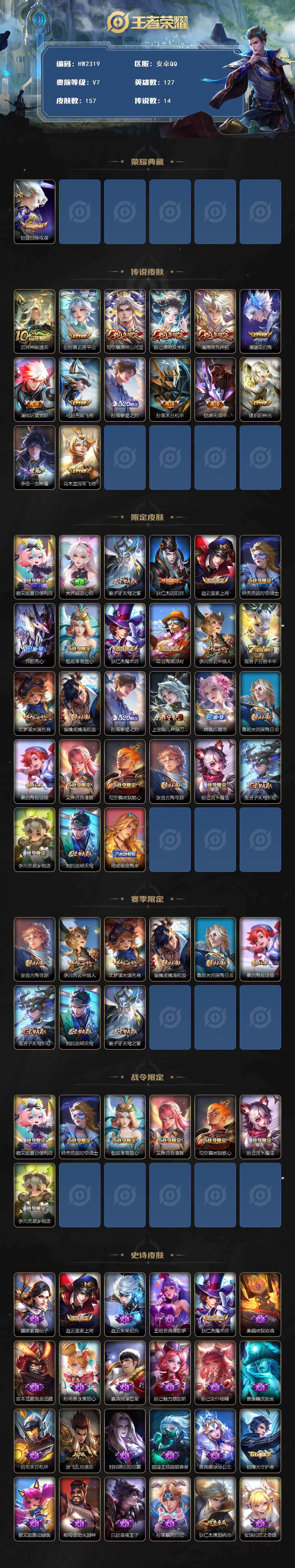 【限定皮肤】:蔡文姬夏日便利店,大乔绒语心约,姜子牙天穹之誓,狄仁杰阴阳师,赵云皇家上将,钟无艳超