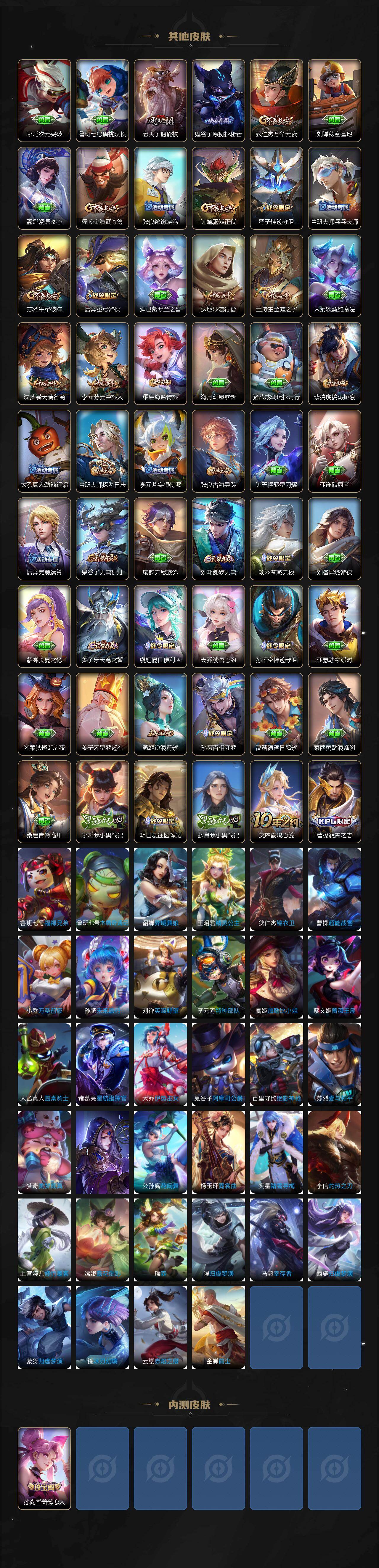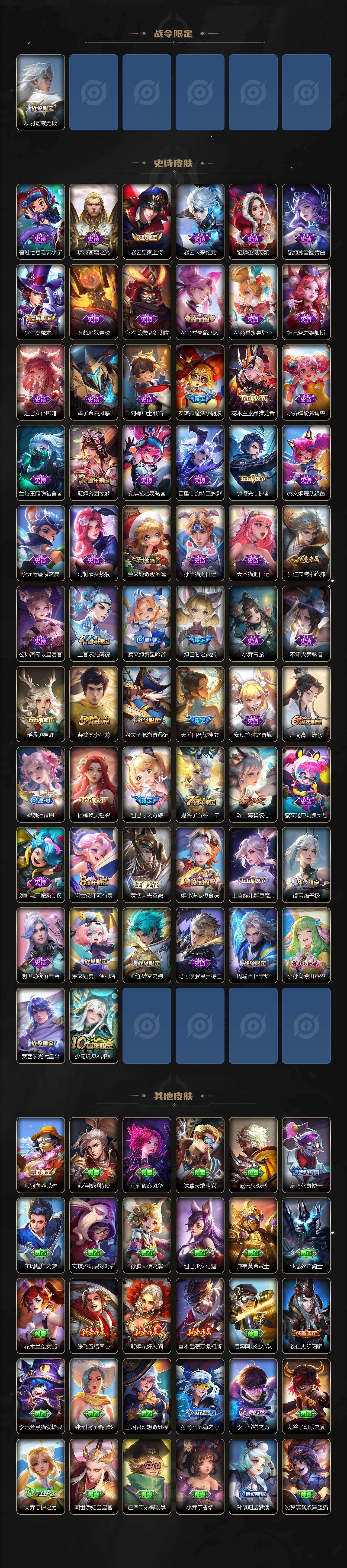 【限定皮肤】:蔡文姬夏日便利店,大乔绒语心约,虞姬夏日便利店,姜子牙天穹之誓,狄仁杰阴阳师,赵云皇家上将,墨子神迹守卫,妲己时之彼端,妲己时