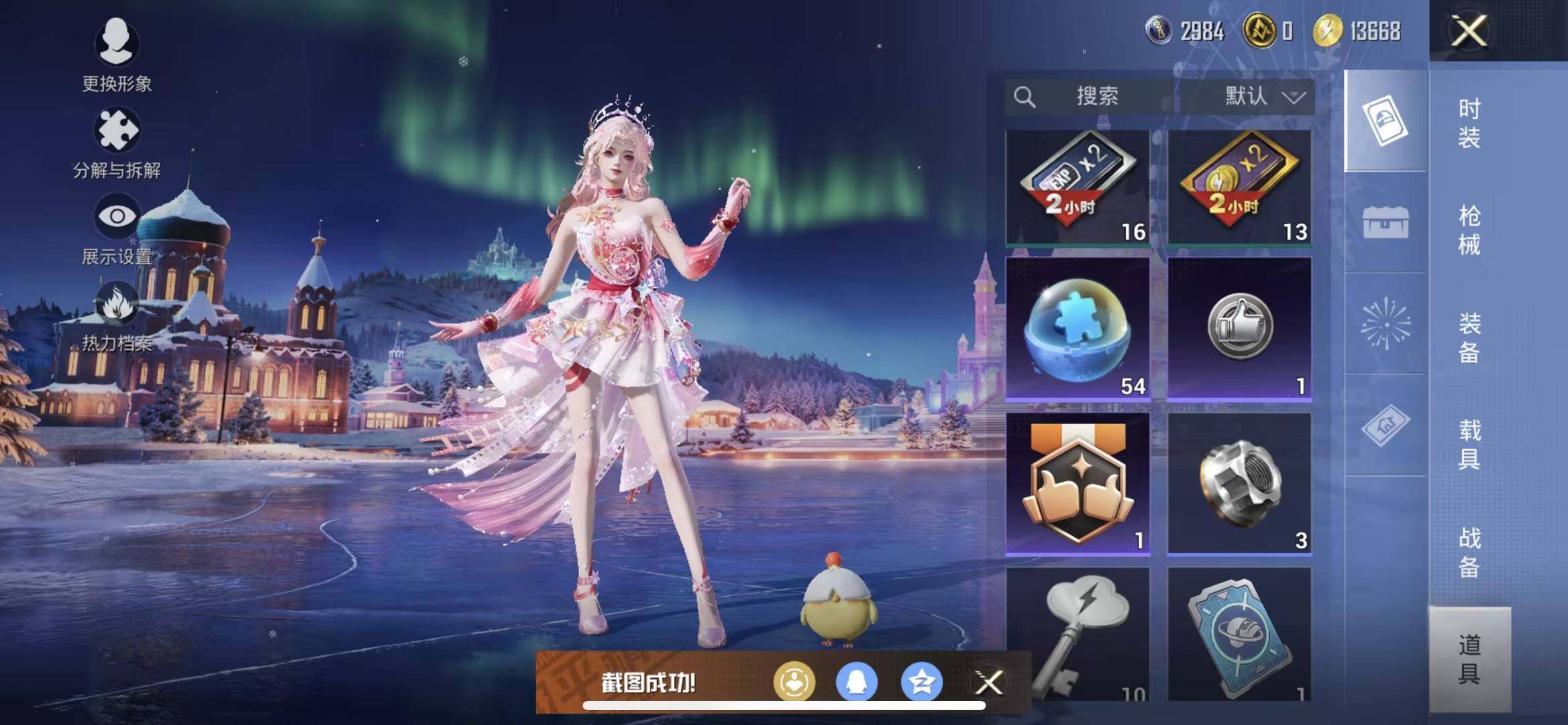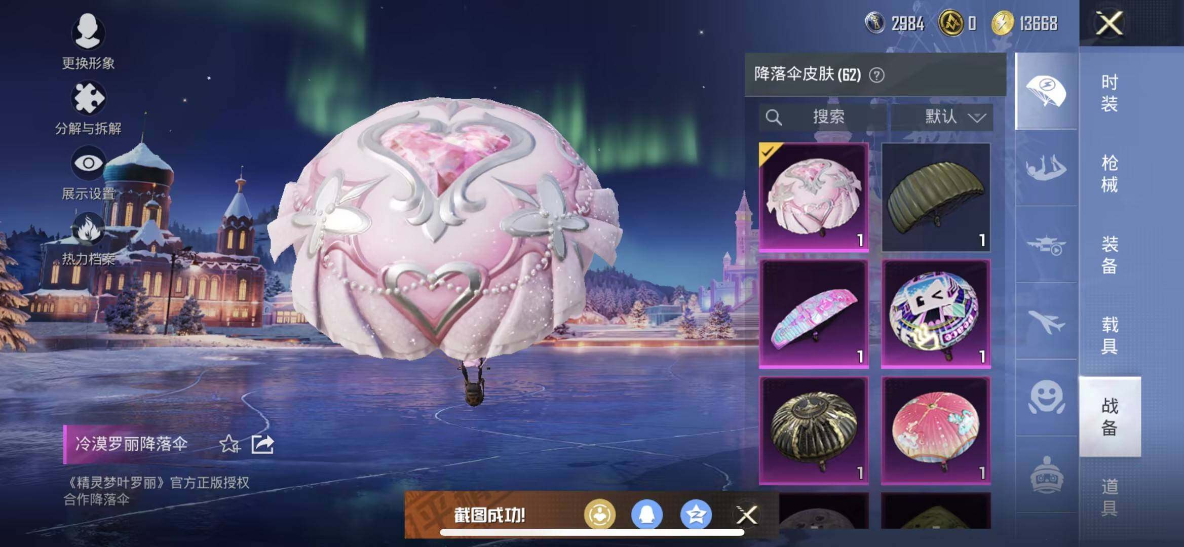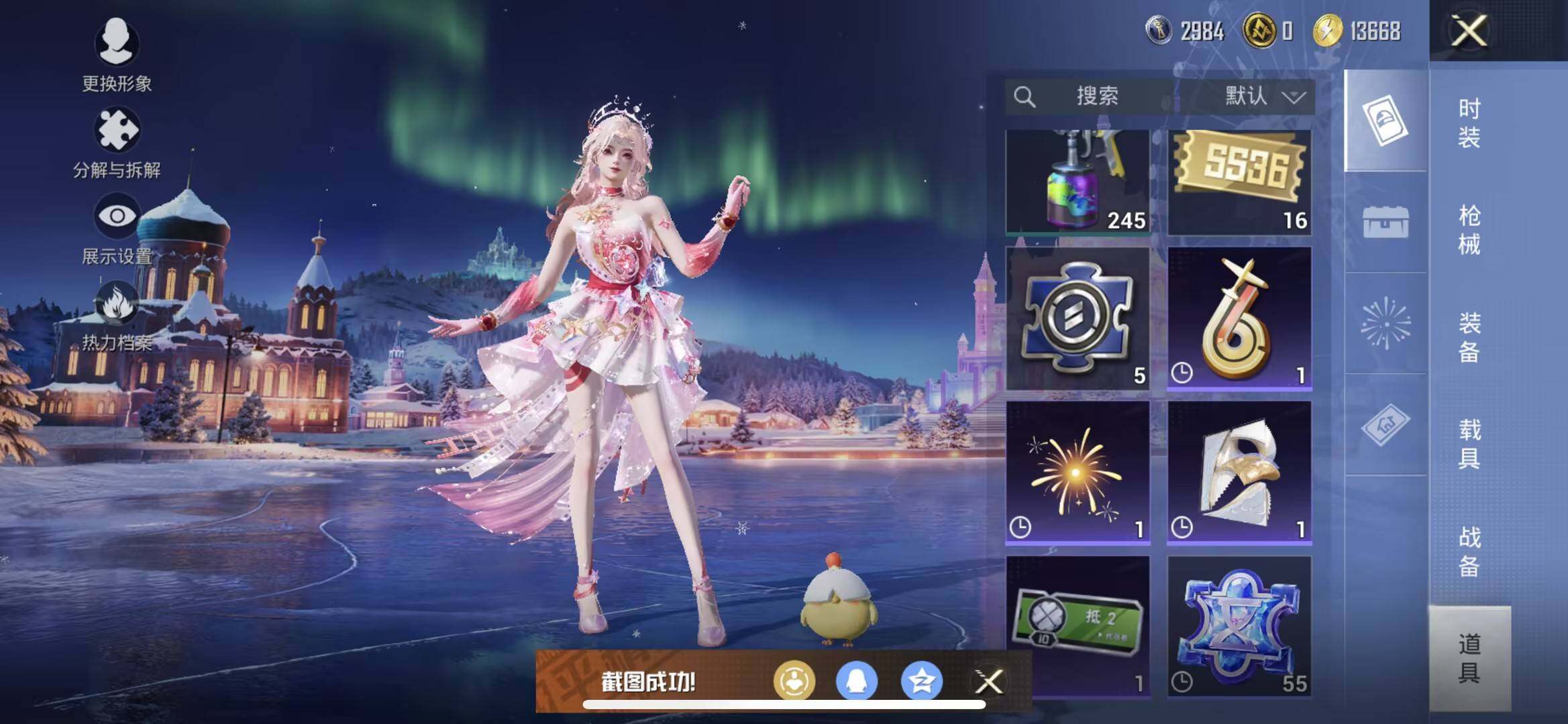 苹果 手Q-3粉装-7特效枪-0载具-1粉色飞行器-54171热力值-13王牌