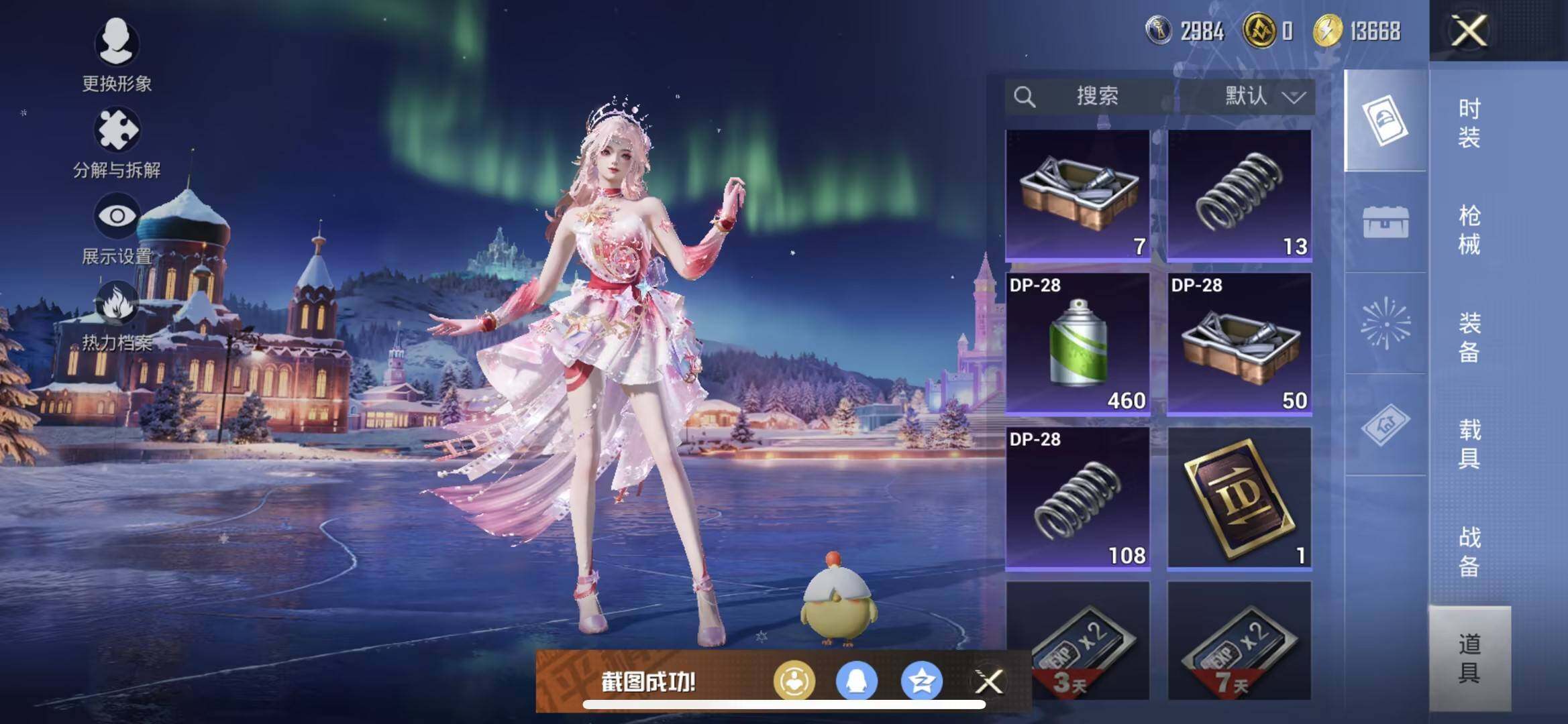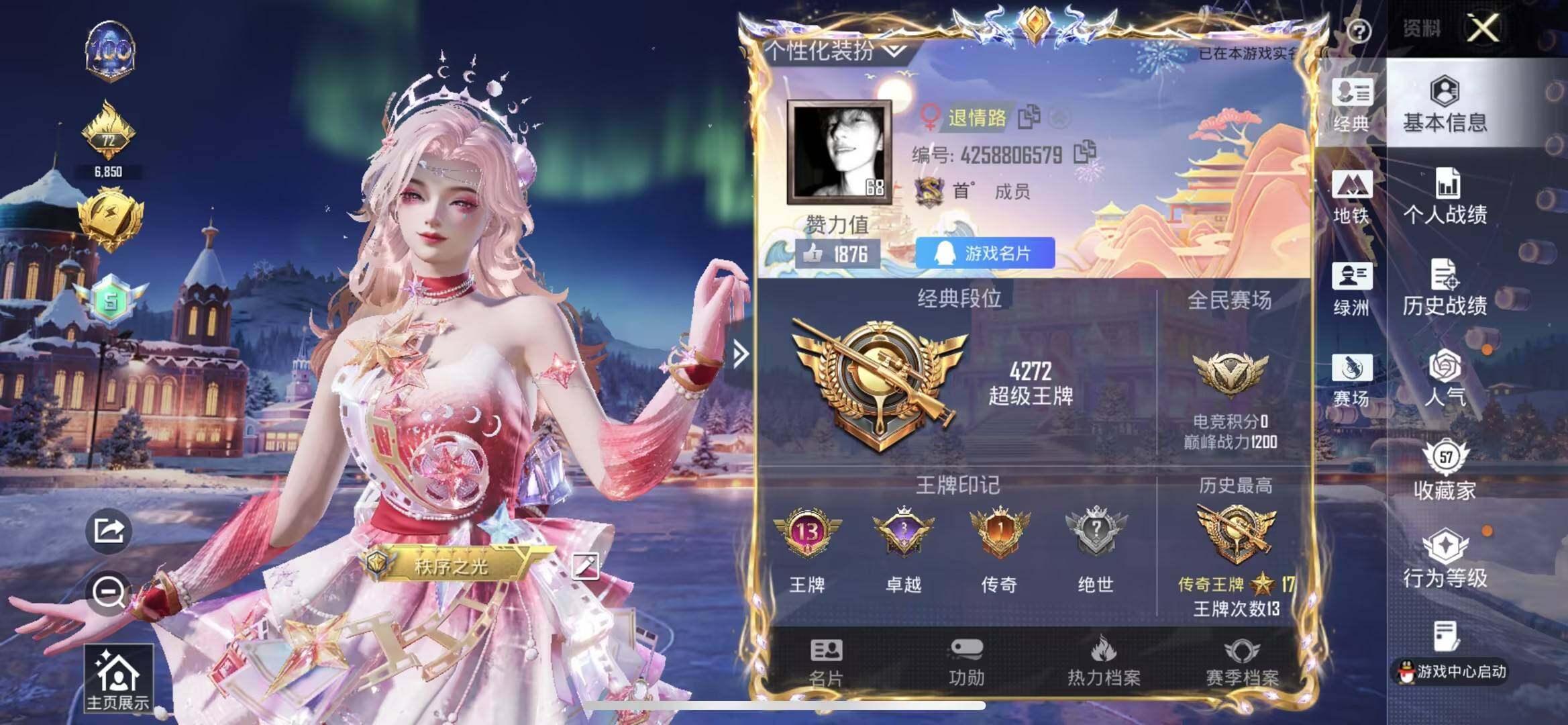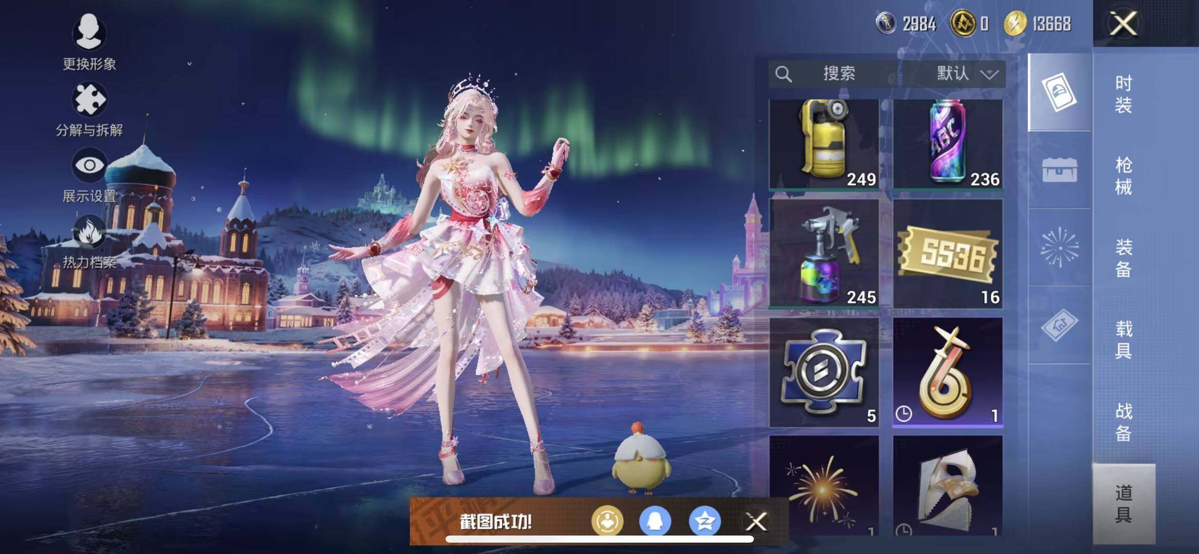 苹果 手Q-3粉装-7特效枪-0载具-1粉色飞行器-54171热力值-13王牌