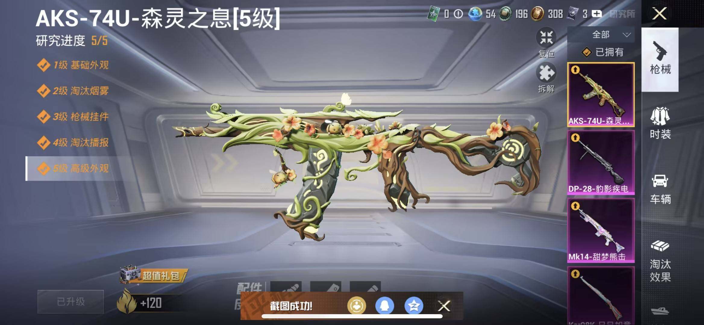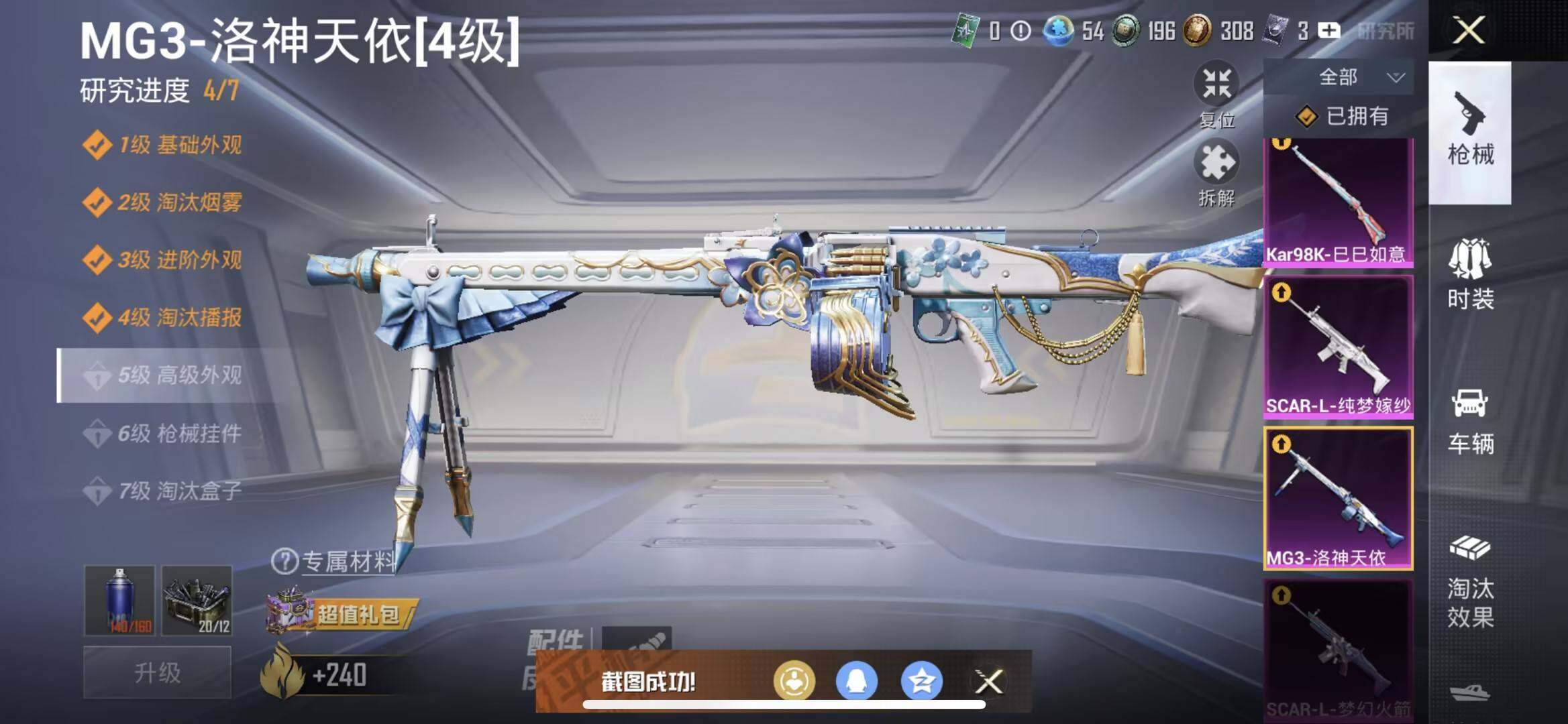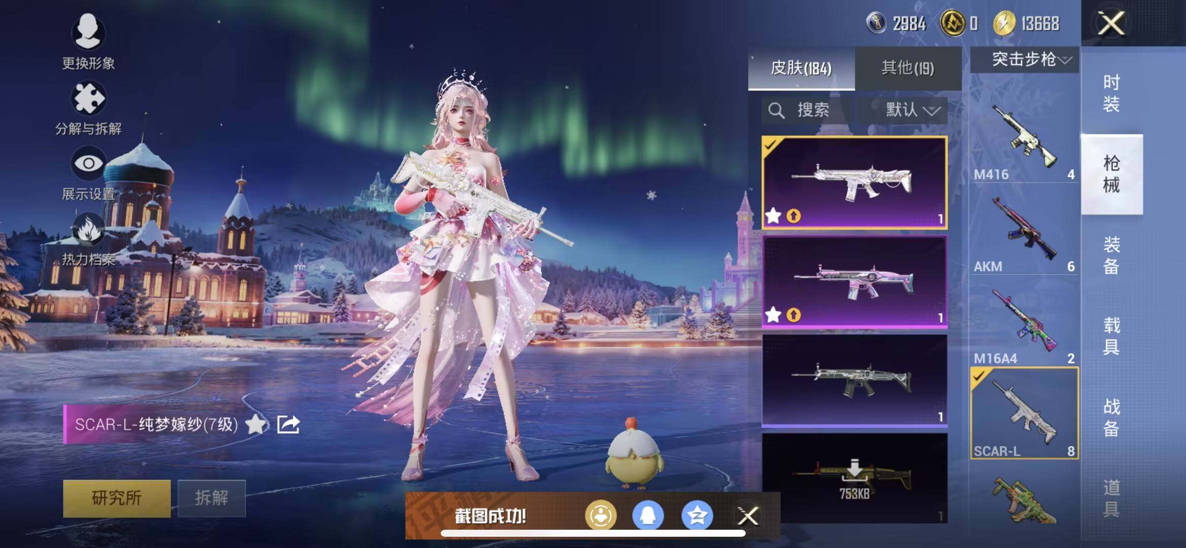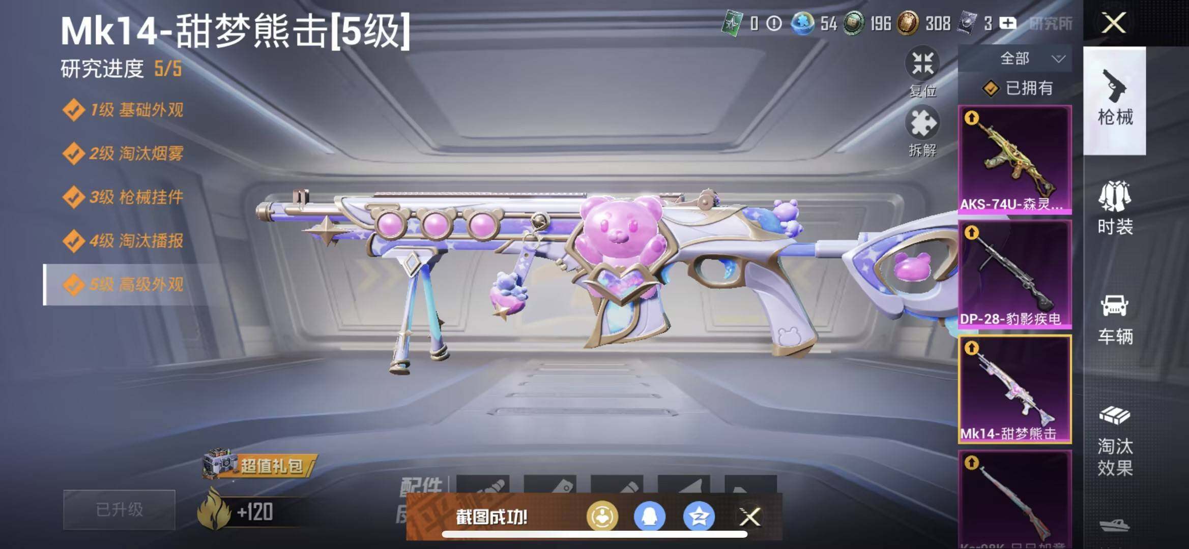 【粉色枪皮等级】:SCAR-L-梦幻火箭(五级),SCAR-L-纯梦嫁纱(七级),AKS-74U-森
