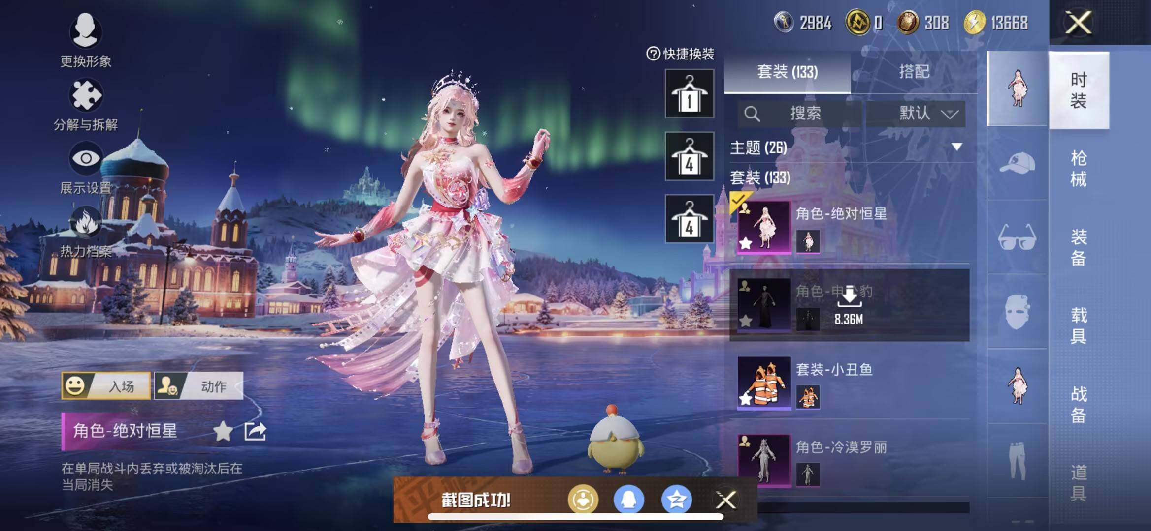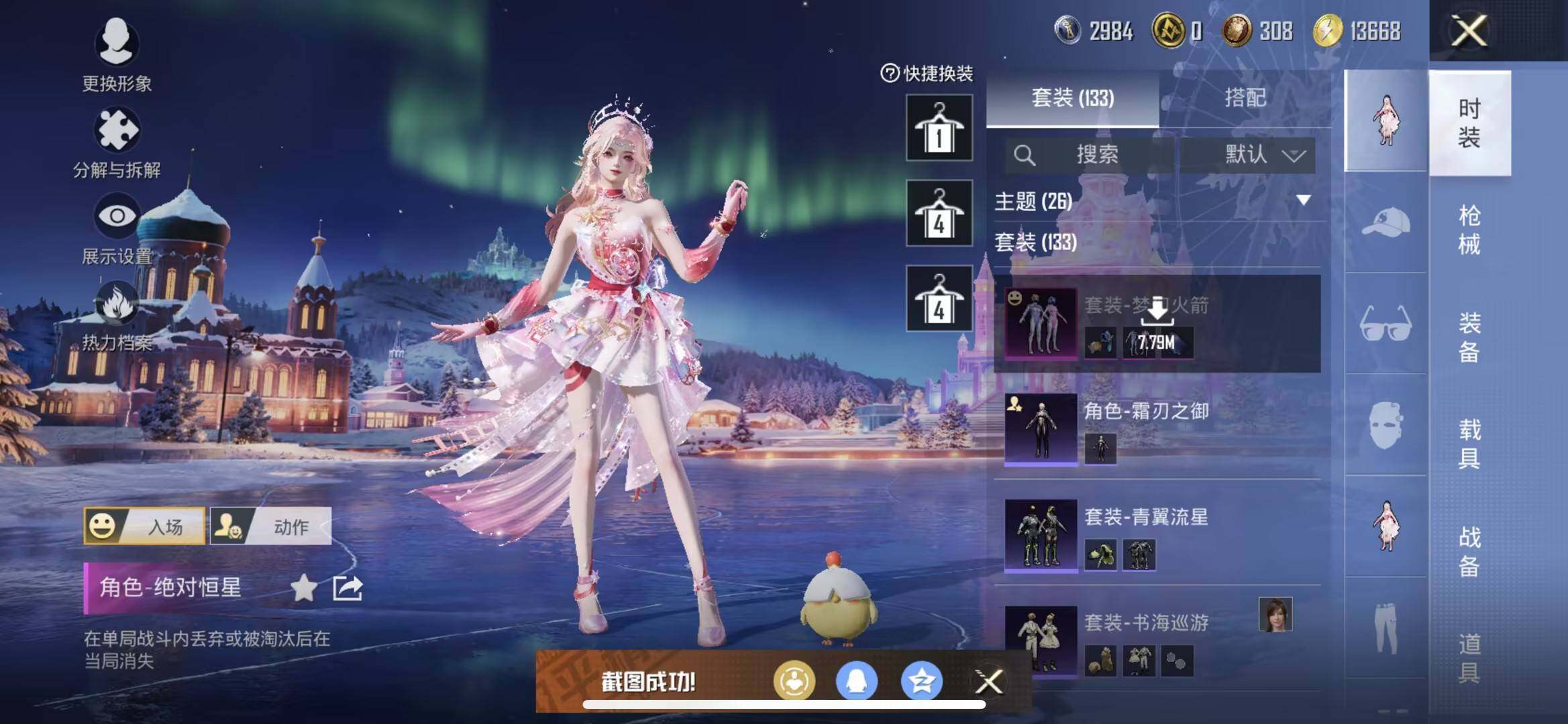 【粉色套装】:角色-绝对恒星,粉装-梦幻火箭,角色-冷漠罗丽
