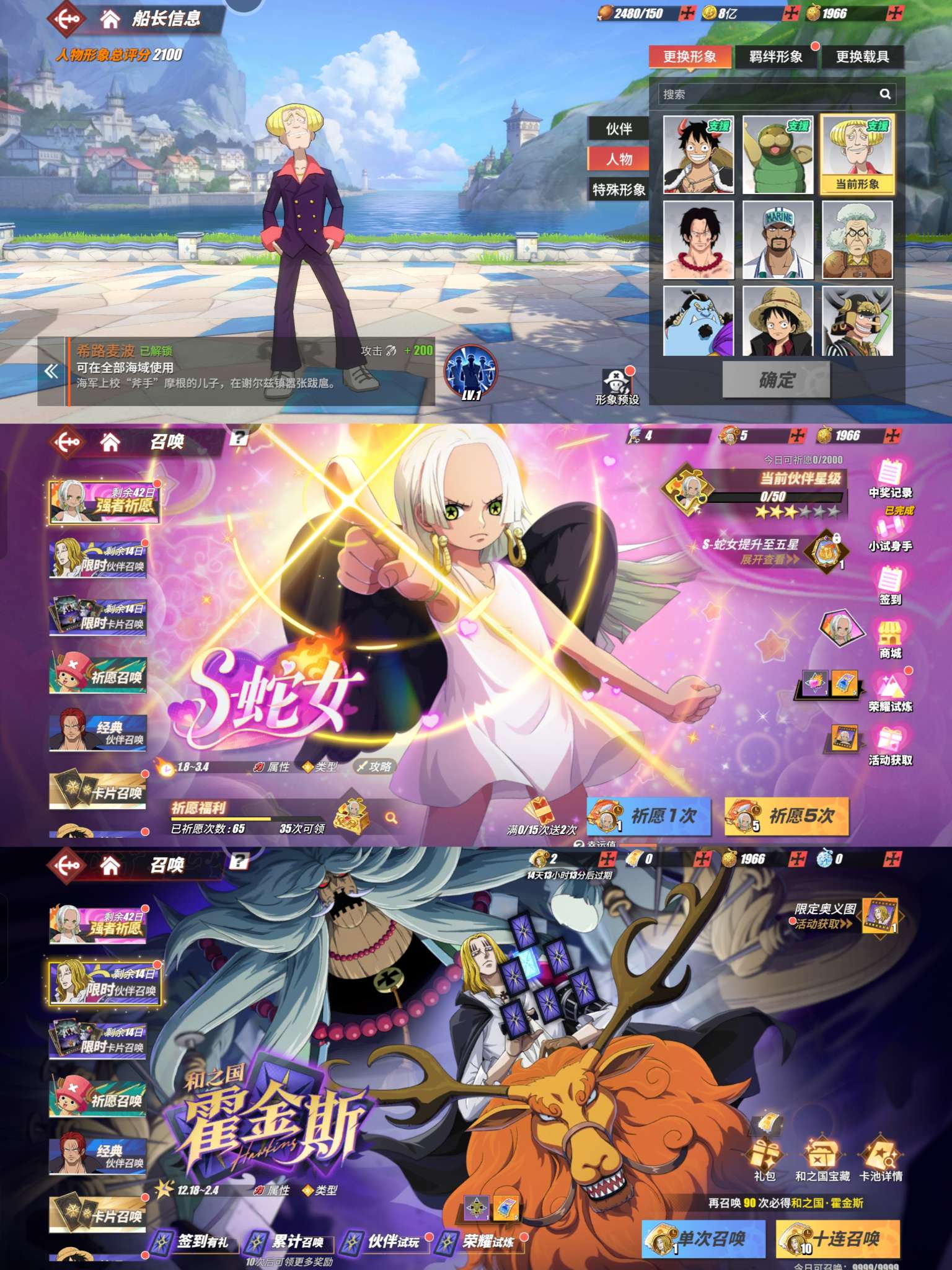 竞技场55传奇7强者,卡二,青雷青白,四皇黑胡子,炎帝萨博,小女帝,竞技场有新鹰眼,3个98友情技,