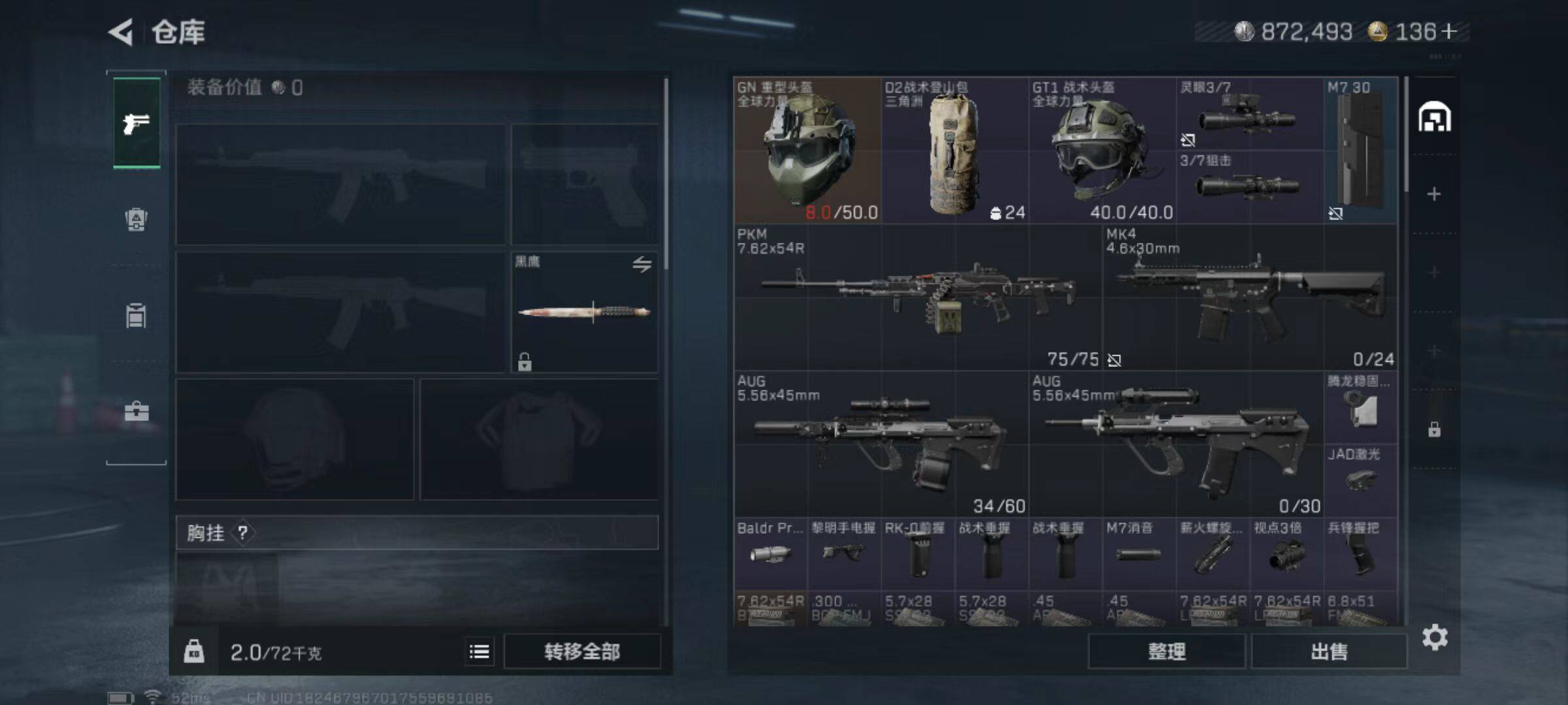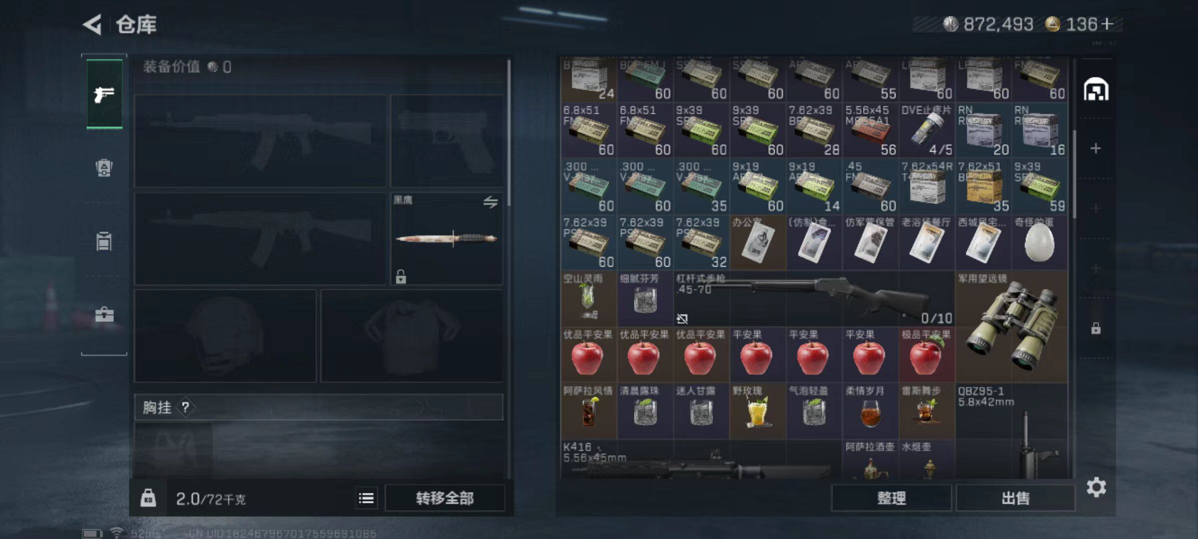 总资产(M):8M/哈夫币(K):872K/哈夫币(K):872K/传说枪皮数
