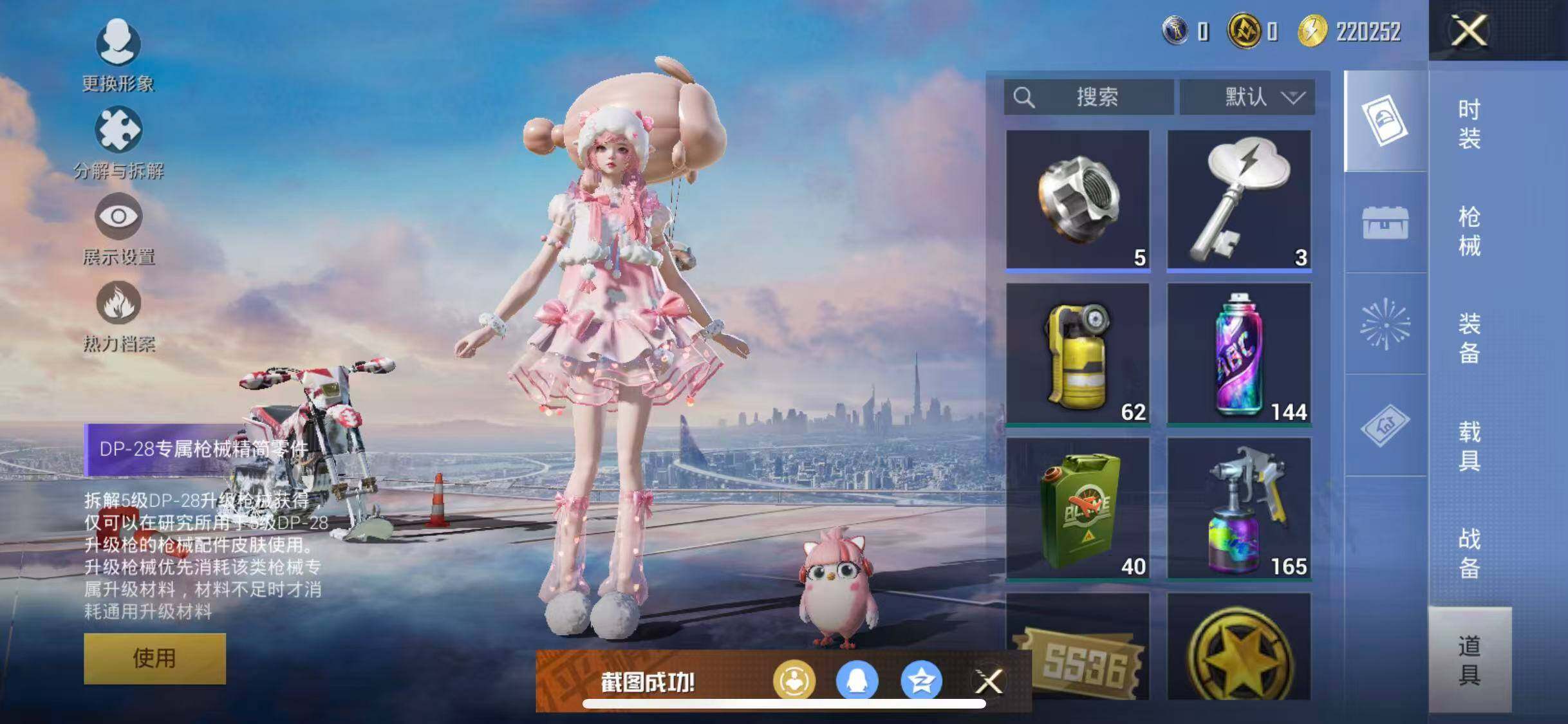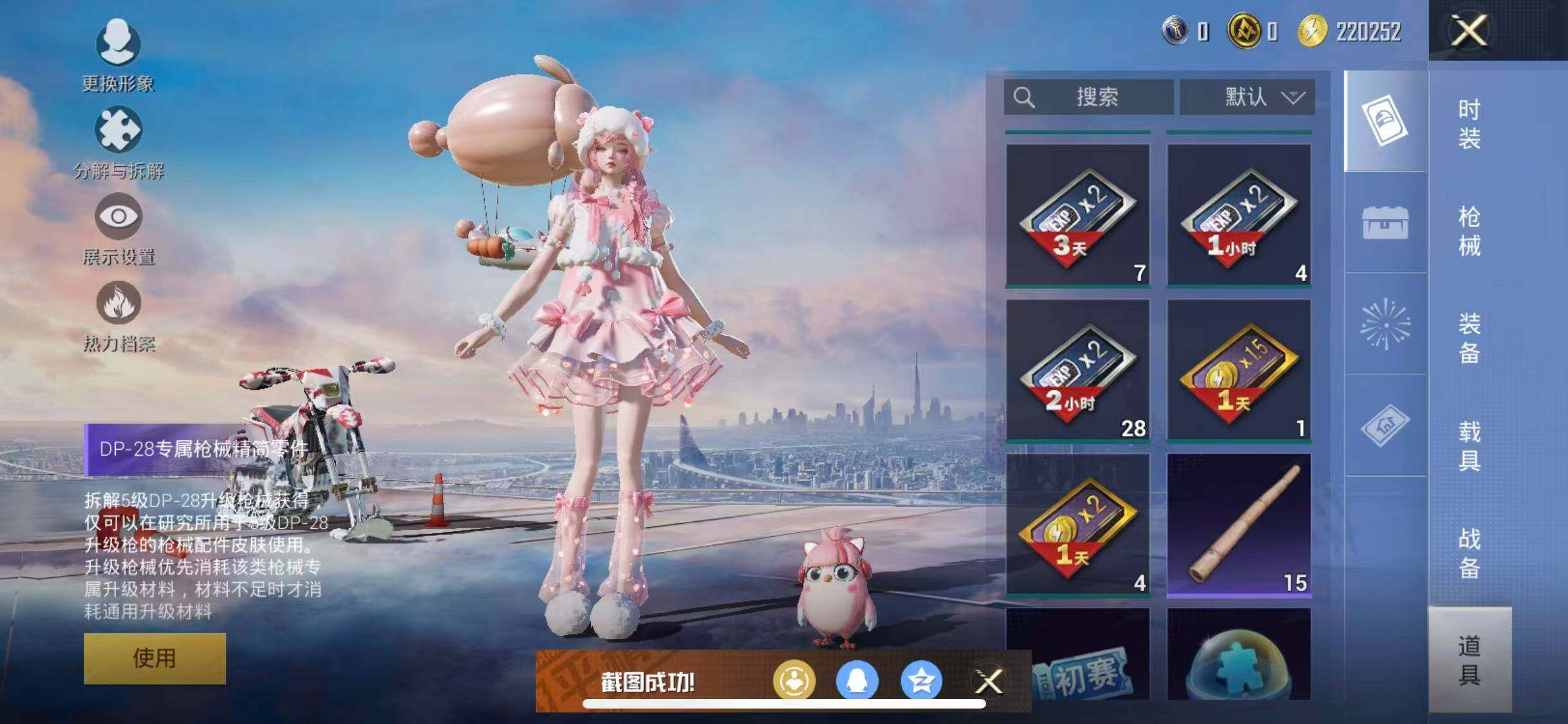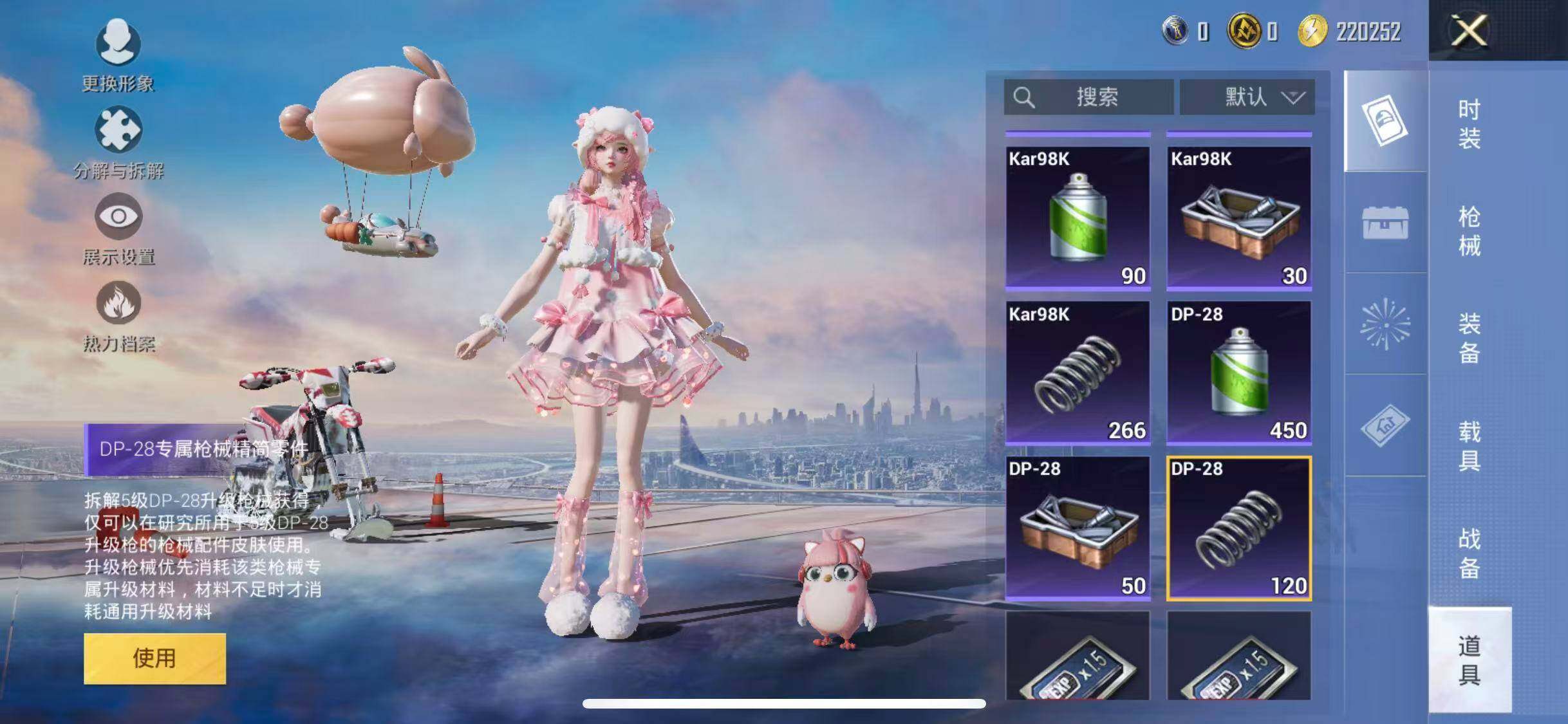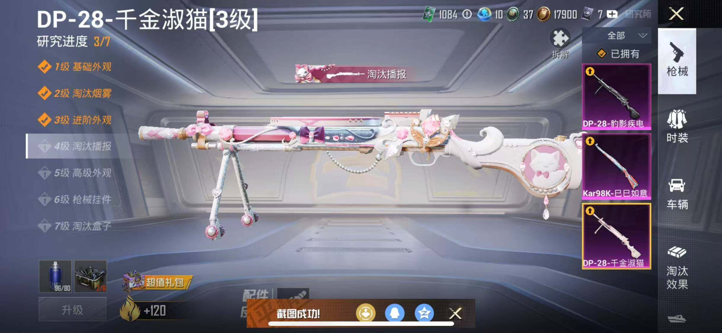 【粉色枪皮等级】:Kar98K-巳巳如意(五级),DP-28-千金淑猫(三级),DP-28-豹影疾电(五级)