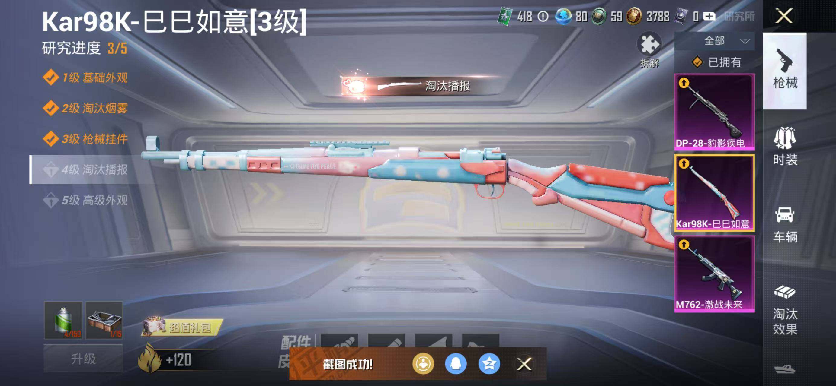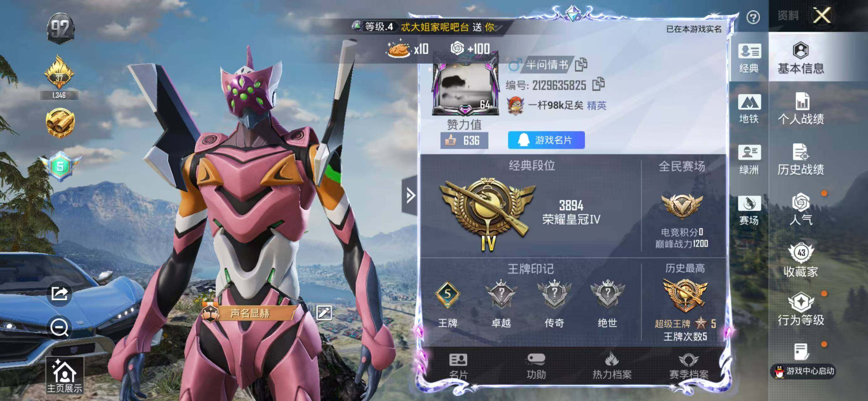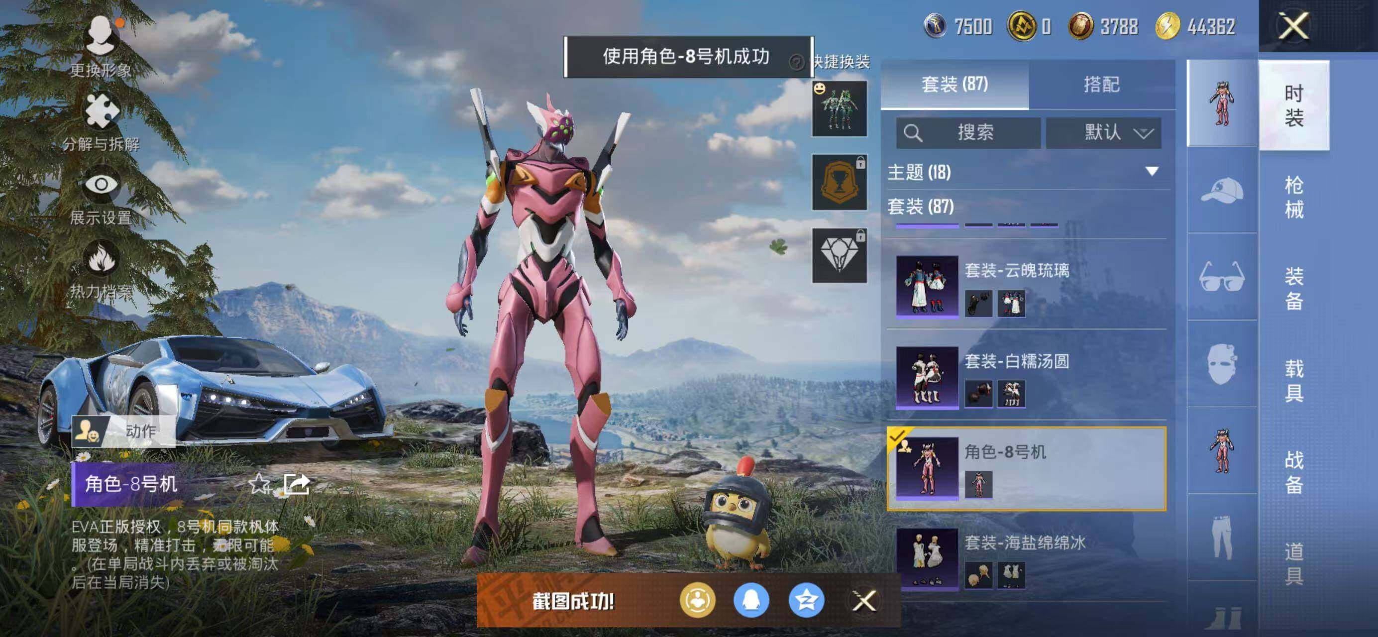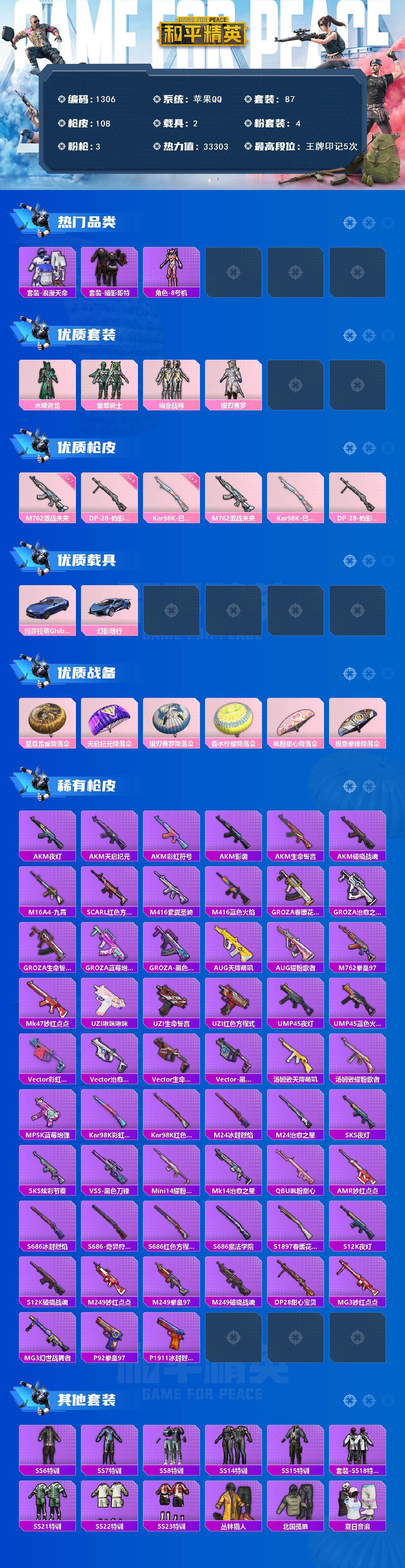 苹果 手Q-4粉装-3特效枪-2载具-1粉色飞行器-33303热力值-5王牌印记-87套装-108枪皮