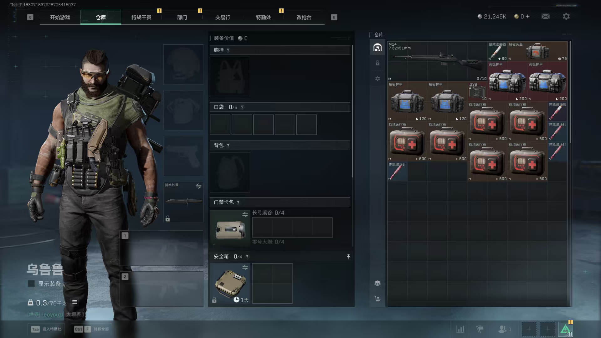 三角洲30级端游账号2100w哈弗币+威龙乌鲁鲁+10AWM+两金甲修+两红甲修+3*3体验卡一天。