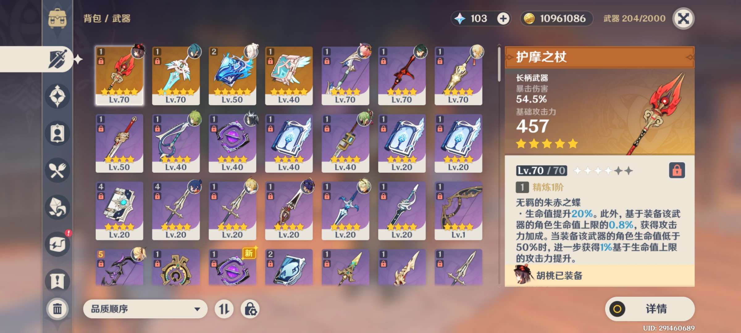 护摩胡桃 钟离 精二龙王专武 希诺宁多五星