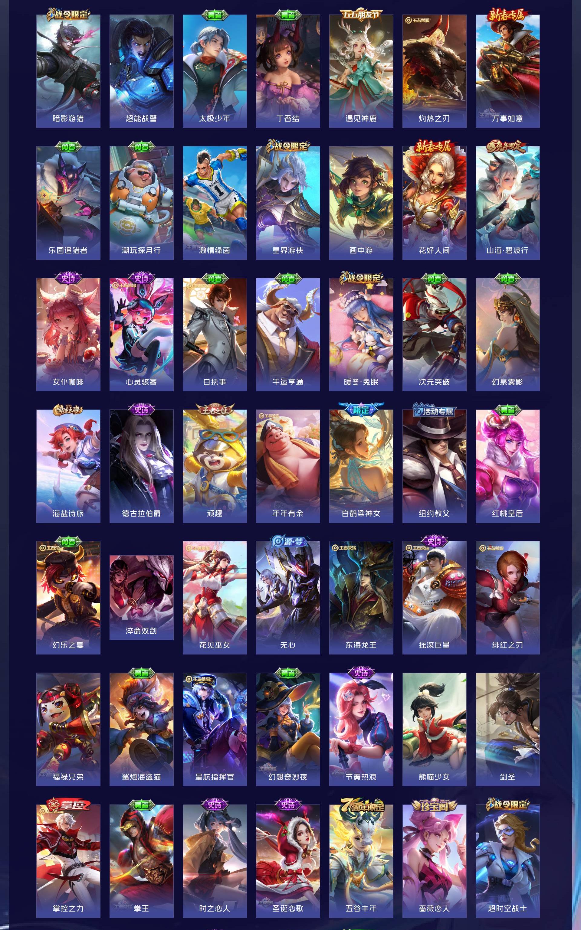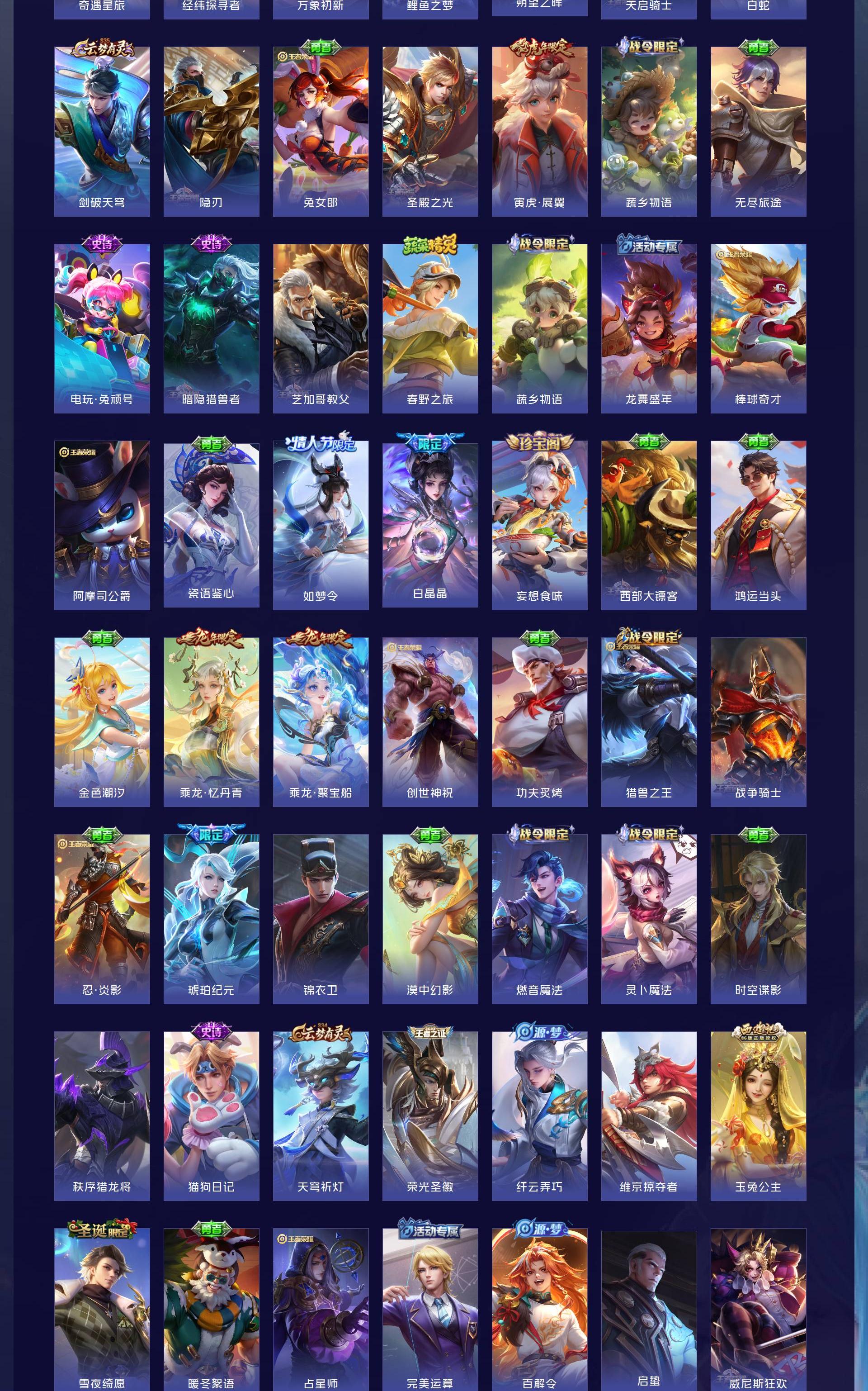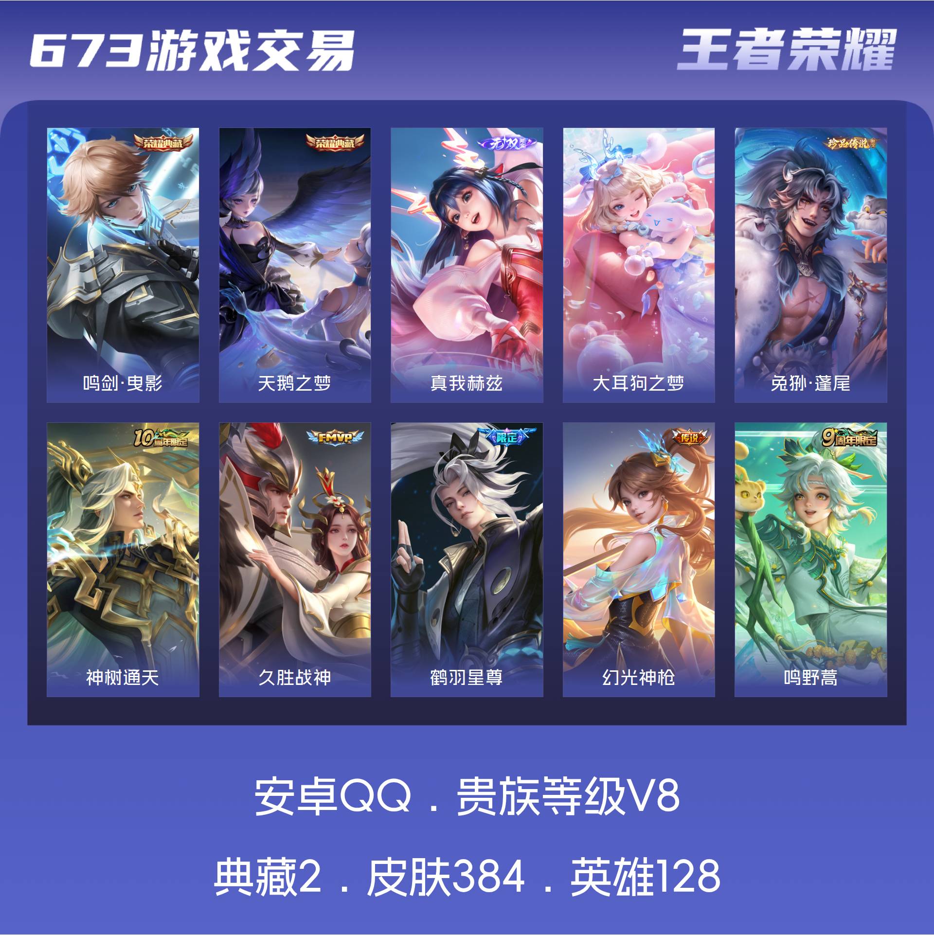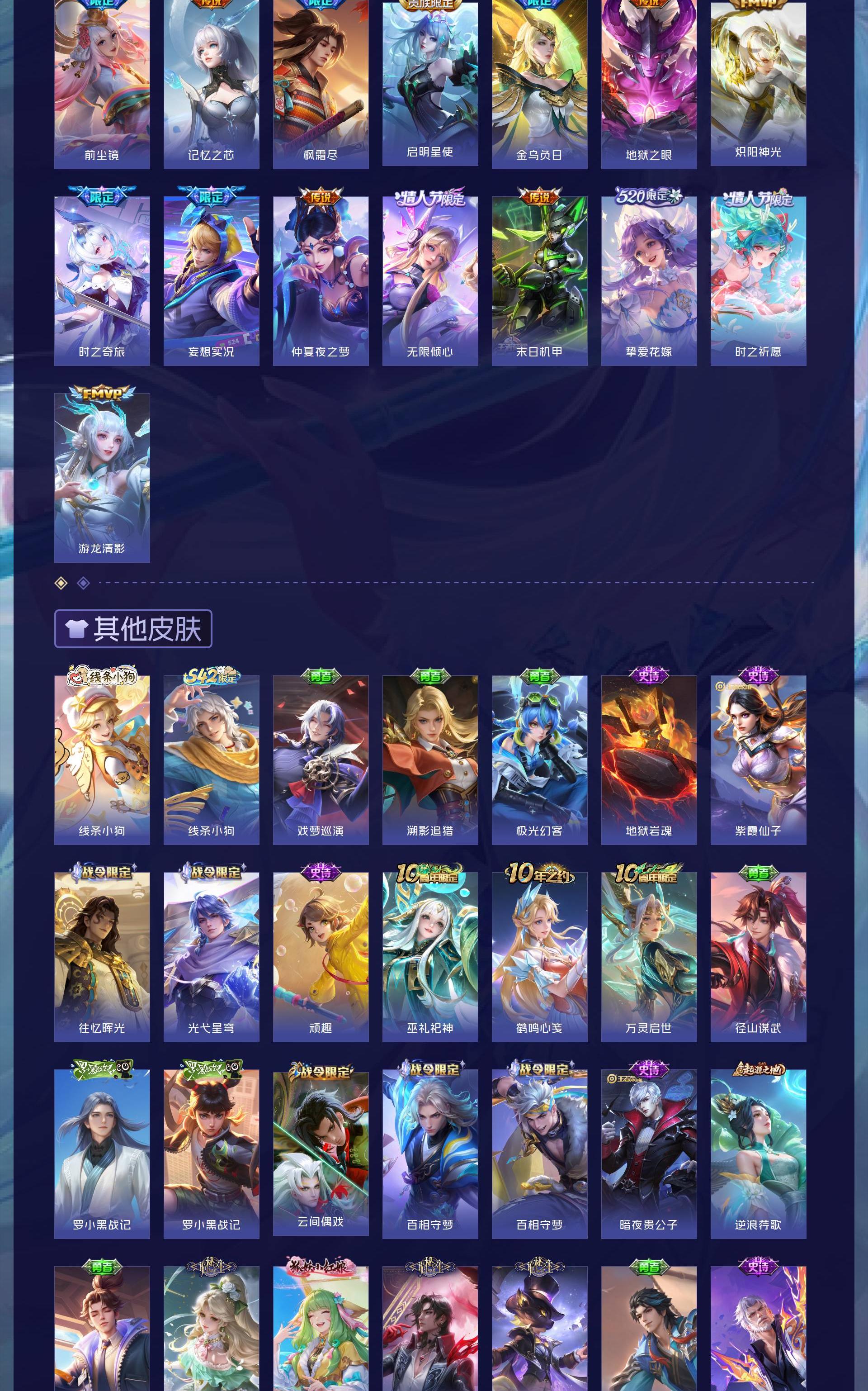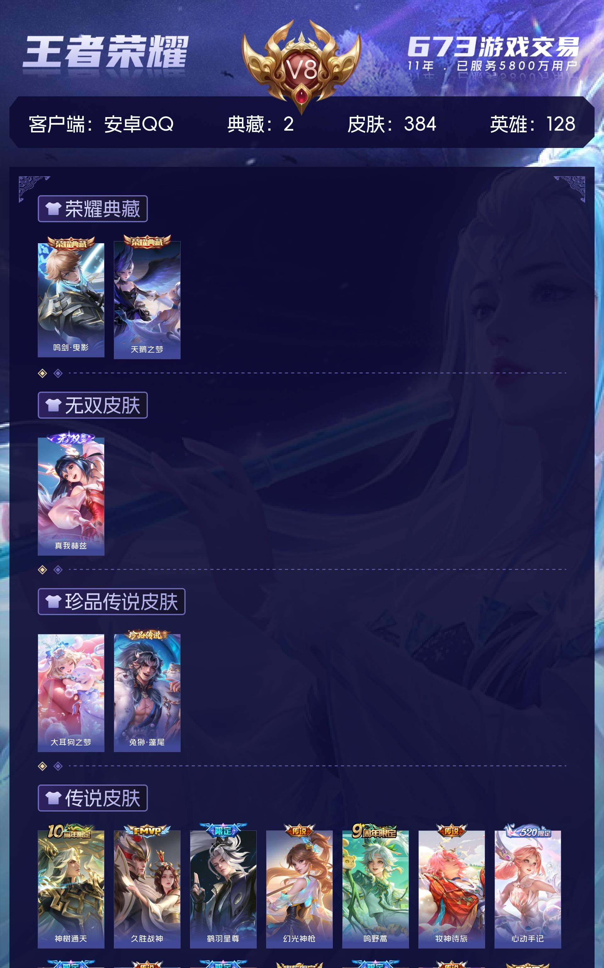 V8 皮肤384 英雄128 永恒钻石 荣耀典藏2 无双皮肤1 珍品传说2 传说22 其他皮肤363