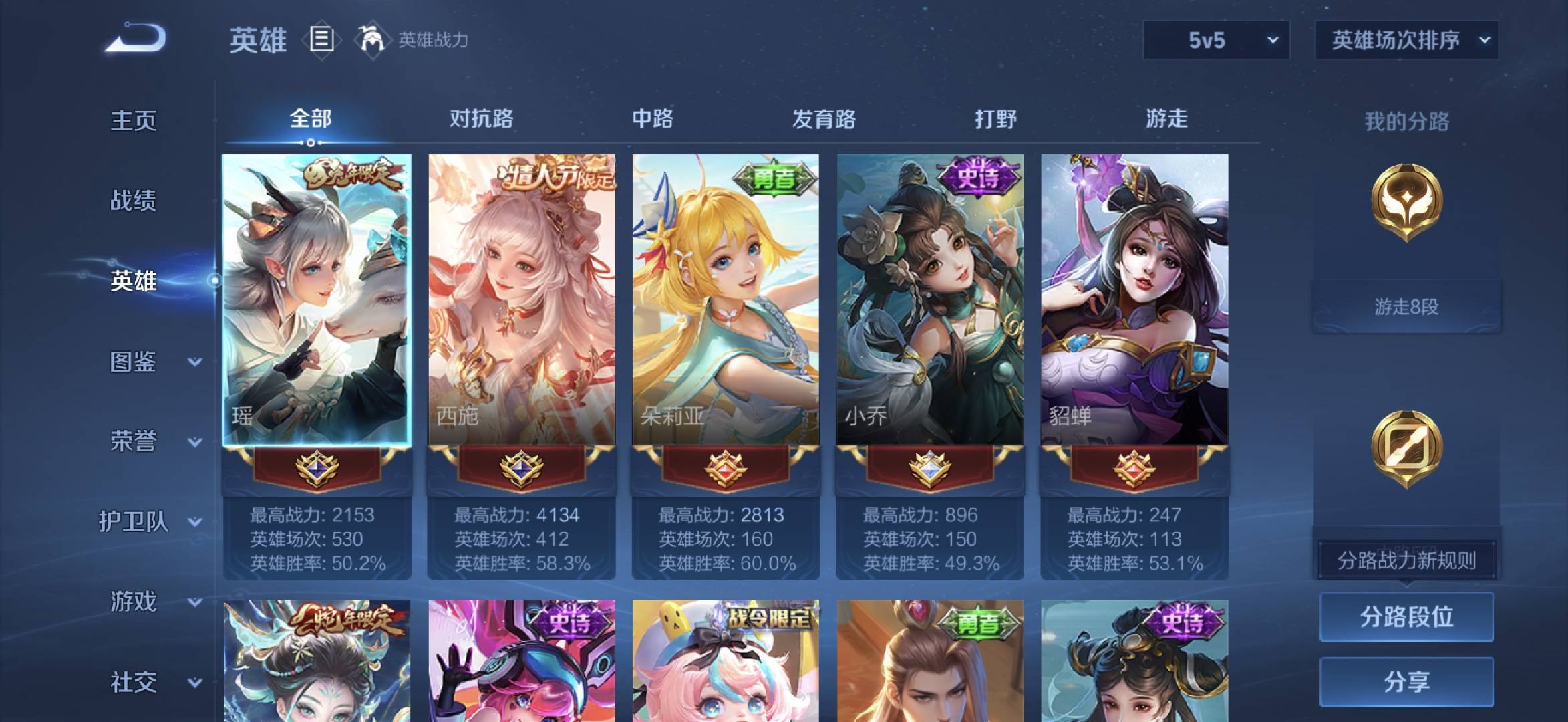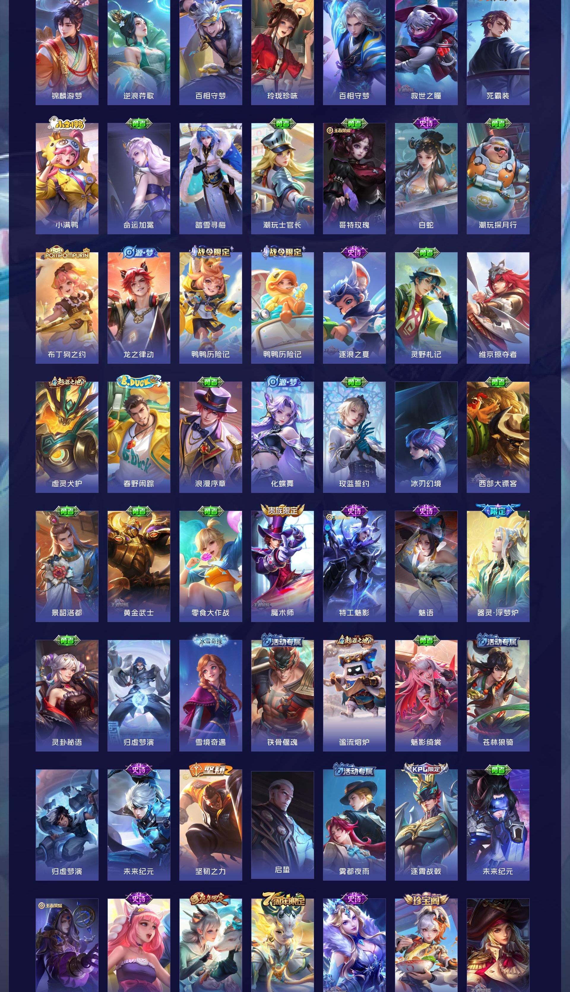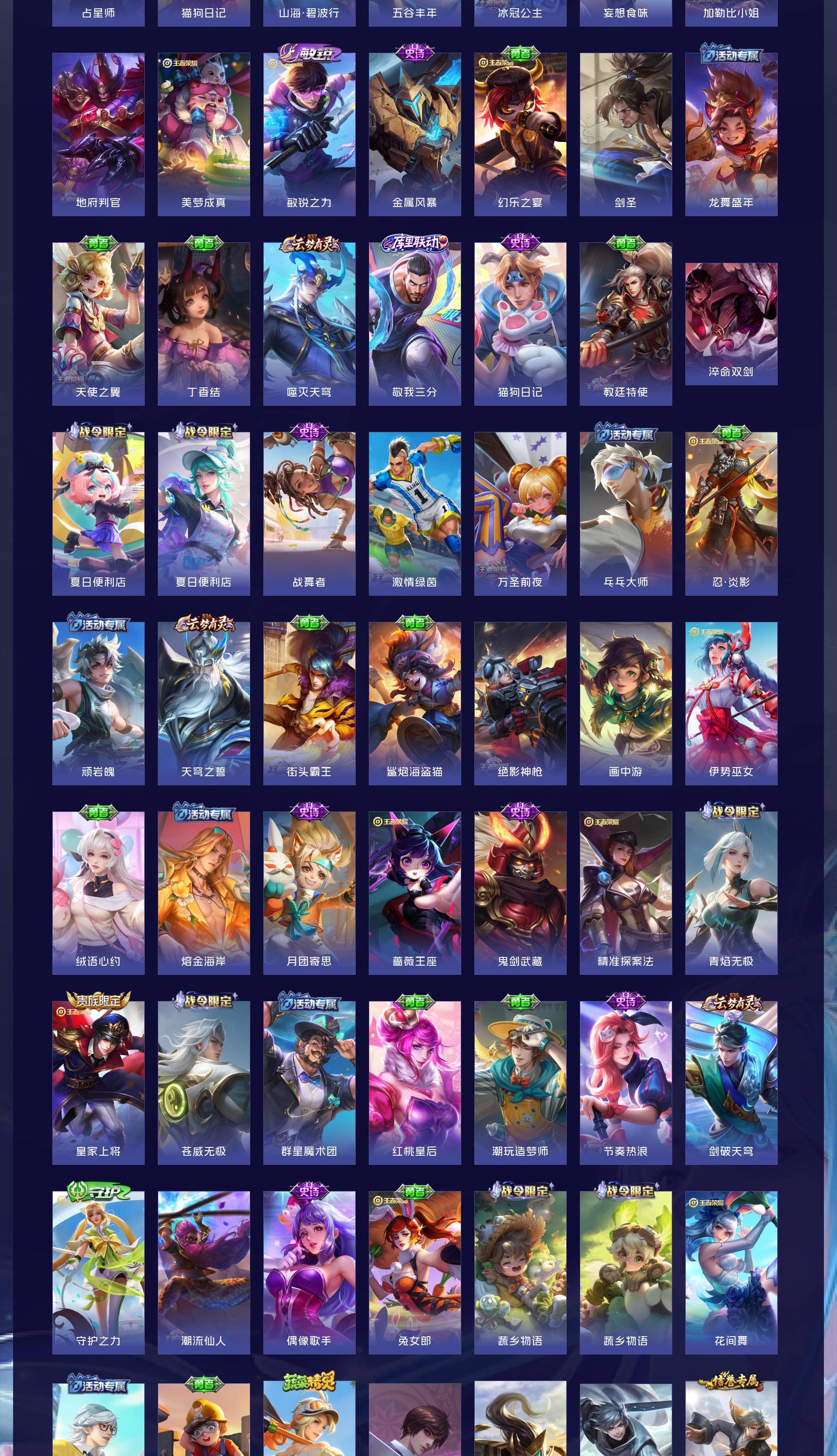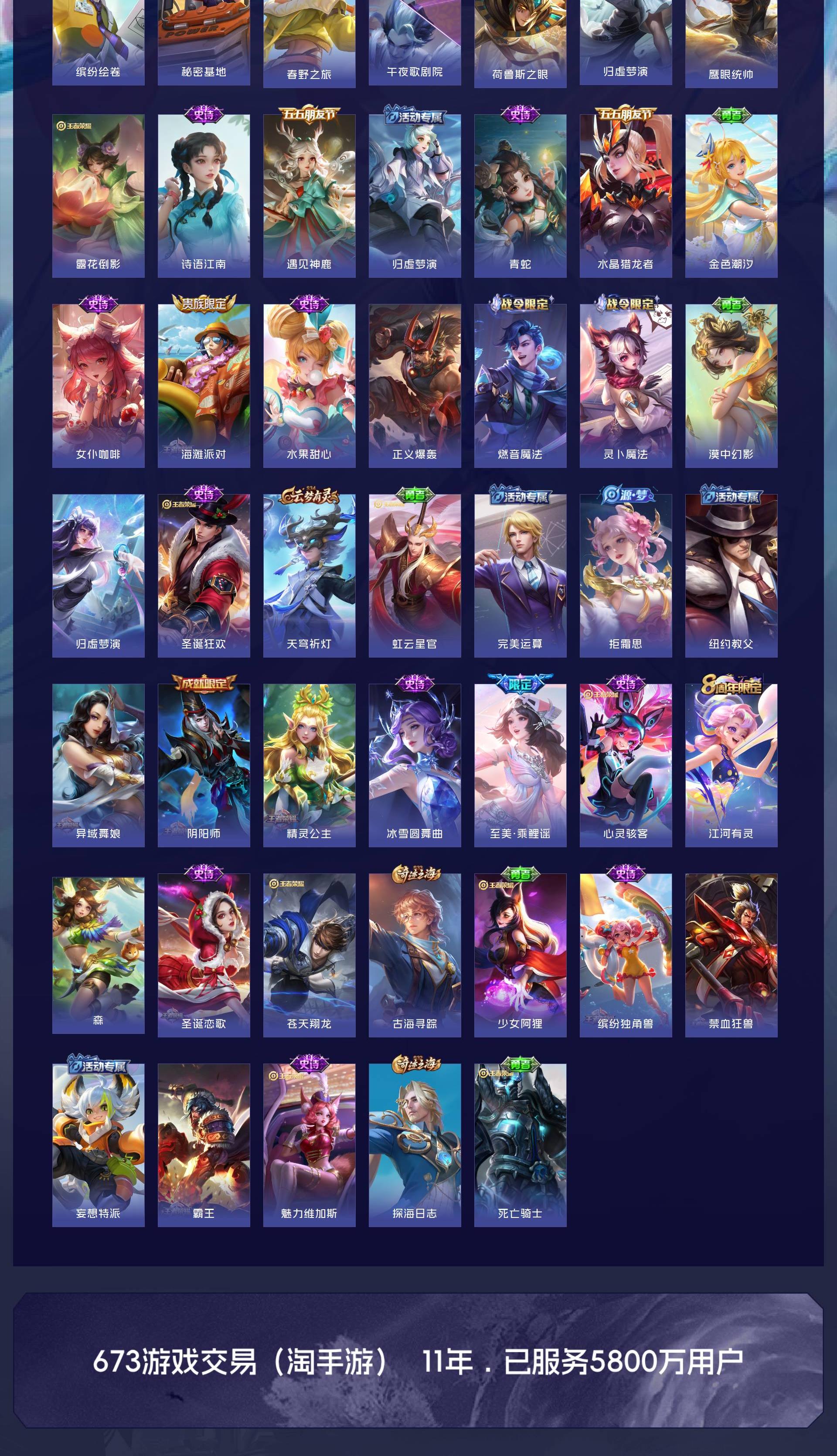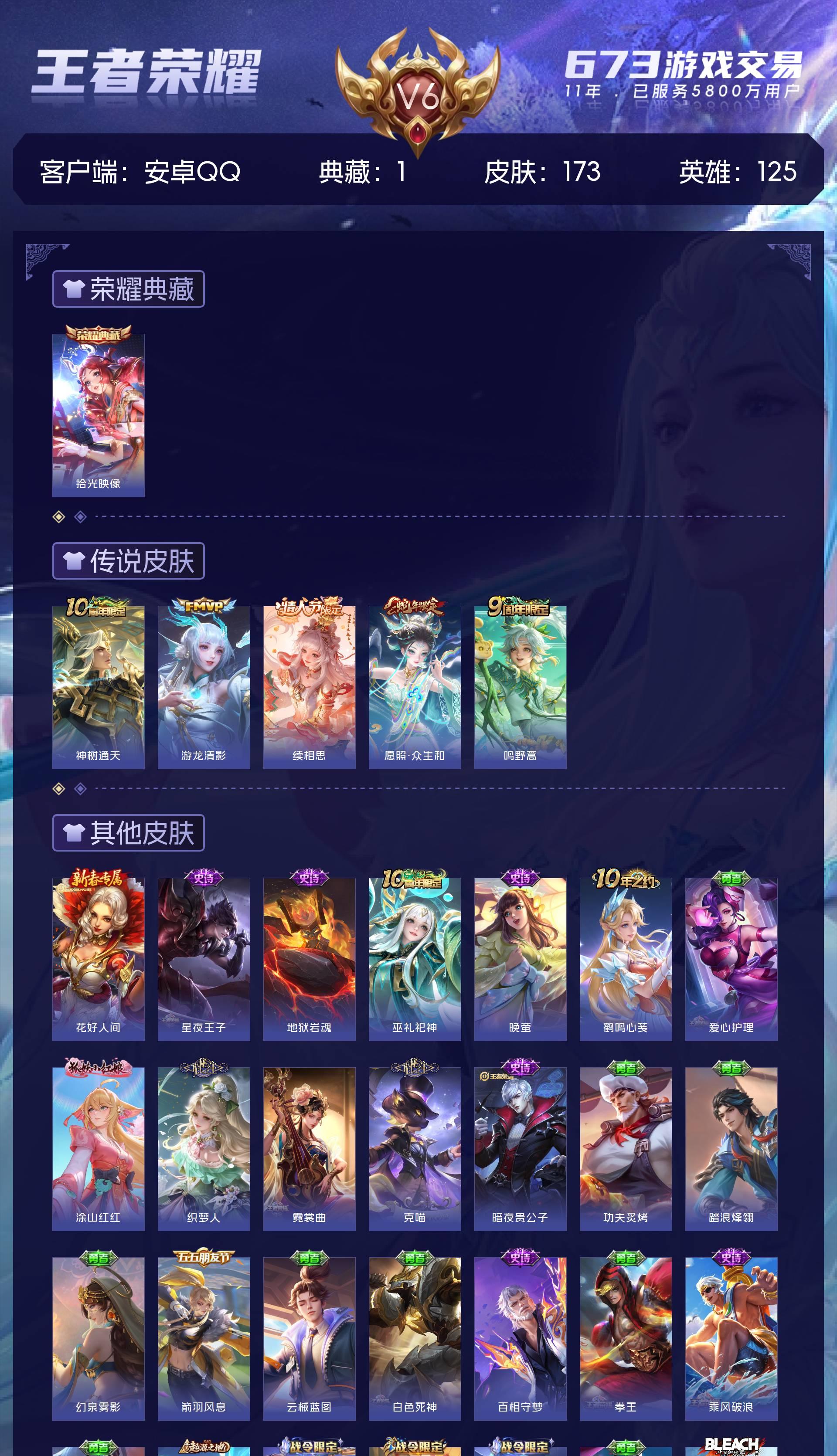 V6 皮肤173 英雄125 尊贵铂金 荣耀典藏1 传说5 其他皮肤173