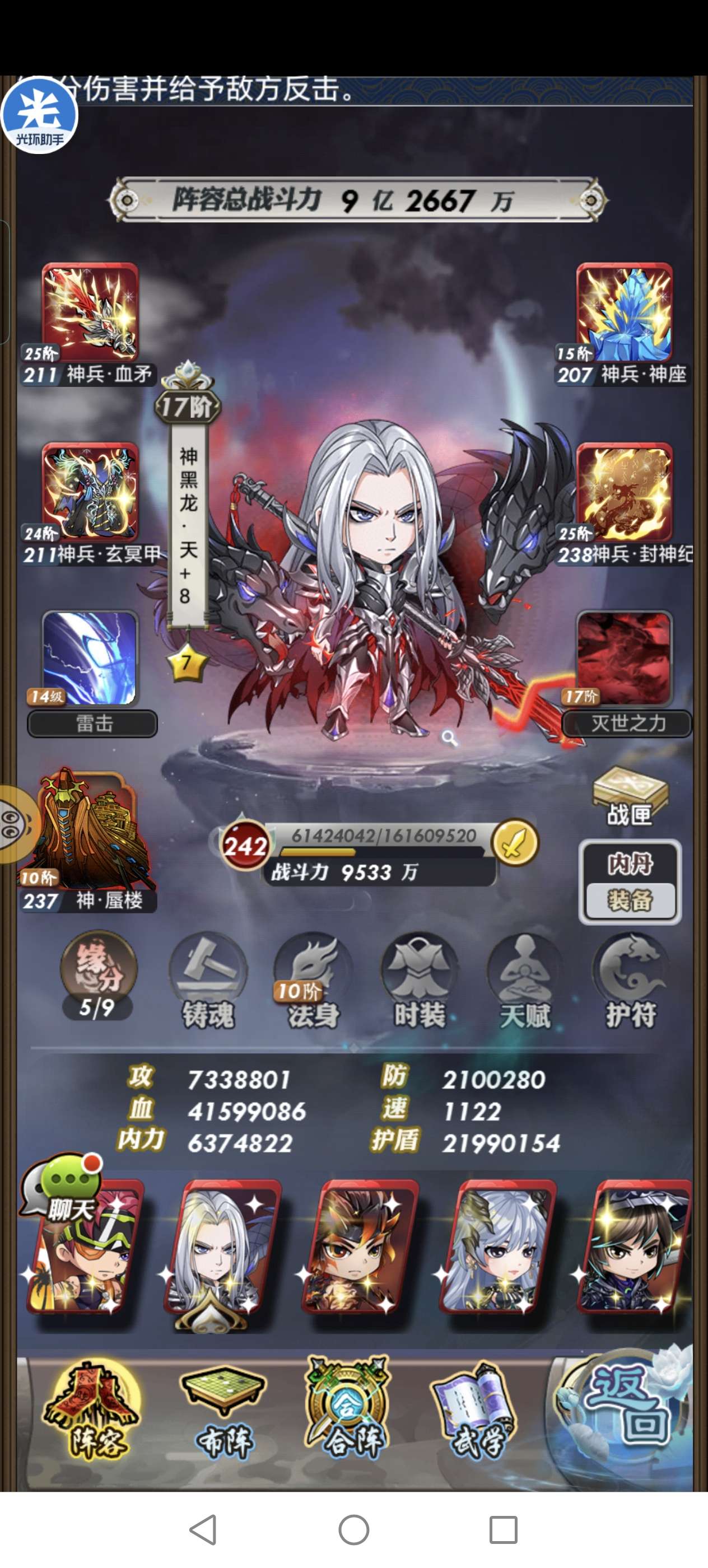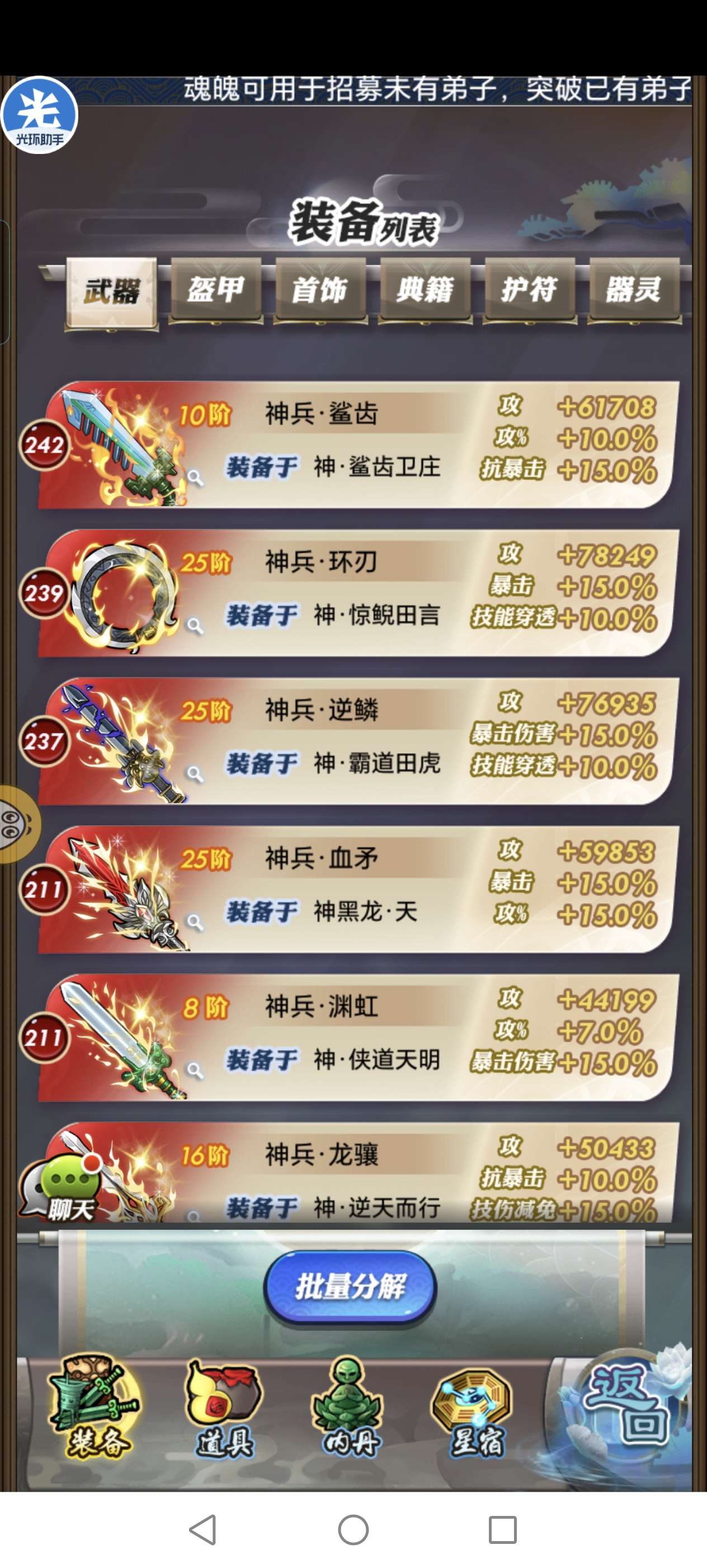 剑之尊者,鬼谷先生,5神左,2神南华,3神吕,2神冥,1神封,1神鬼谷,神兵装备一堆18武器11铠甲14首饰14神书,15神丹满金丹14万元宝11套战纹卫庄3050抽差两百抽墨门称号9套598阵下韩非小小梦章翰高渐离三娘刘季铁锤全皮,全六星战文红星宿,13黑龙加新灵宝!月卡长,材料月卡拉满!
