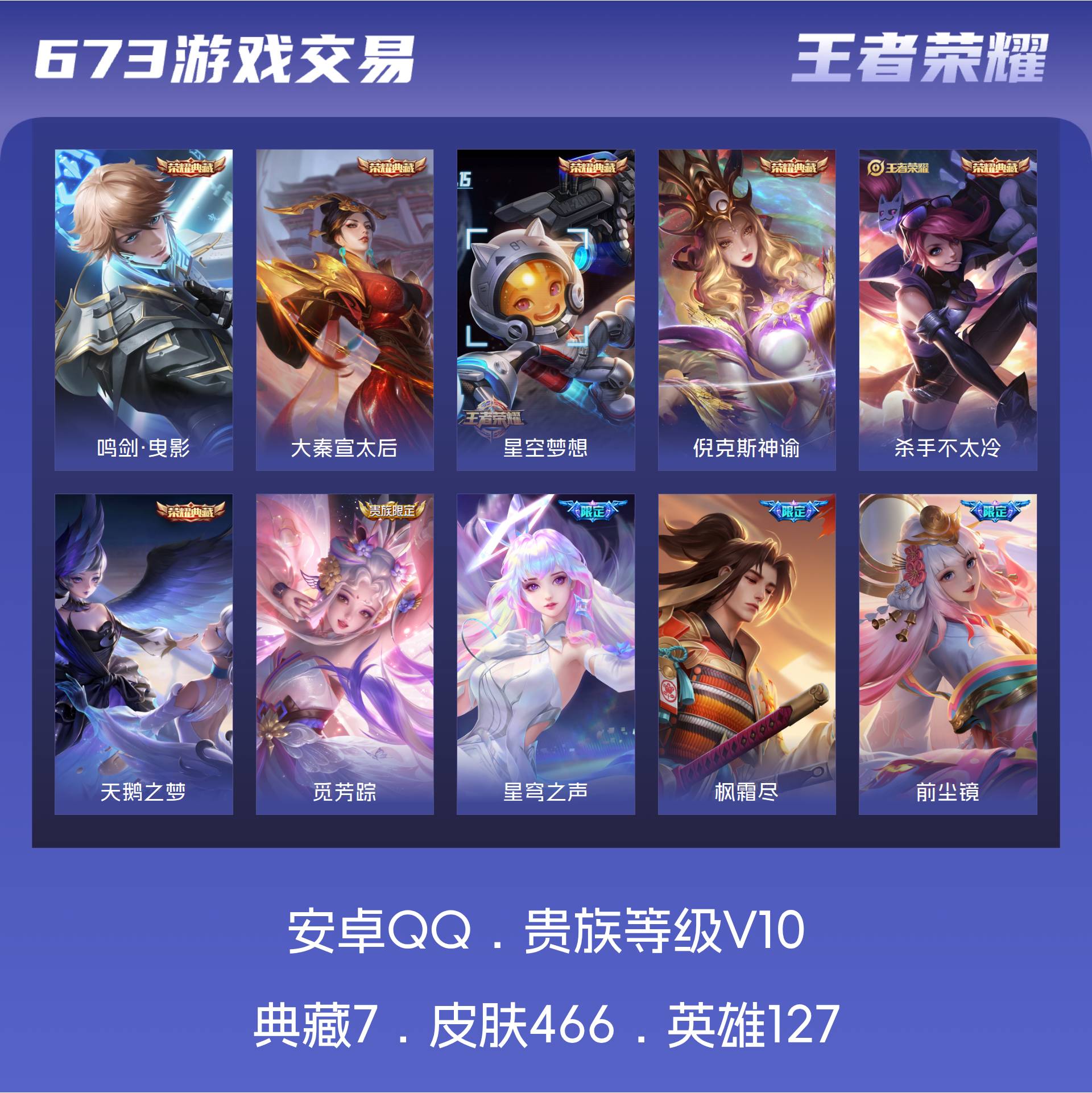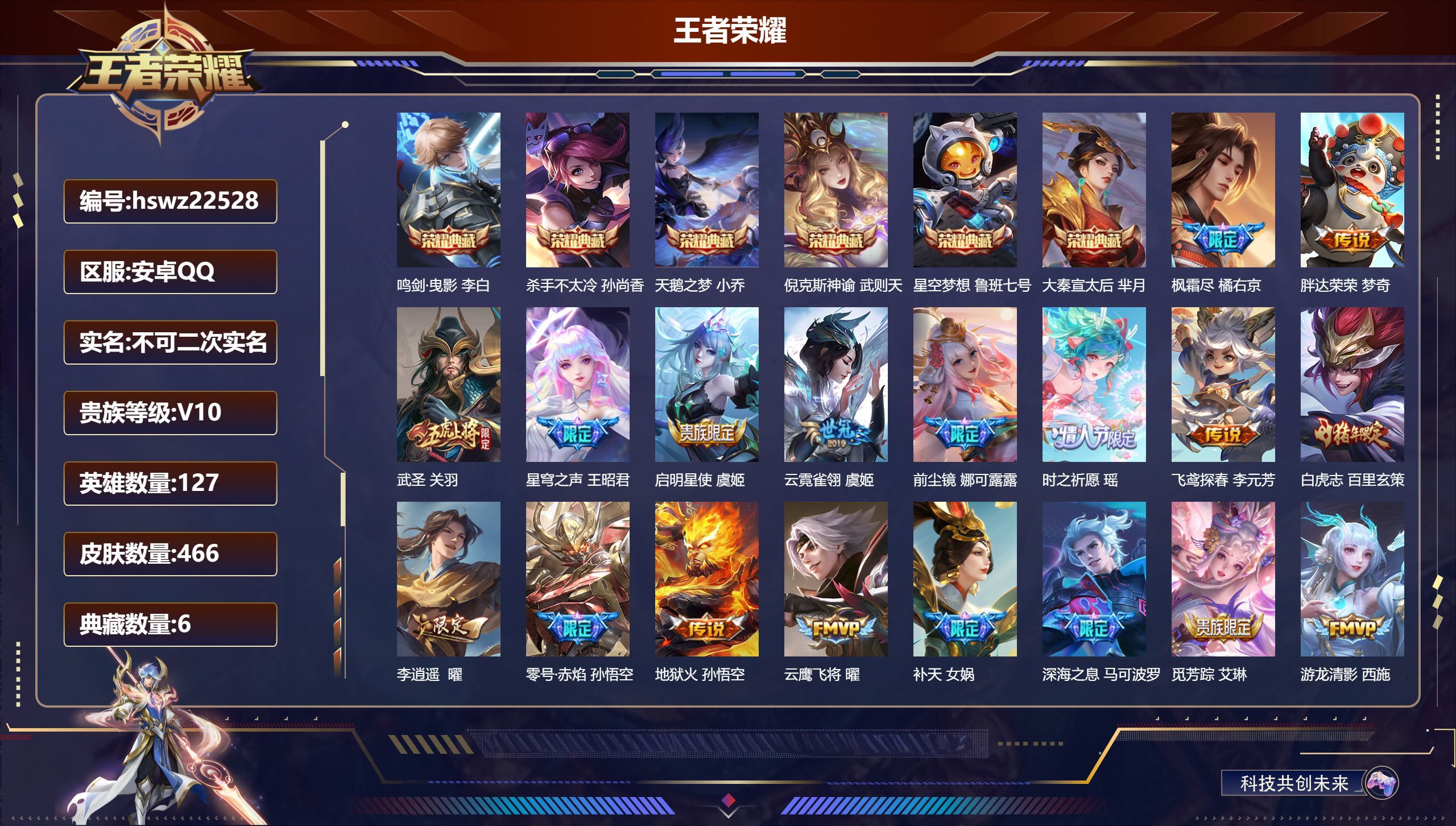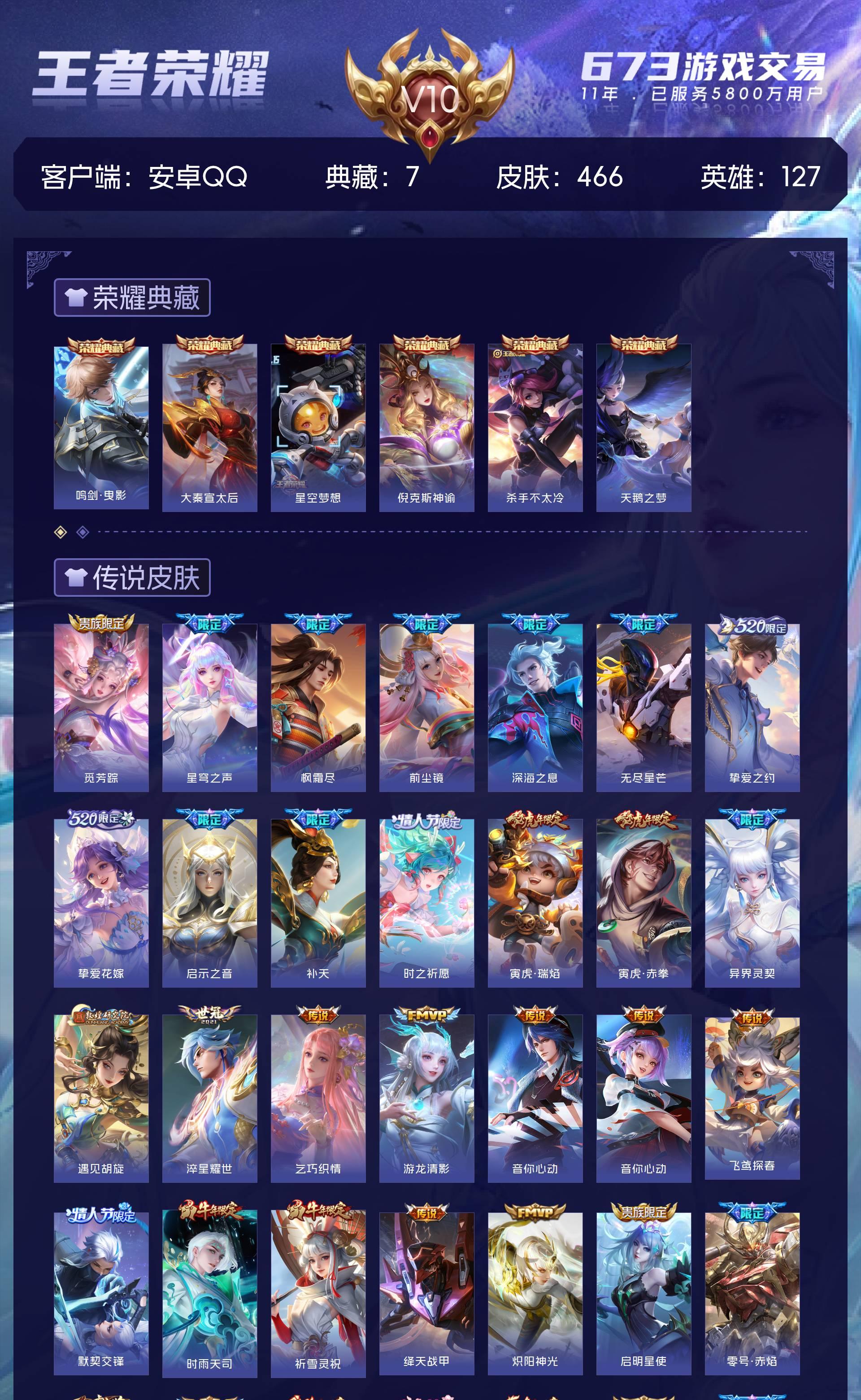 安卓QQ/永恒钻石/466皮肤/127英雄/6典藏/0珍品无双/0无双/0珍品传说/53传说/165