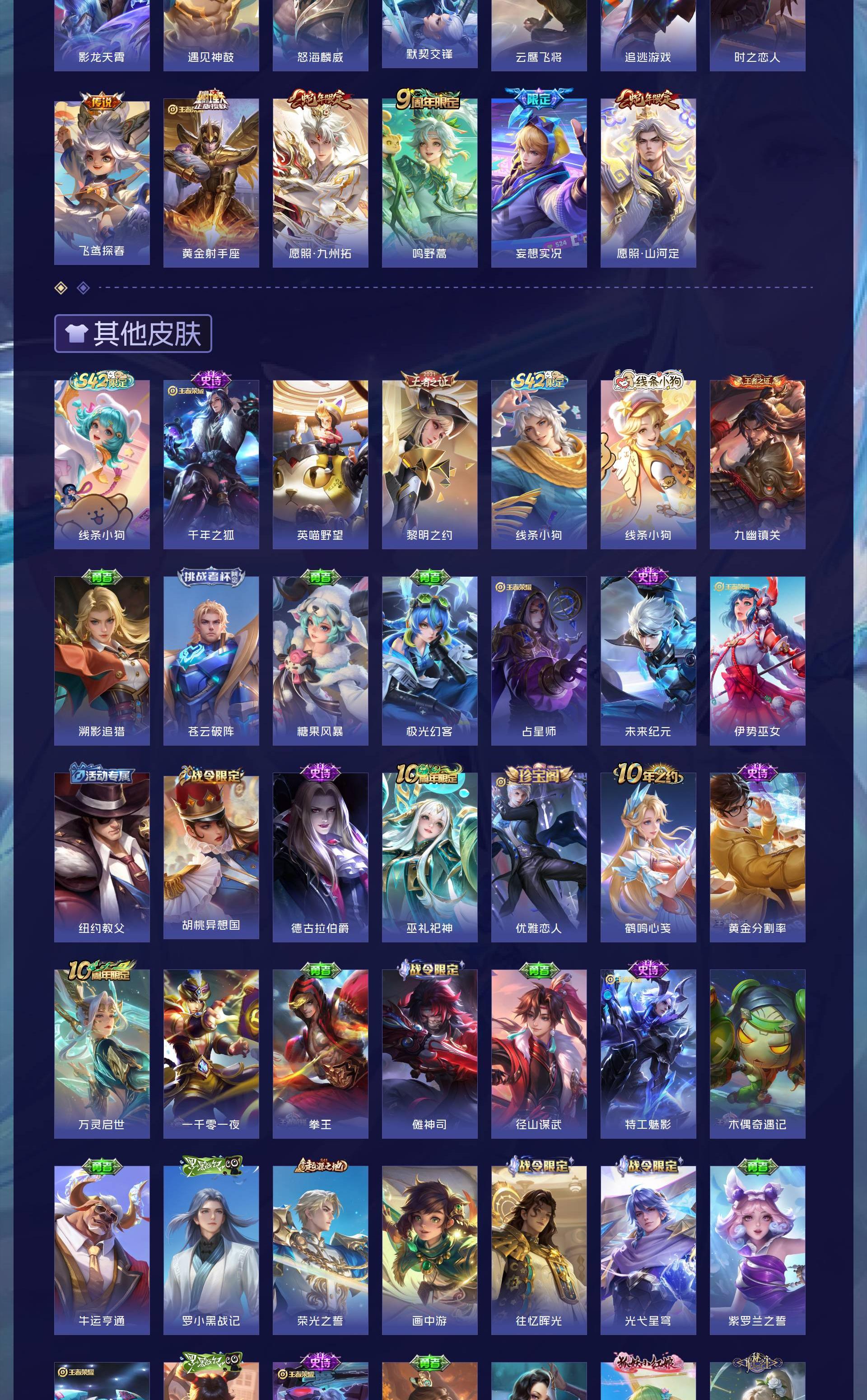 V9 皮肤405 英雄127 绝世王者 荣耀典藏3 无双皮肤1 传说27 其他皮肤377