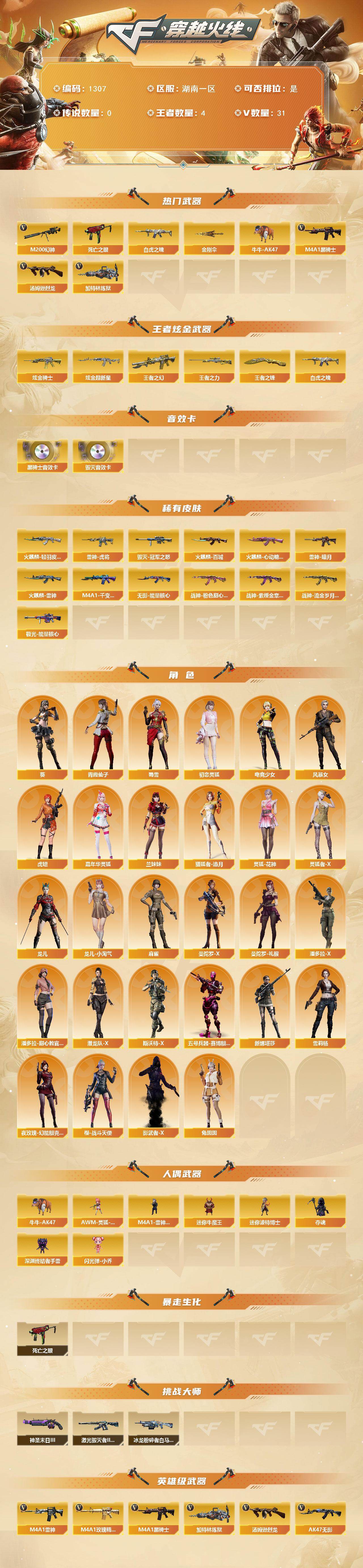 湖南一区-31V-4王者-2炫金【热门武器】:M200-幻神,死亡之眼,白虎