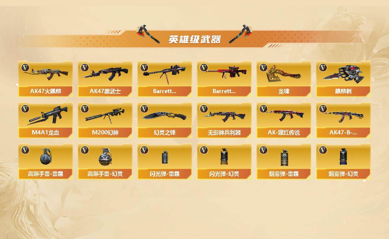 【热门武器】:M200-幻神,死亡之眼,白虎之魄,牛牛-AK47,M4A1-黑骑士*2,汤姆逊-烈龙,加特林-炼狱,金刚伞