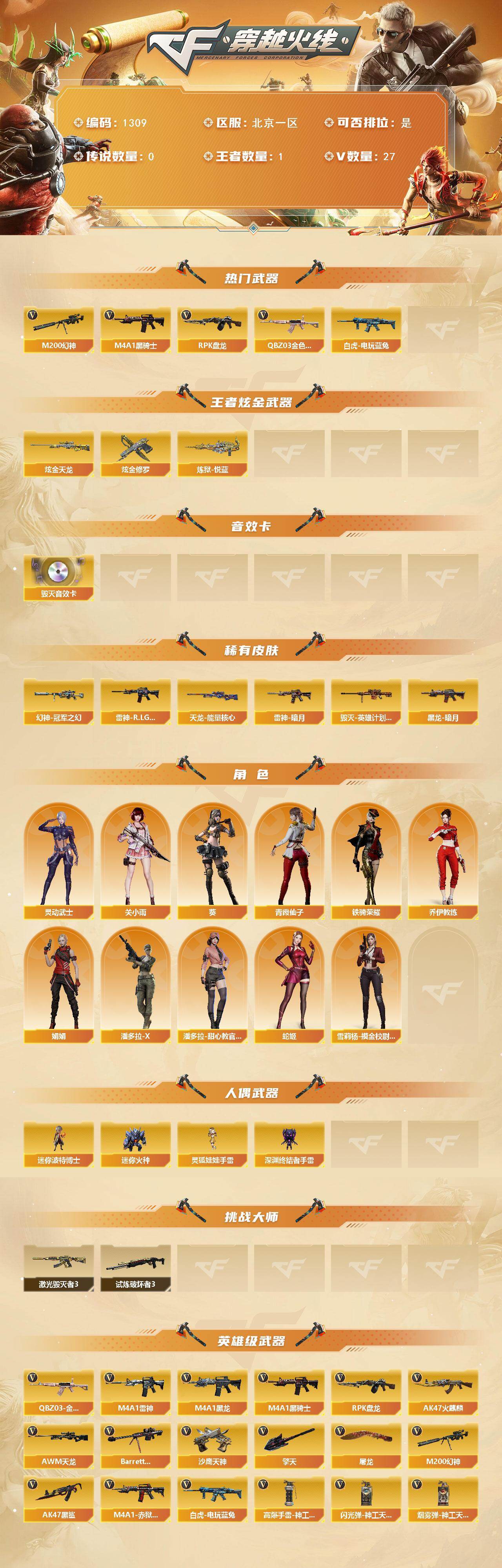 北京一区-27V-1王者-2炫金【热门武器】:QBZ03-金色蔷薇,M200