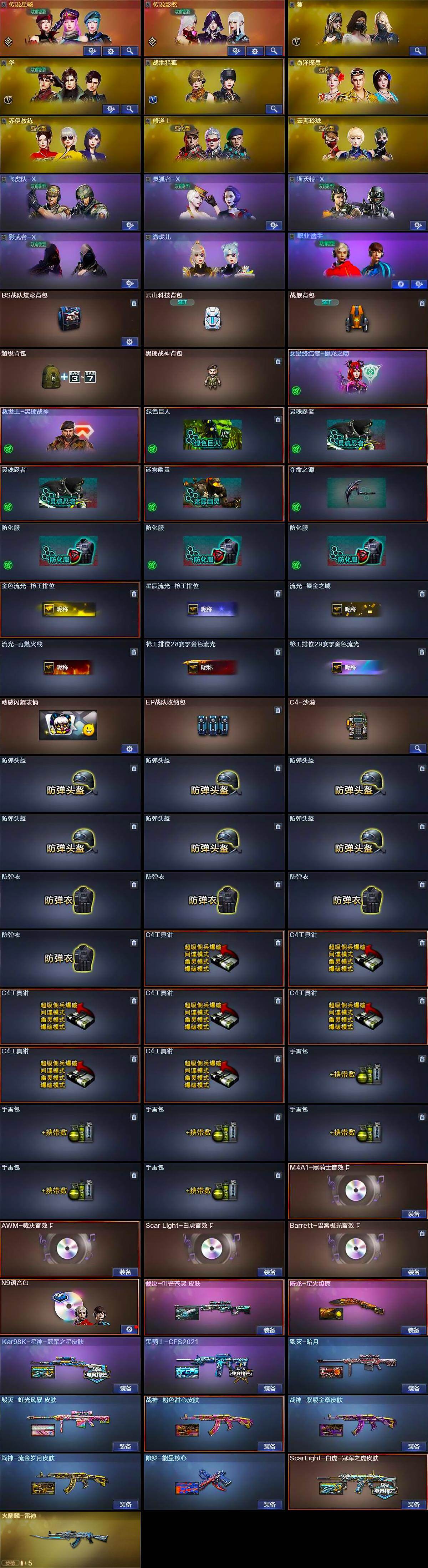 【音效卡】:M4A1-黑骑士音效卡,AWM-裁决音效卡,Scar Light-白虎音效卡,N9语音包,Barre
