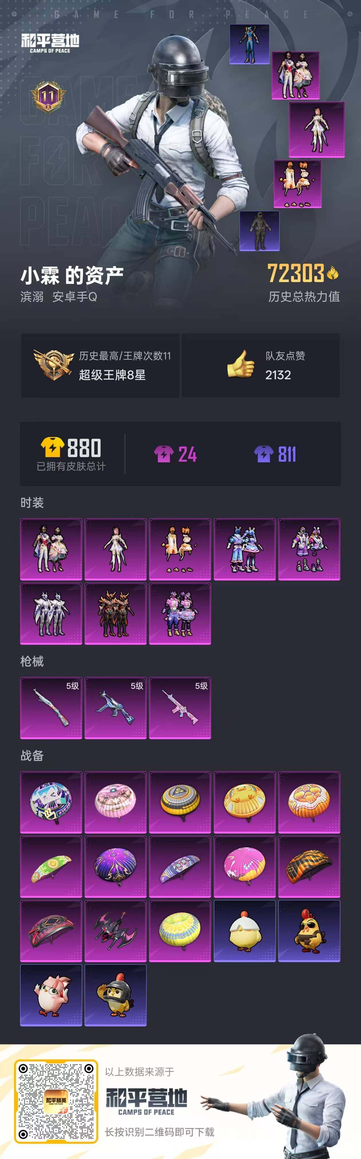 【特价出售/店主推荐】 地铁满天赋 安卓 手Q-8粉装-3特效枪-0载具-1粉色飞行器-72303热力值-11王牌印记-176套装-236枪皮【热门品类】:套装-龟仙人,角色-Mark.06【粉色套装】:粉装-流星咚咚,粉装-绚丽摇曳,粉装-闪耀律动,粉装-橘柚倾心,粉装-赤焰黑爵,粉装-紫电风暴,角色-圣堂之誓,粉装-星穹咏叹调【粉色枪皮等级】:M416-电玩时刻(五级),UMP45-量子极限