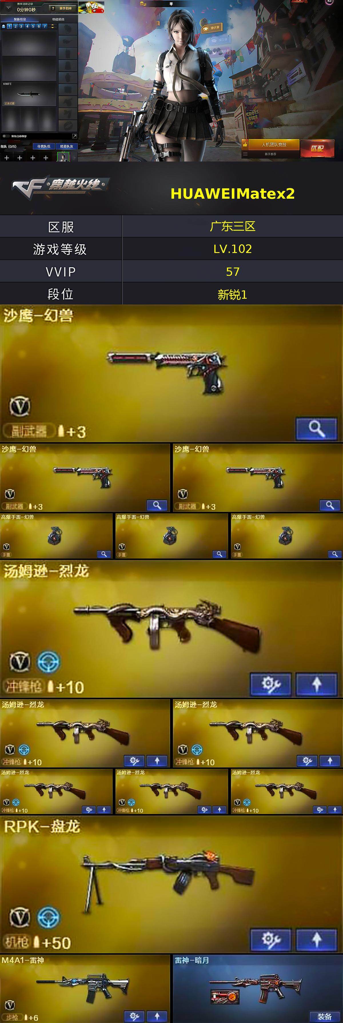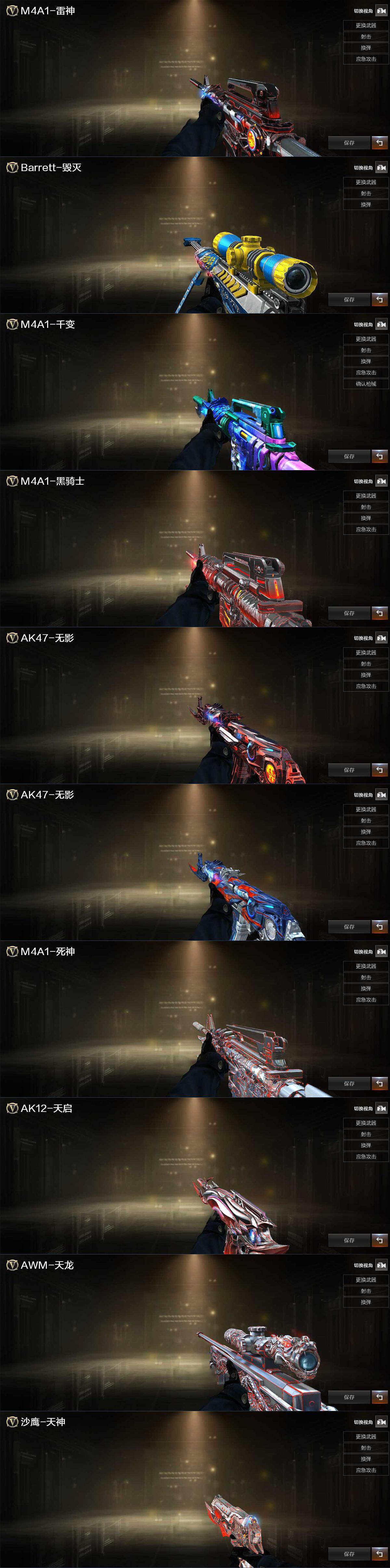 【热门武器】:死亡之眼,金色小号,M4A1-黑骑士*2,汤姆逊-烈龙*6,RPK-盘龙,加特林-炼狱,沙鹰-修罗*7,高爆手雷-幻兽*3