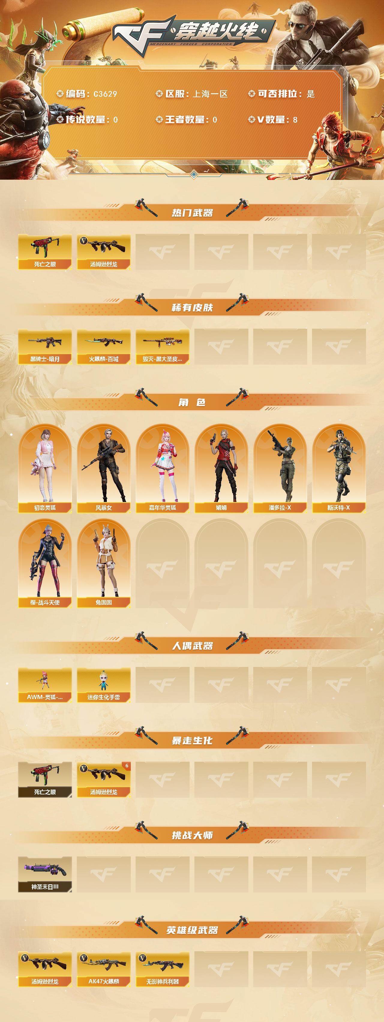 【C3629】上海一区-8V-0王者-0炫金
