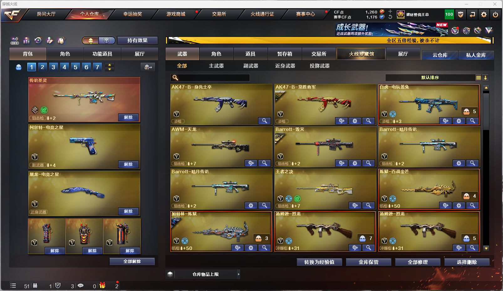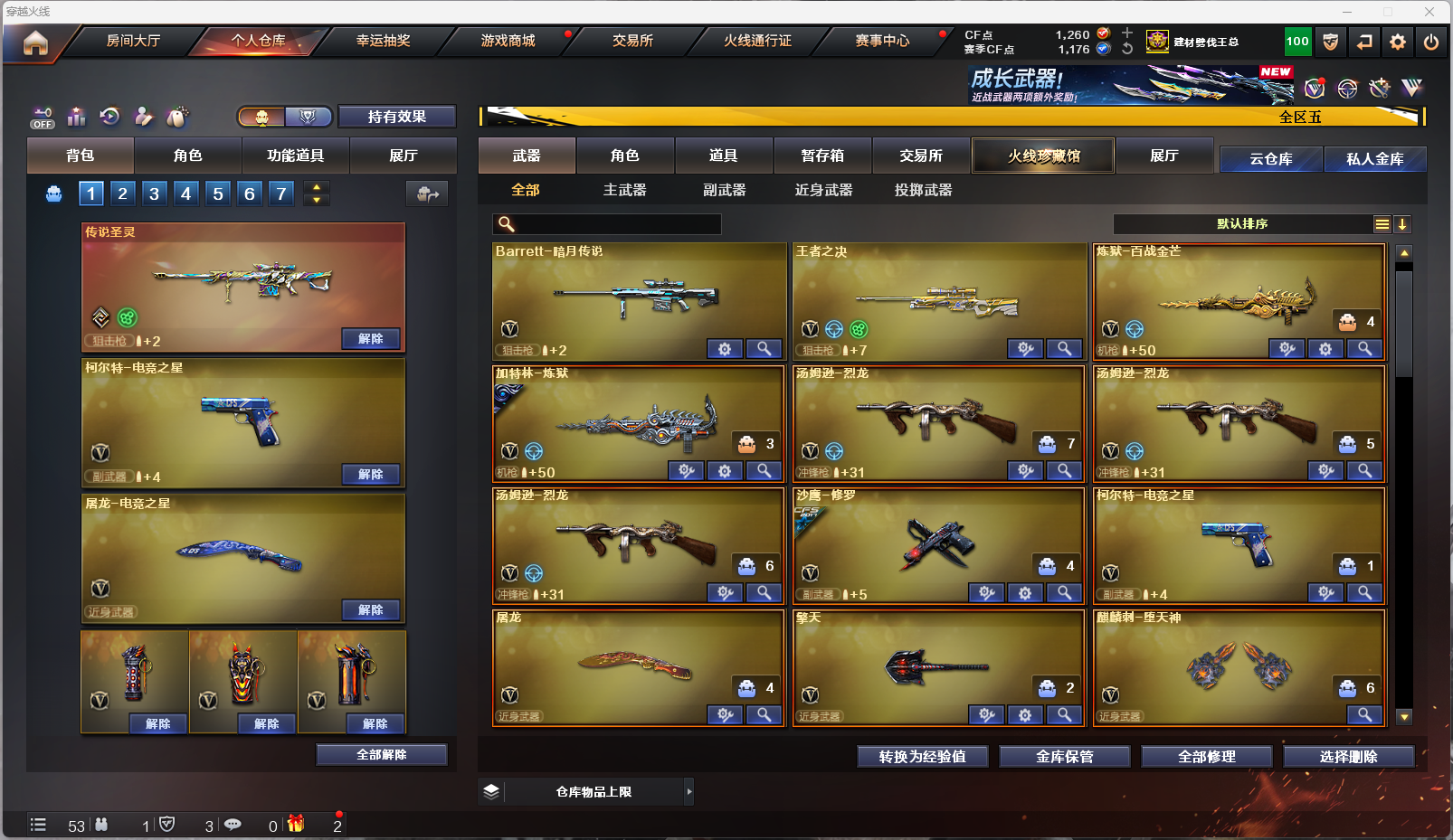 MCF839【等级】102【区服】北方大区【英雄角色】2【英雄武器】62【传说级武器】传说圣灵【王者级武器】高爆手雷-雷霆王者 烟雾弹-雷霆王者 王者之决-觉醒版【英雄级角色】雨棠 幻面灵狐 葵-阿尔法武装【英雄级武器】柯尔特-电竞之星 HK417-朱雀-电竞之星 黑骑士-海王 屠龙-电竞之星 Barrett-暗月传说 QBZ03-独角-II 炼狱-百战金芒 M4A1-再燃火线 麒麟刺-百战金芒 M4A1-凌龙-I 沙鹰-修罗 汤姆逊-烈龙 M4A1-雷神 无影-神兵利器 AWM-天龙 AK47