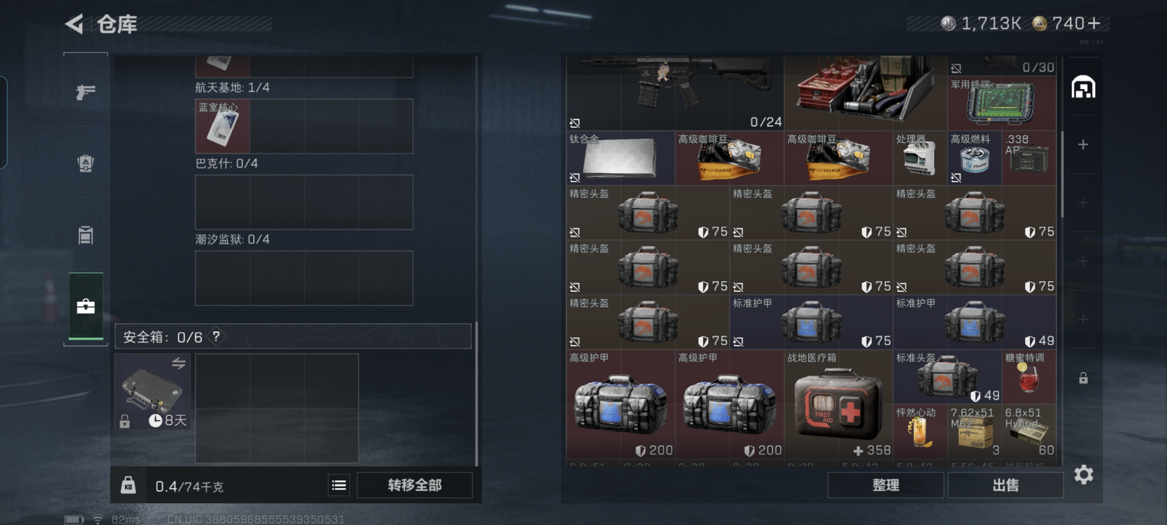 总价值21.6M-哈夫币1713k-烽火地带等级60-烽火地带