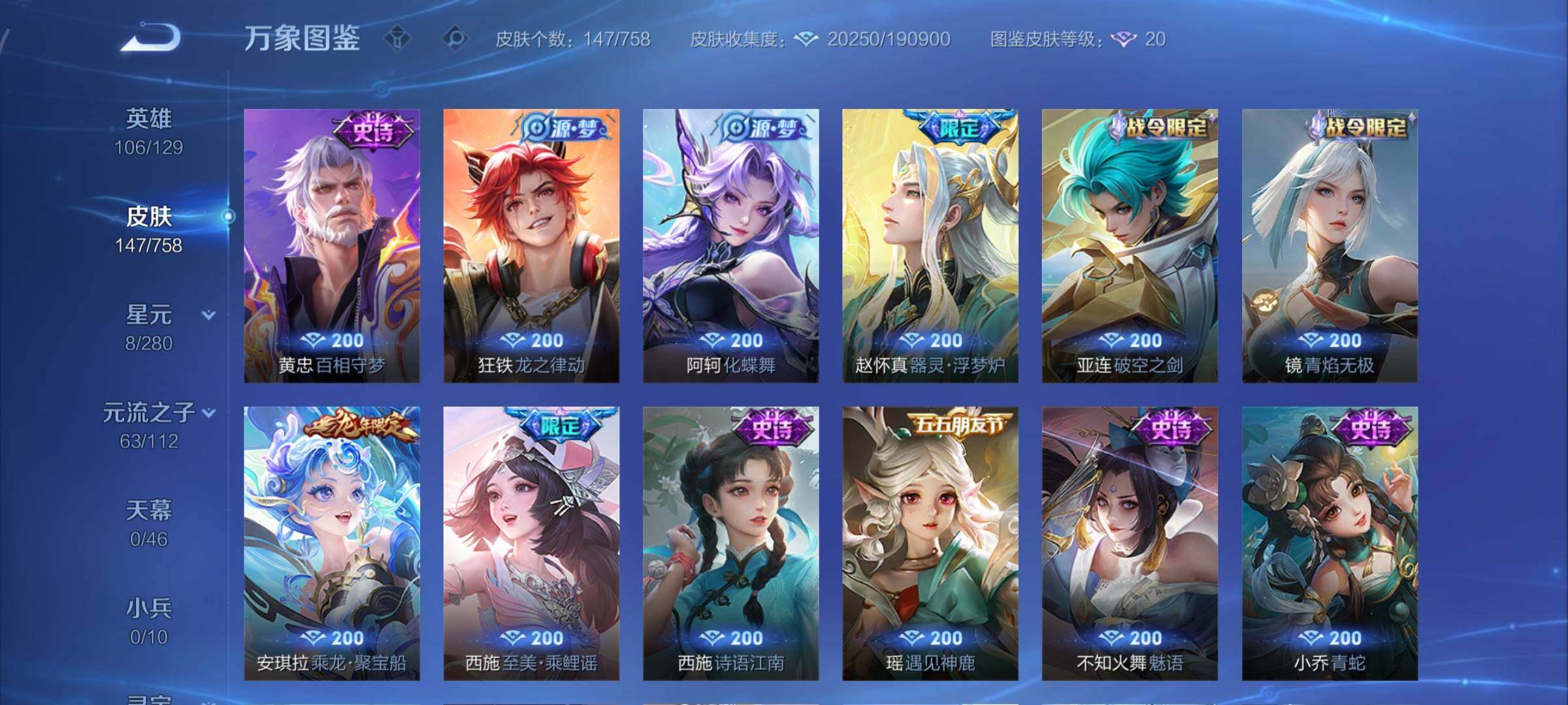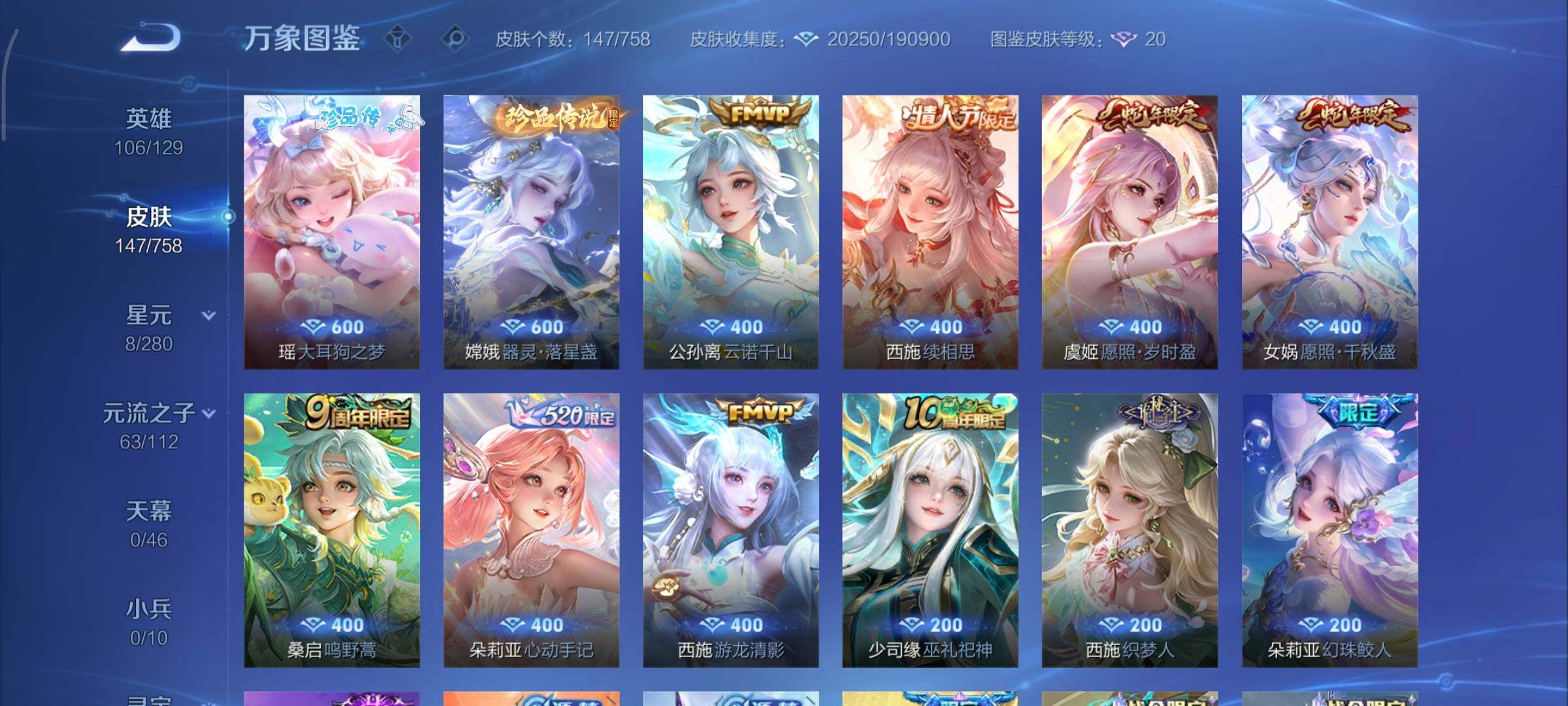 可换绑【精品女号 西施全皮 瑶嫦娥珍品 朵莉亚心动手记 多传说限定妹子号】8按