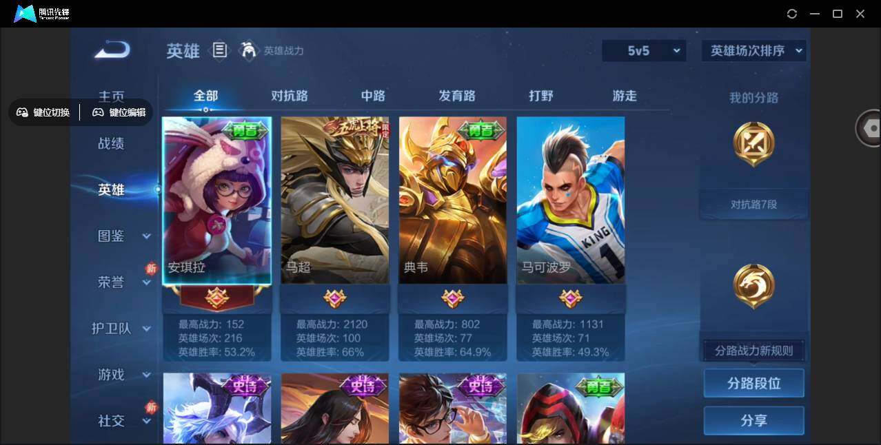 2070319 王者荣耀账号 安卓Q-V5-秩序白银I段位-110英雄-10