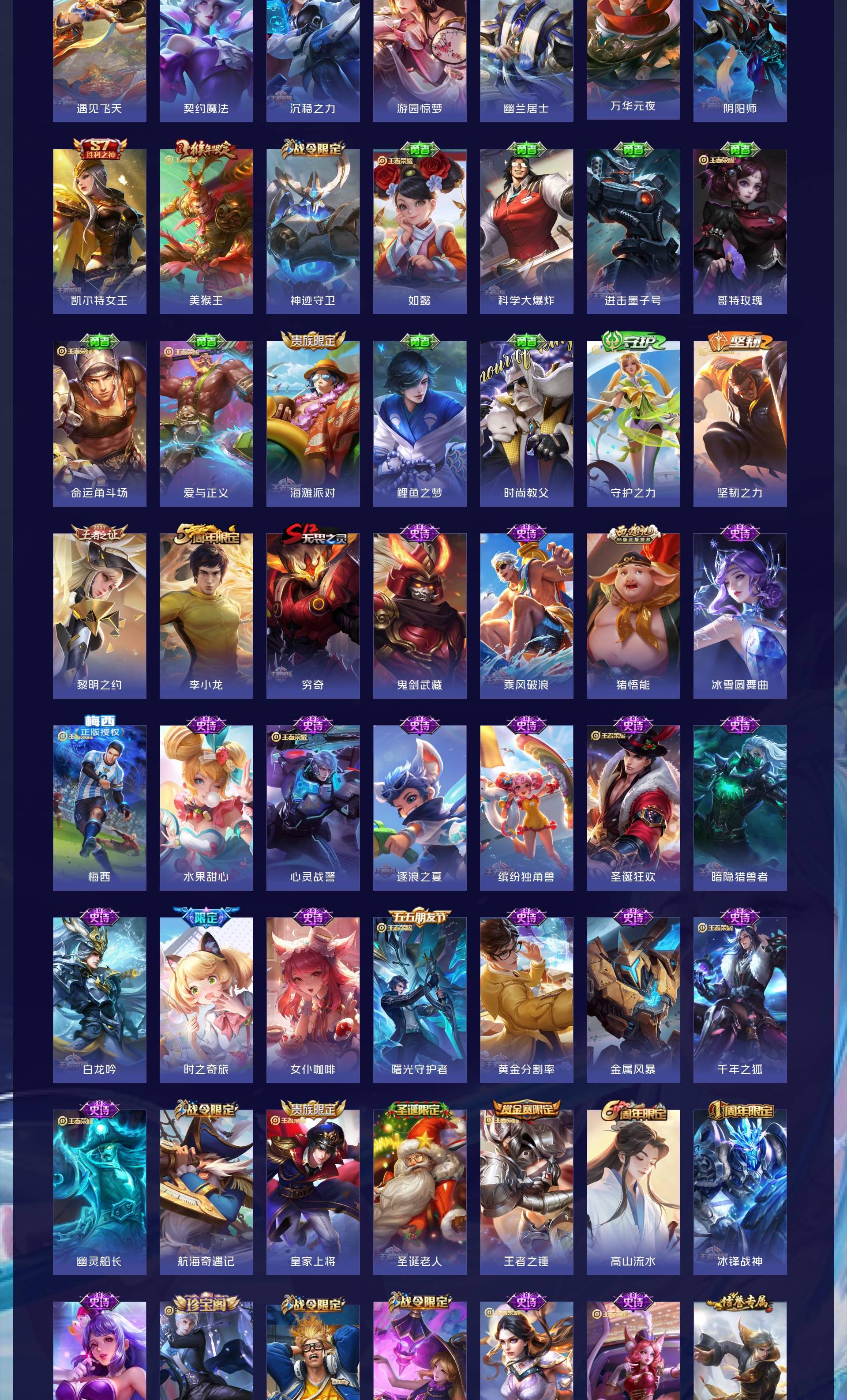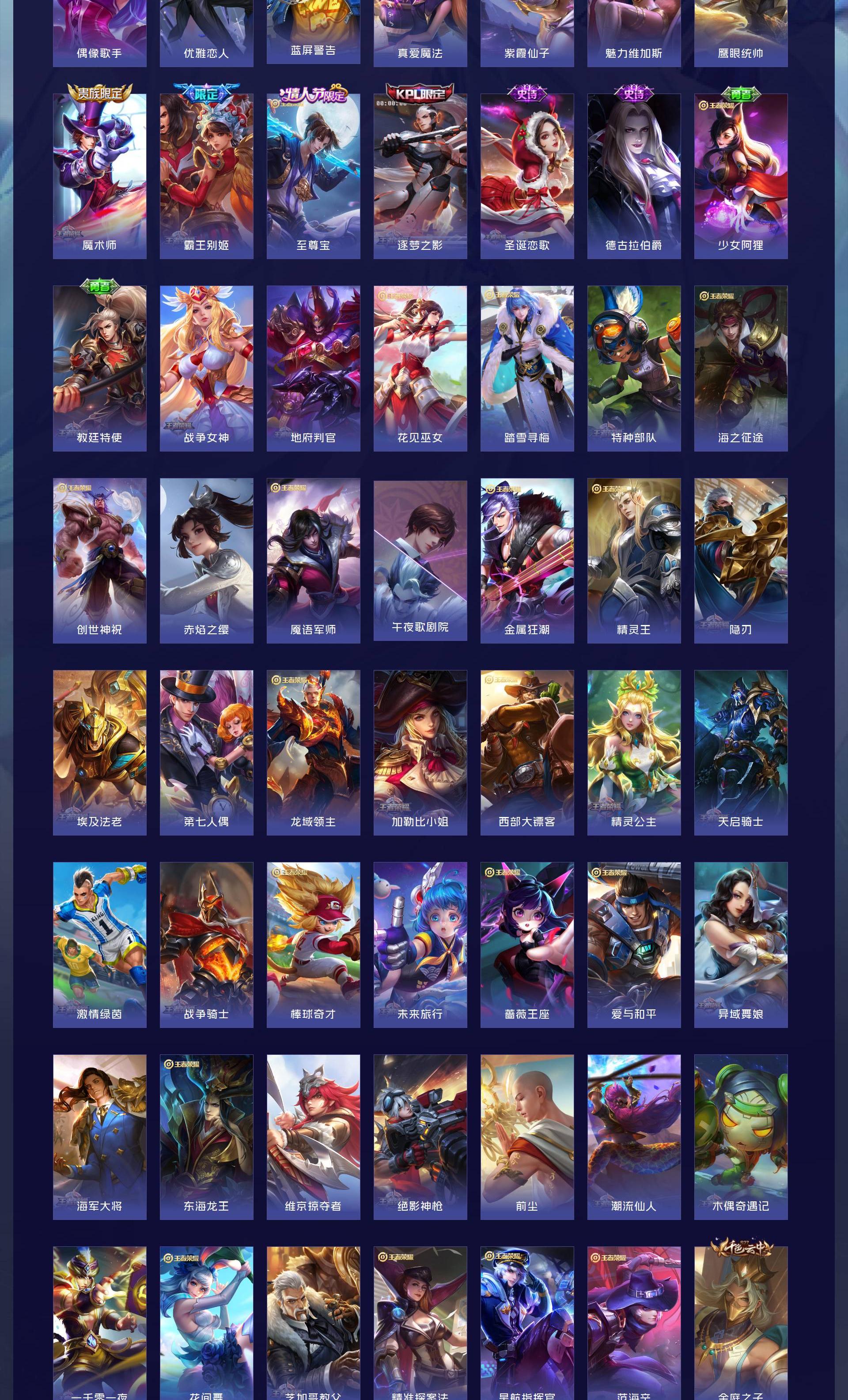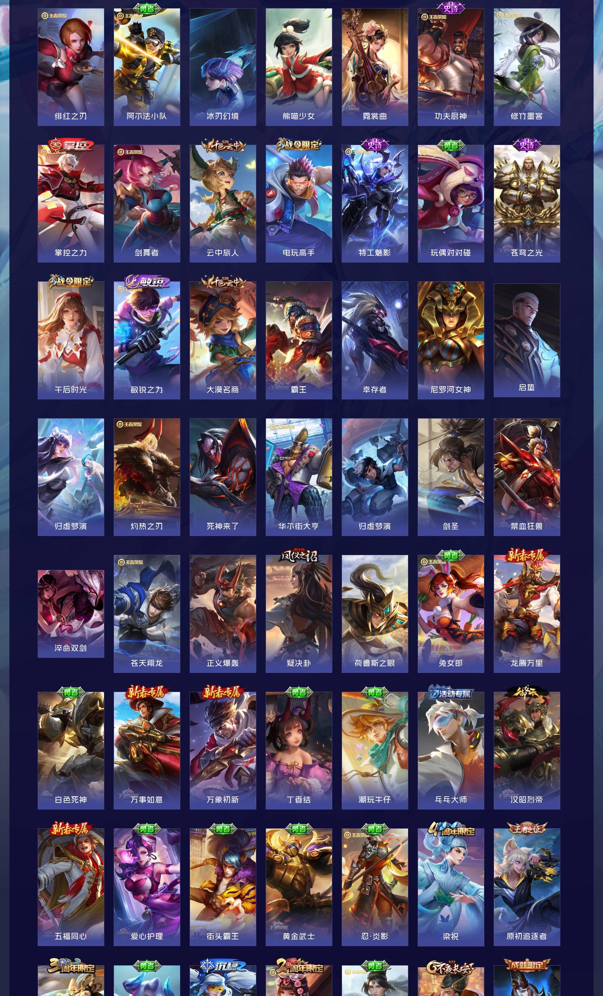 V9 皮肤401 英雄127 非凡王者 荣耀典藏3 无双皮肤2 珍品传说2 传说17 其他皮肤382