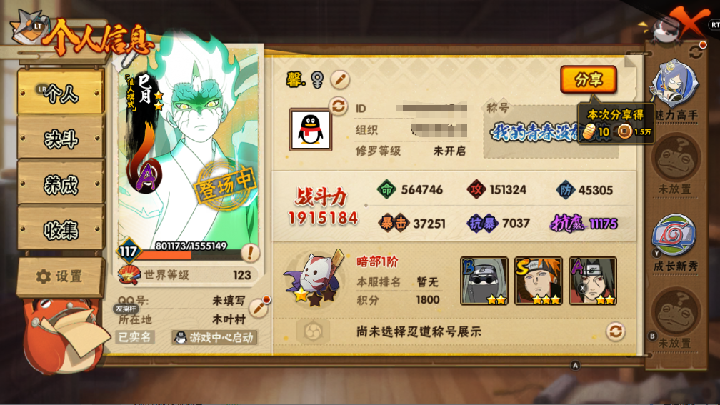 191w战力五影斑+紫狗6S+面麻13A战力191忍者总数7