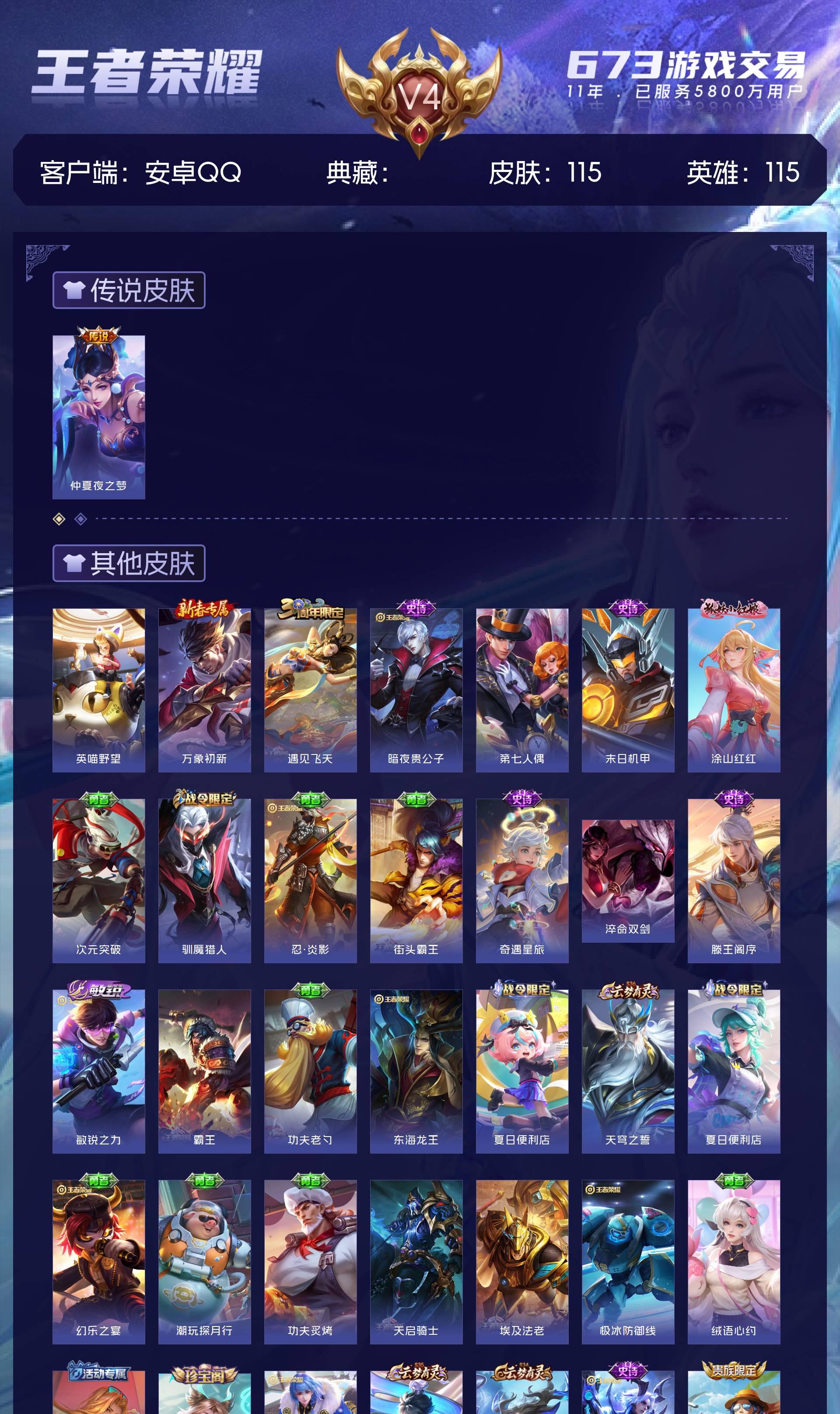 V4 皮肤115 英雄115 荣耀黄金 星传说1 传说1 其他皮肤120